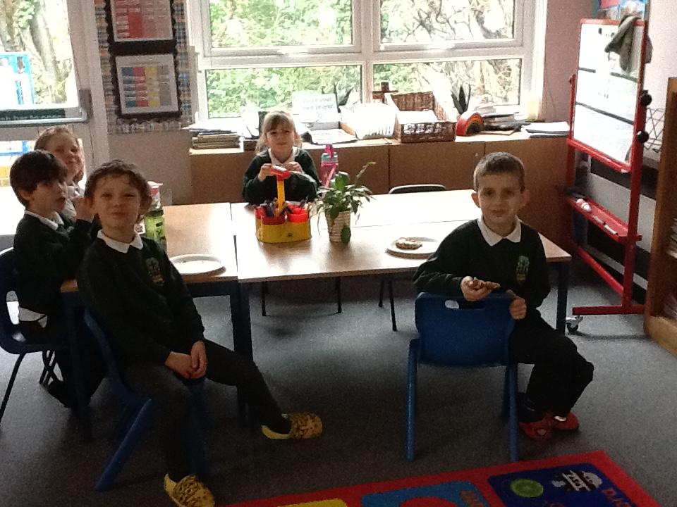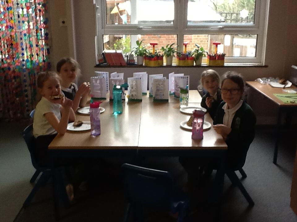 We enjoyed some yummy toasted hot cross buns for our snack as a treat.