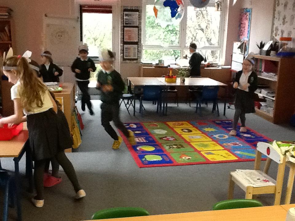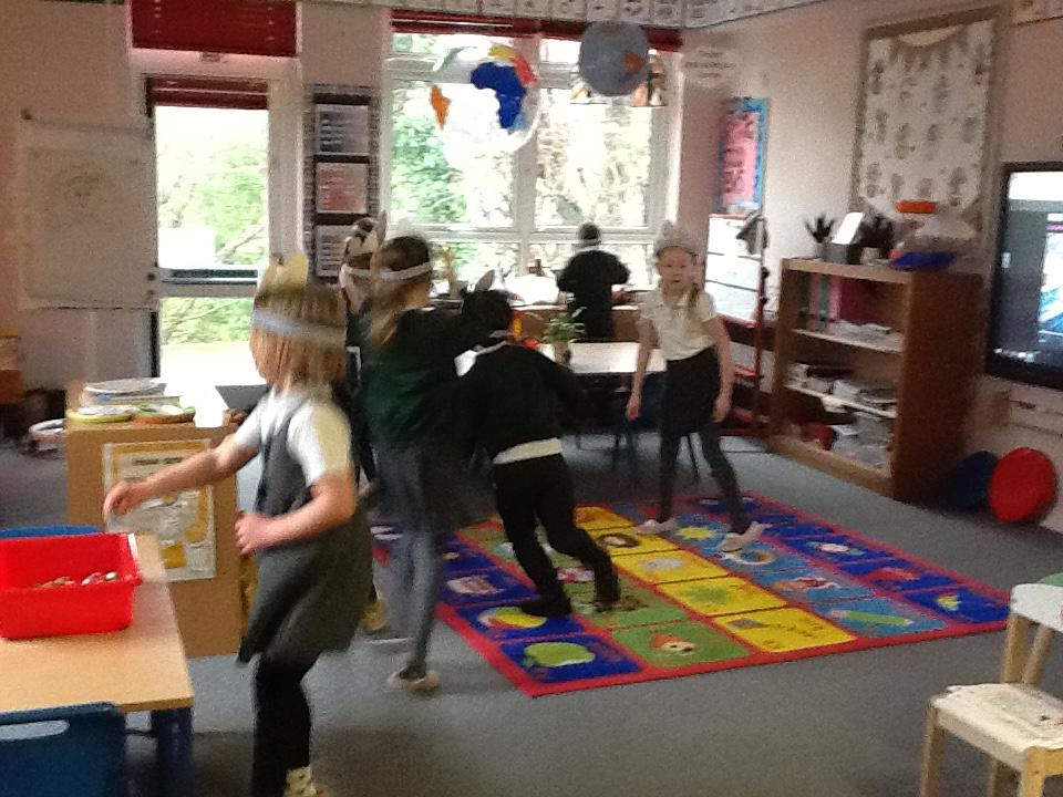 Excitement hit after snack time! We left the classroom to play a game in the hall and when we came back chocolate eggs had been hidden all around the room by the Easter Bunny, we spent ages searching everywhere for them. He had also eaten all the carrots off the snack tray!!