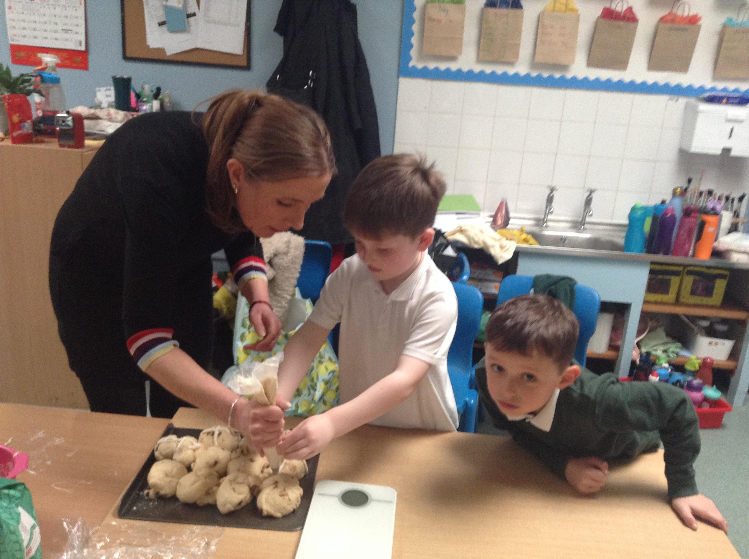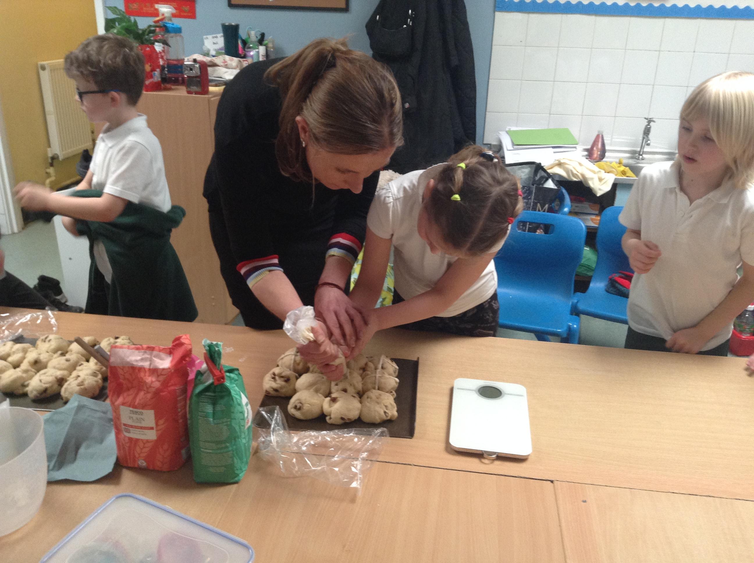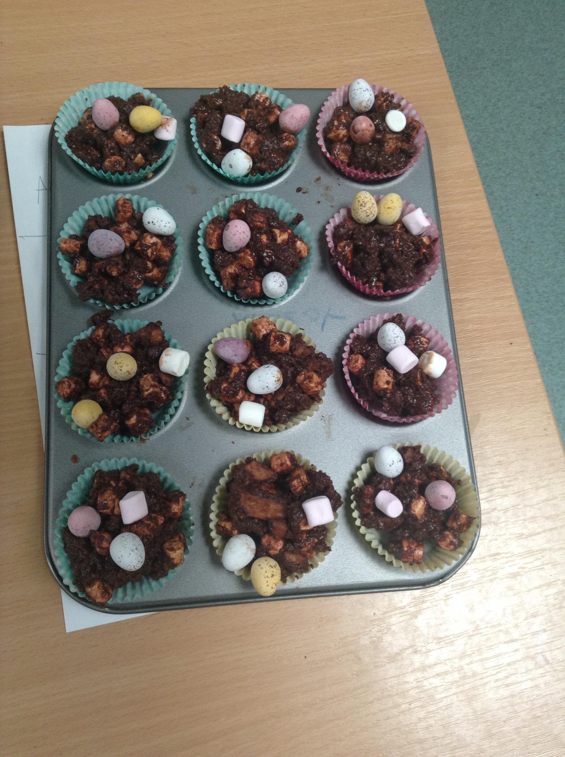 We have had such a fun day. The children have made hot cross buns, Easter rocky road and played party games - what an exciting day!