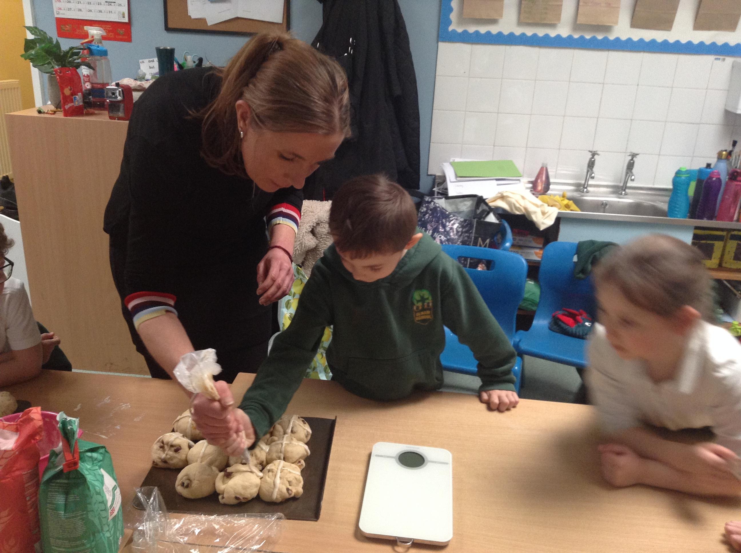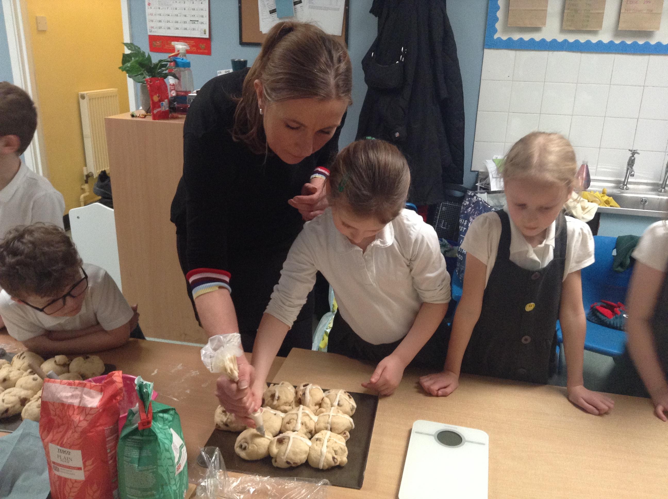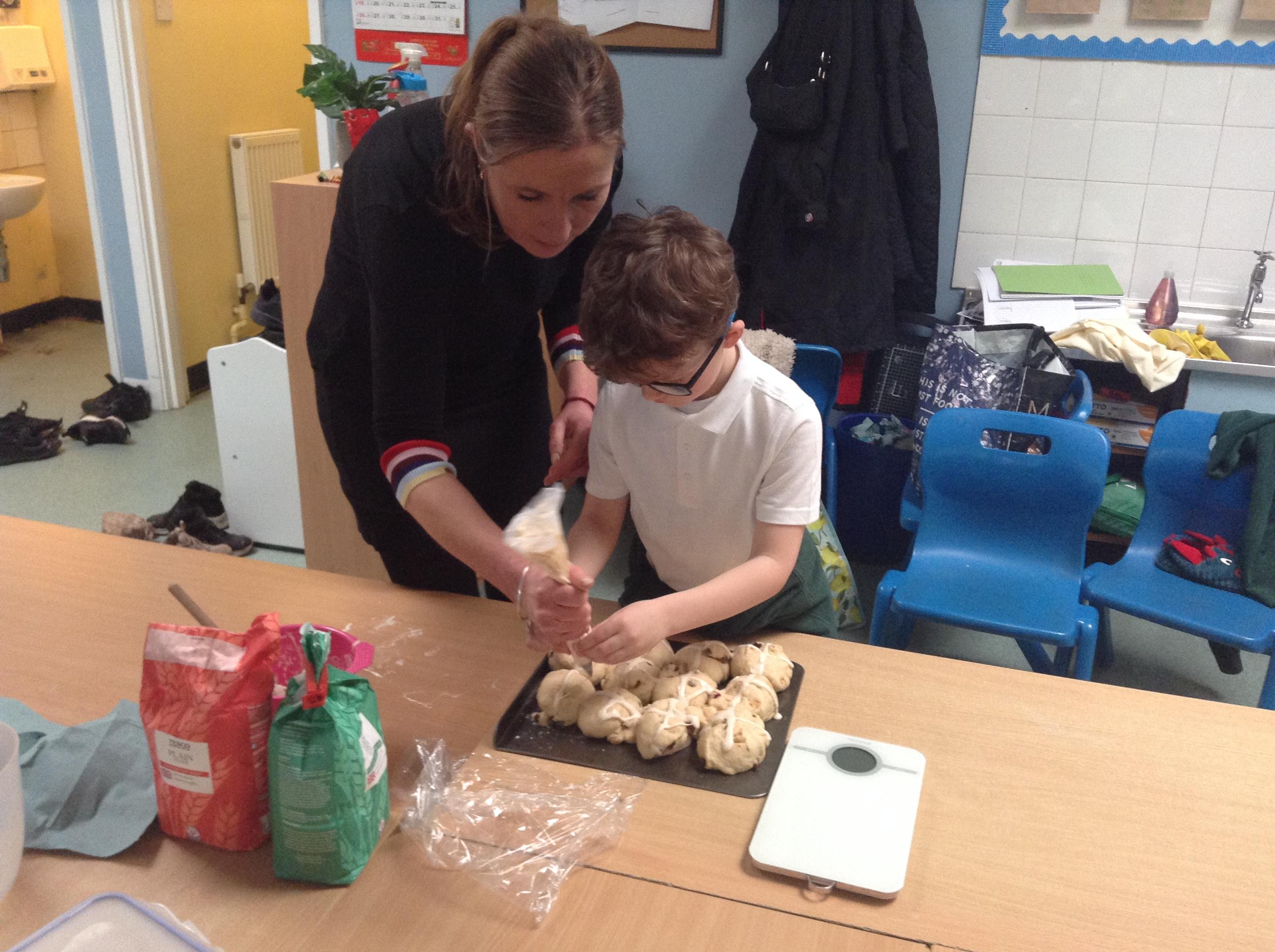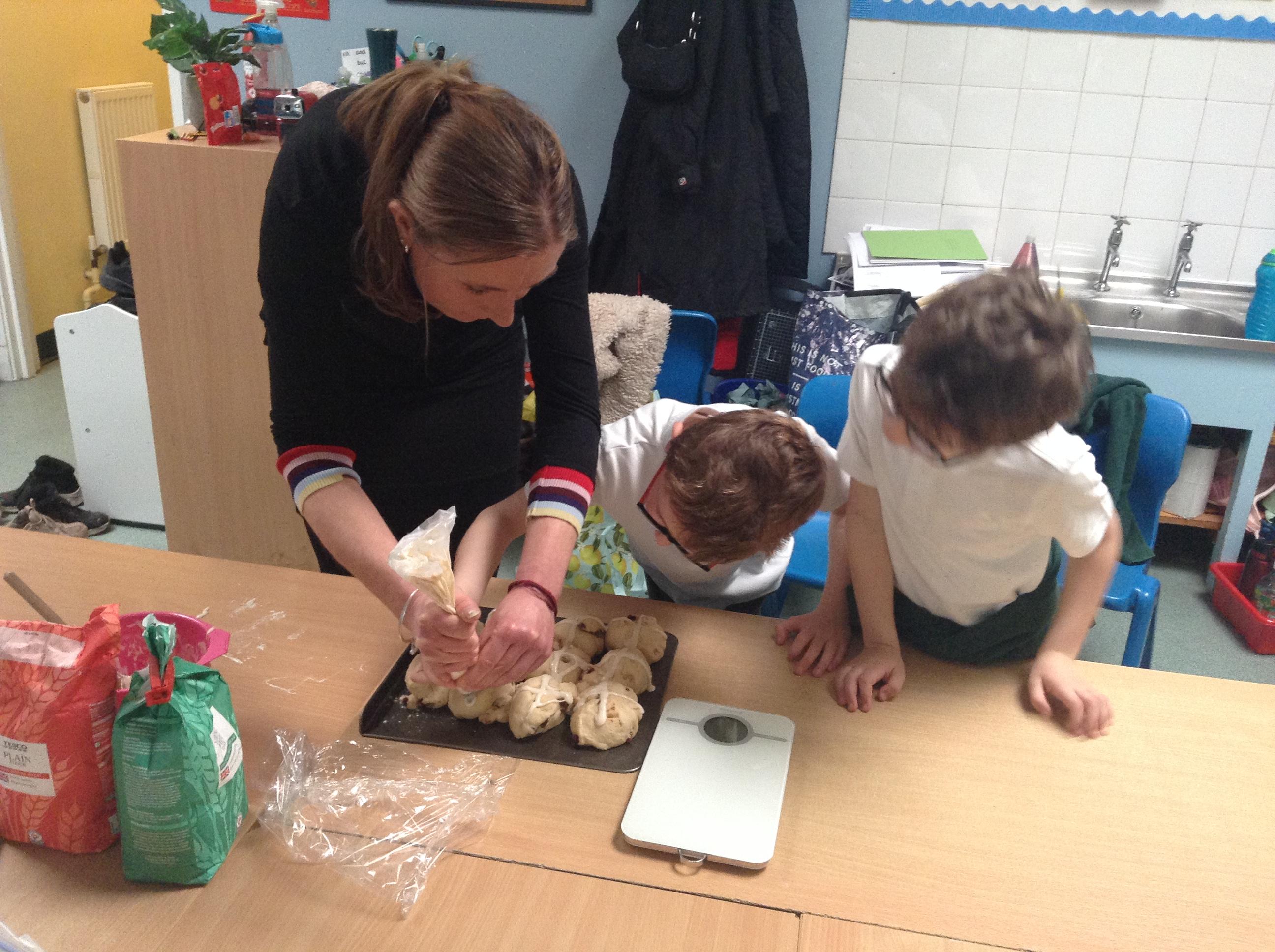 We have had such a fun day. The children have made hot cross buns, Easter rocky road and played party games - what an exciting day!