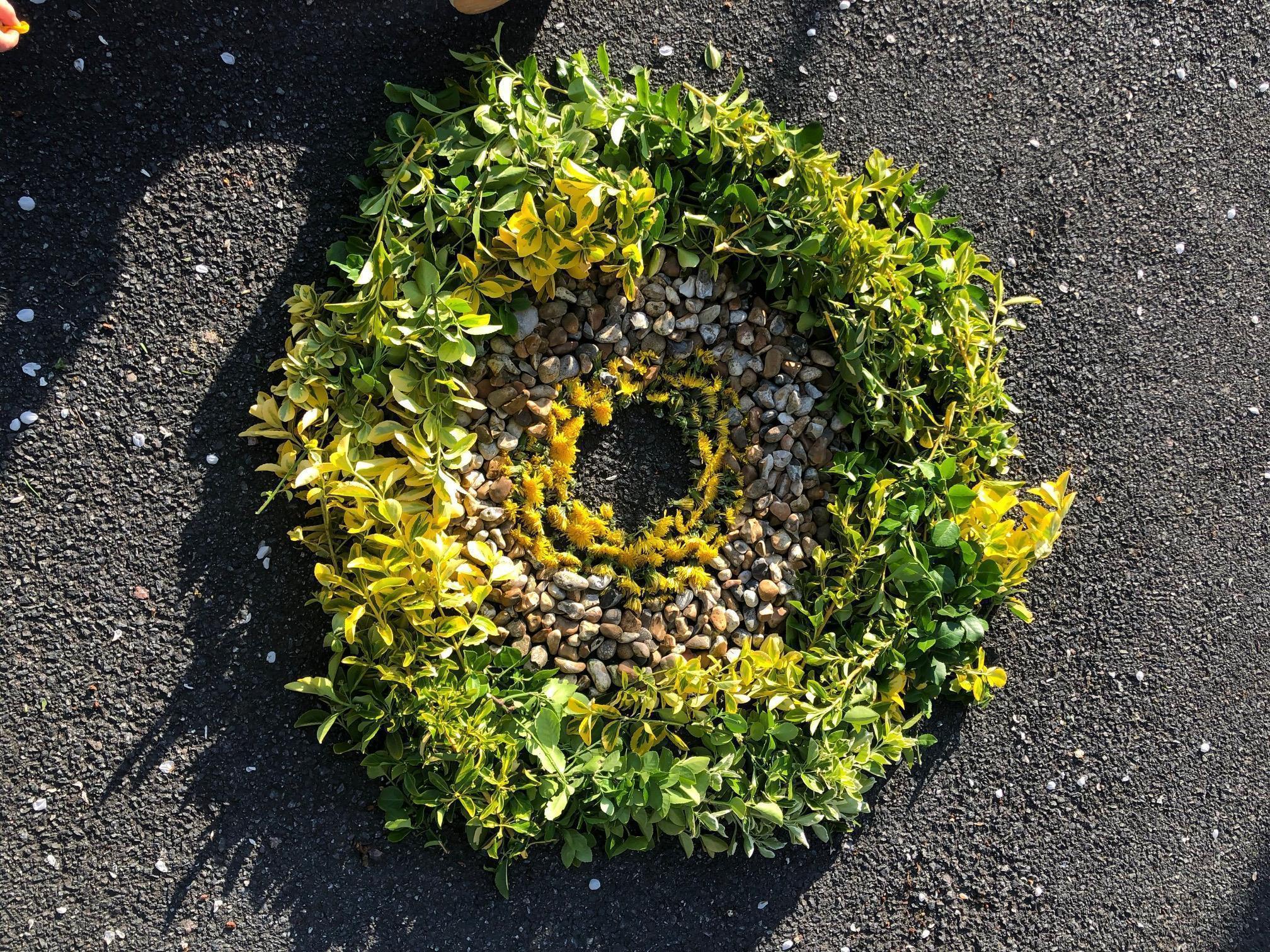 Last week I asked you to go outside and create a piece of art using ojects from outside. I gave you an example which contained stones, twigs, leaves, feathers etc. How did you get on? Below you will see Flissie's art. I think it is really beautiful. Can you work out what natural materials she has used?