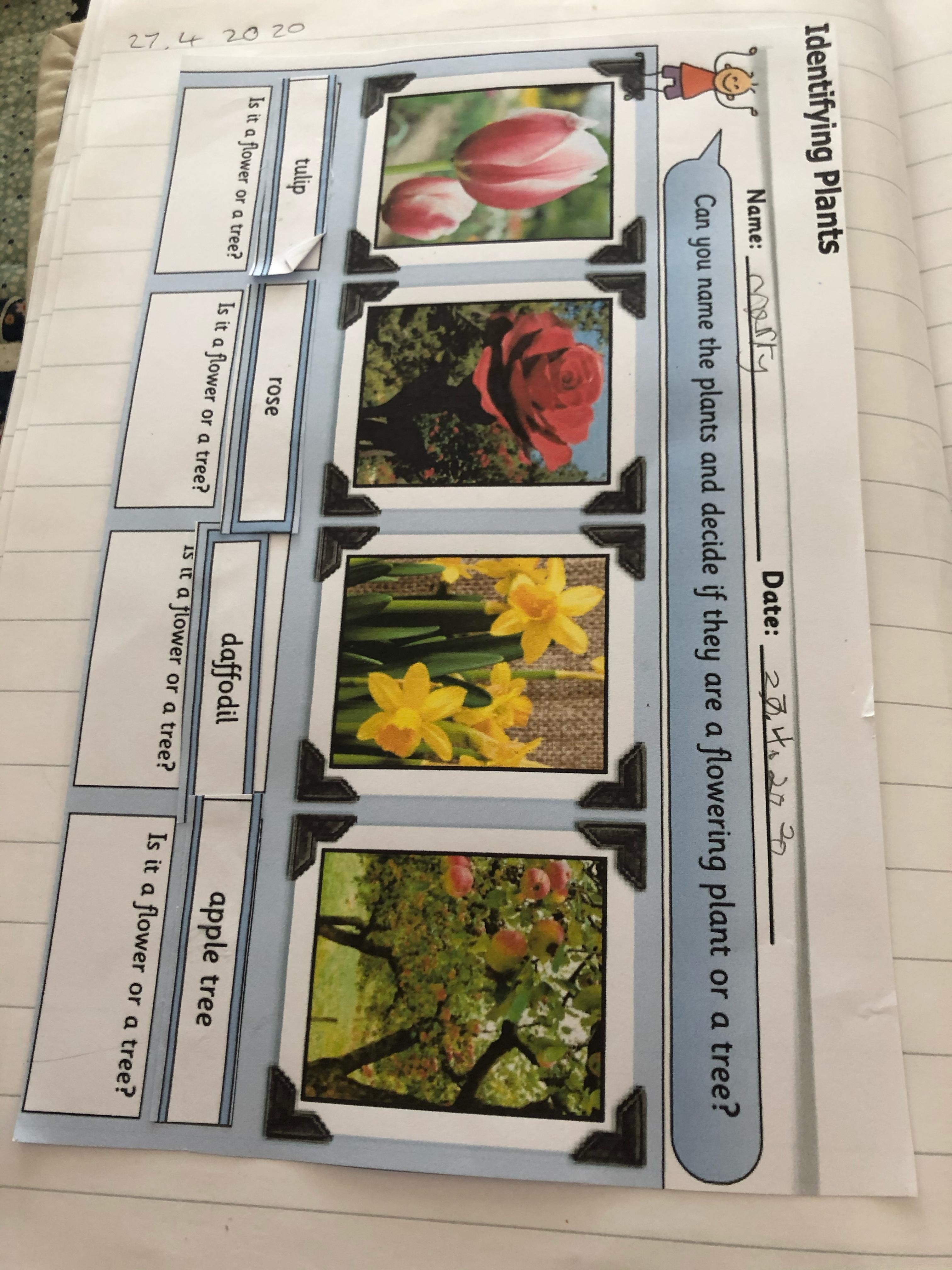 Activity: Complete the worksheet naming the plants and deciding if they are a flowering plant or a tree.