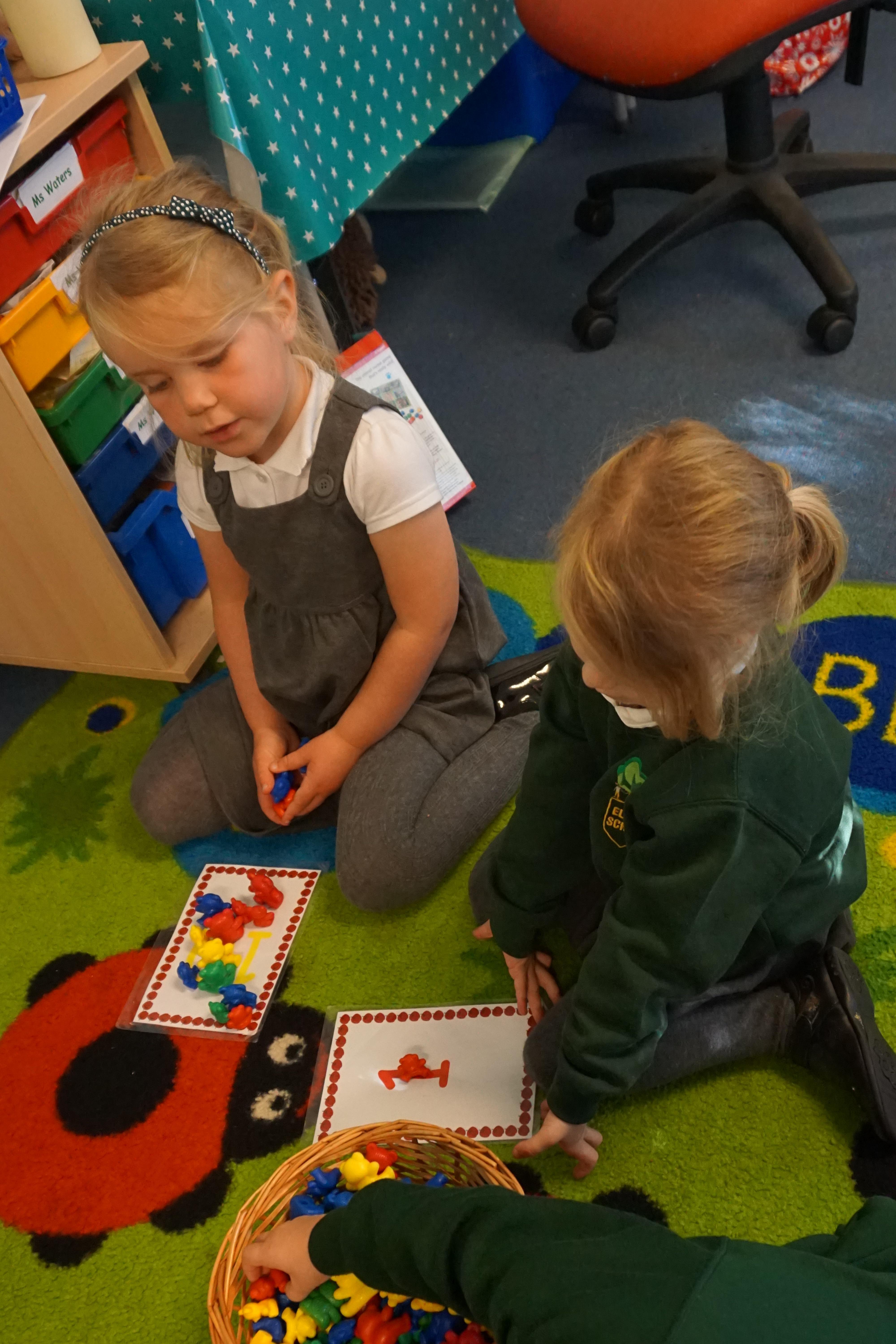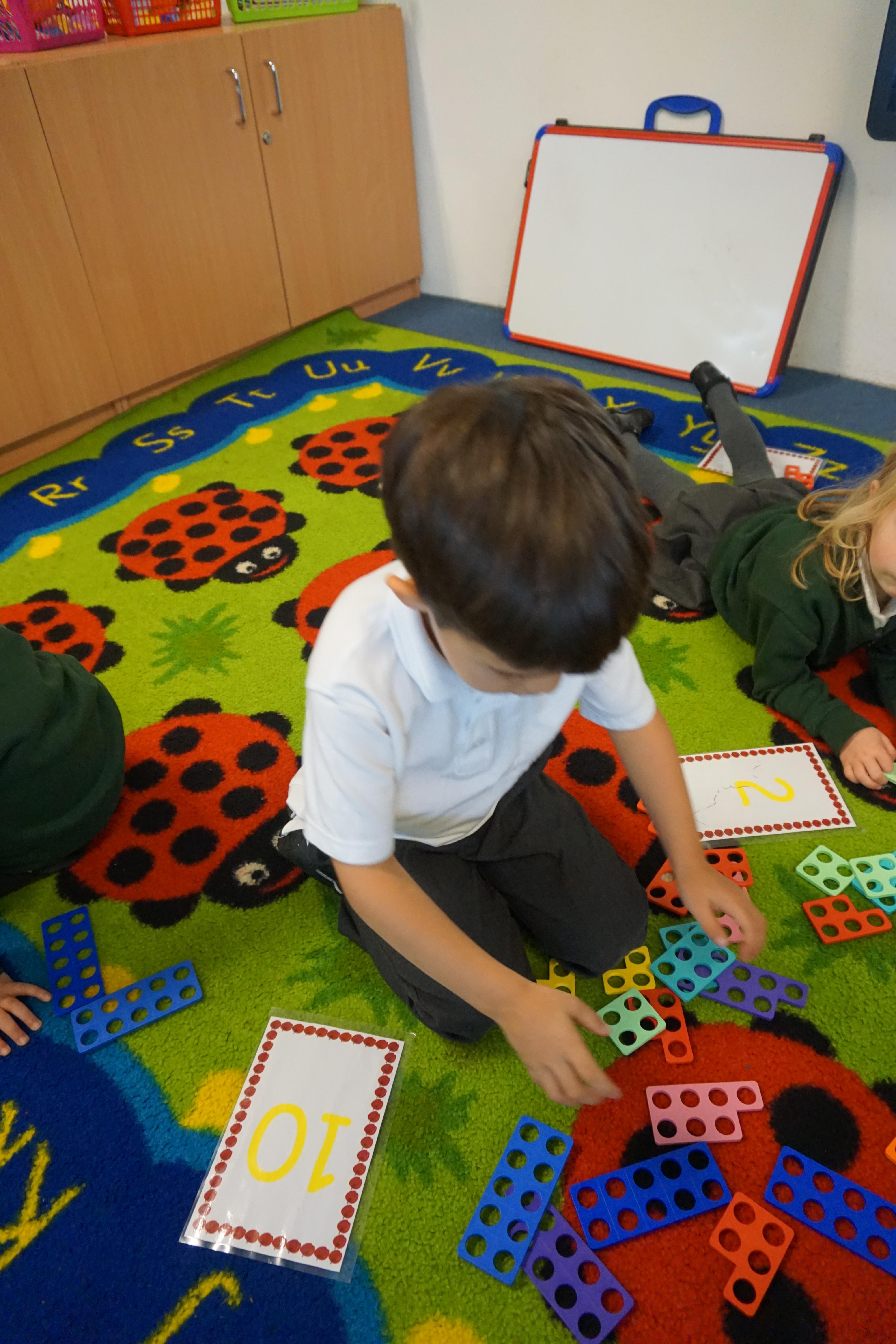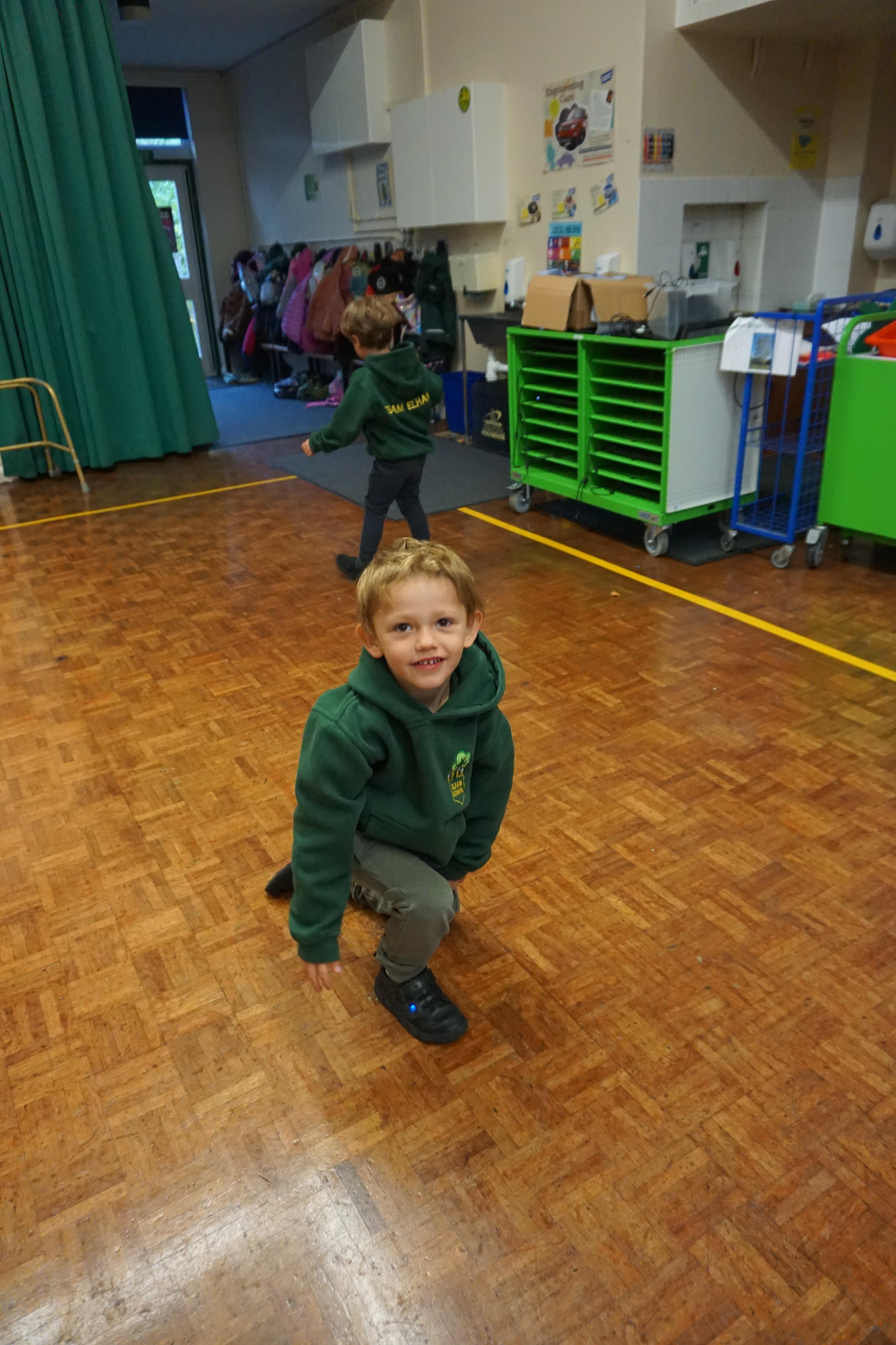 The children have been matching objects or numicon to number cards in our maths. They have had great fun making vegetable soup in the sand and made a fab stage outside. We have learnt three sounds and played an interactive game. We also did our first PE session in the hall where the children learnt about sitting in a space and what happens to their bodies during sport. We listened to some music and moved like falling Autumn leaves.