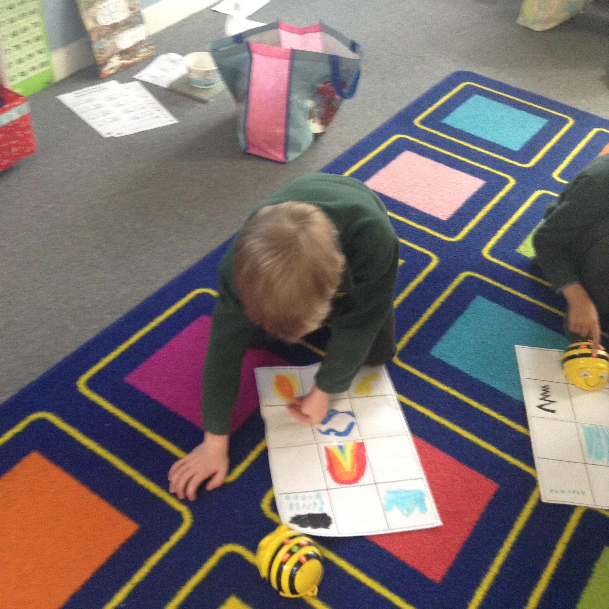 In today's computing the children had to create their own mat to be used with a BeeBot. The children had to create a mat that included squares to visit and squares to avoid.