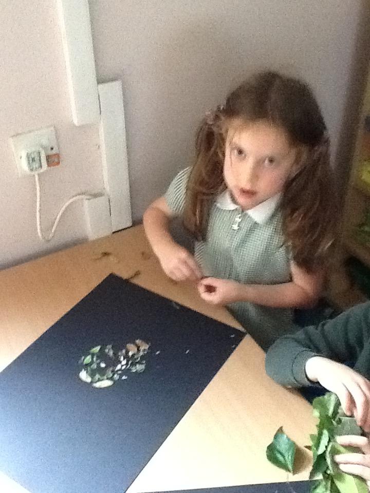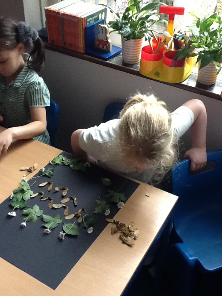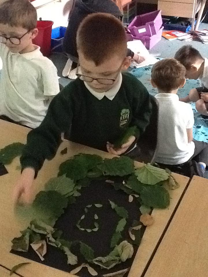 We looked at some of Andy's artwork and discussed how he often uses curves in his work, like circles and spirals. We then went outside to collect some natural materials and had a go at making our own pieces of artwork using spirals and circles.