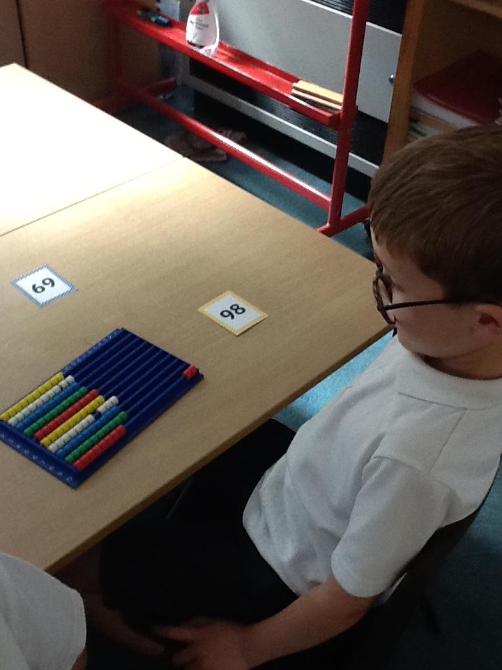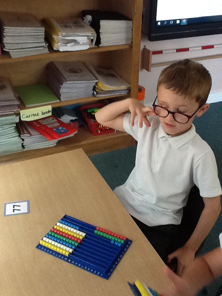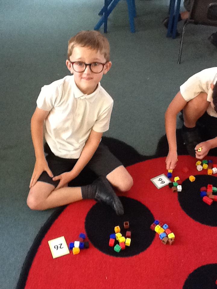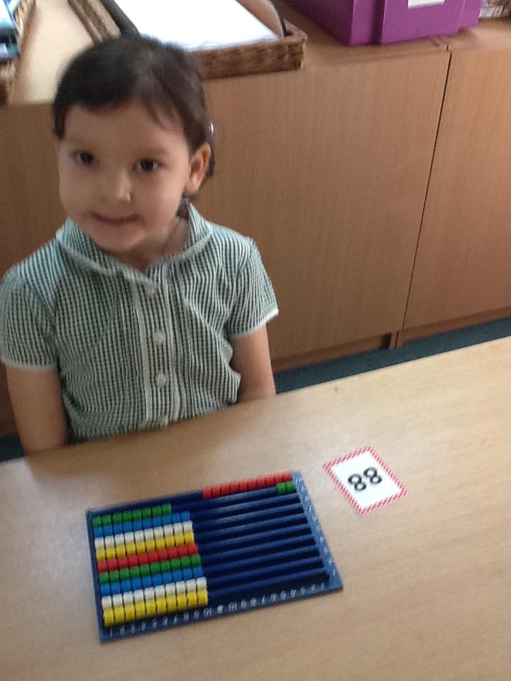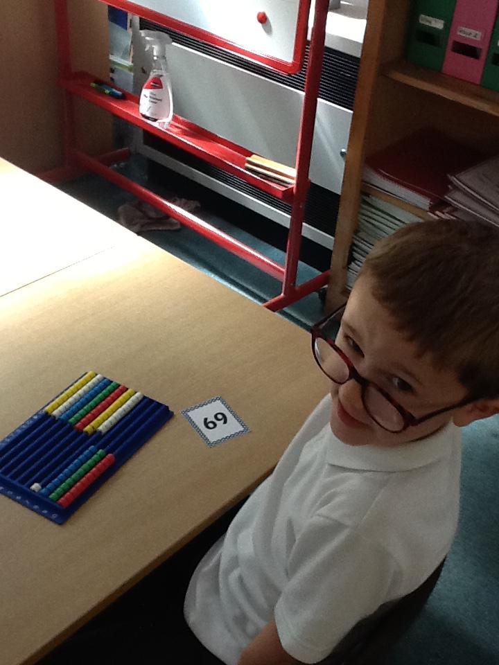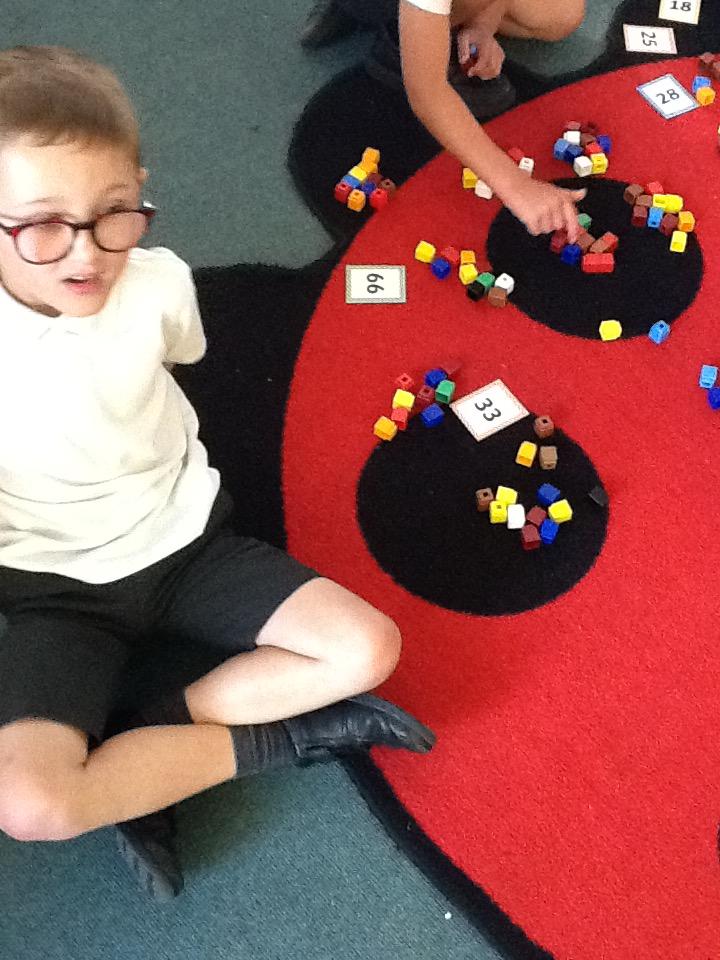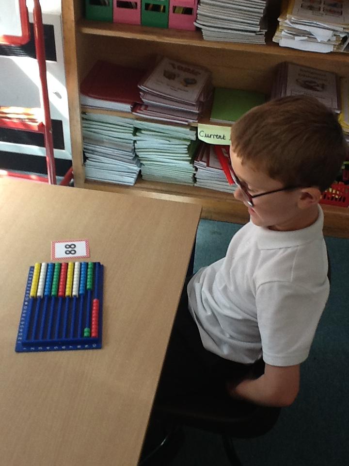 In maths this week the children are working on number again, this time up to one hundred. We have sorted numbers into tens and ones to make them easier to count, using a variety of manipulatives.