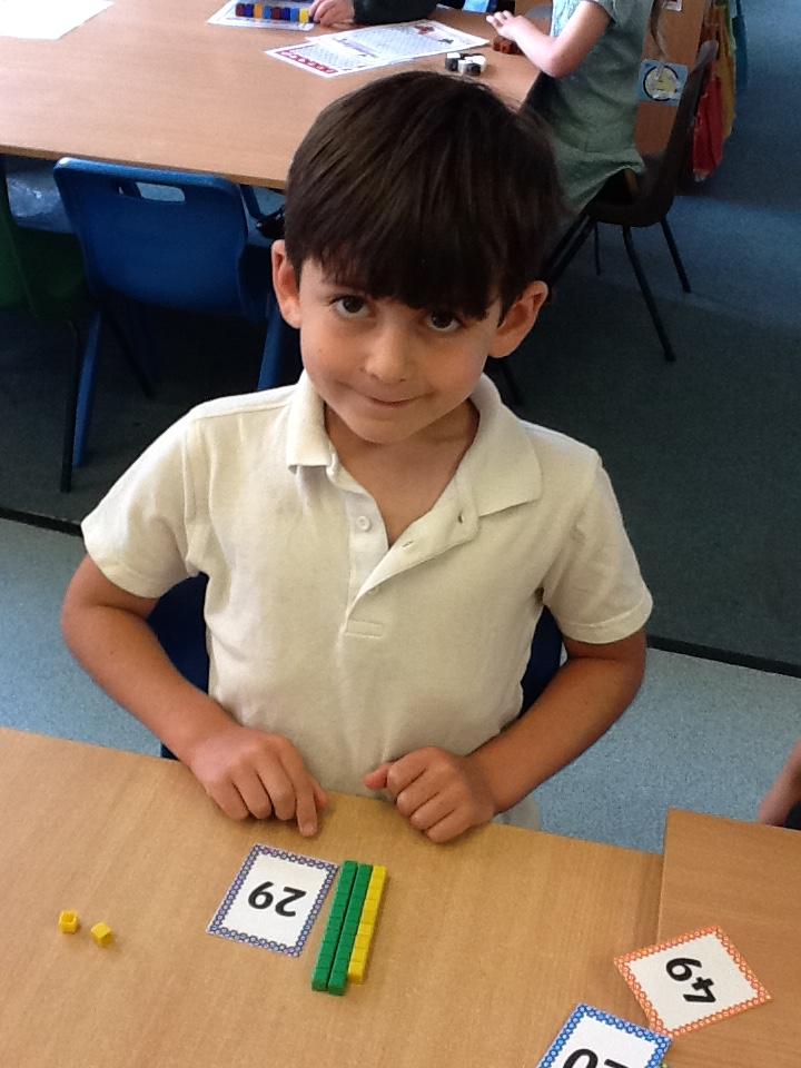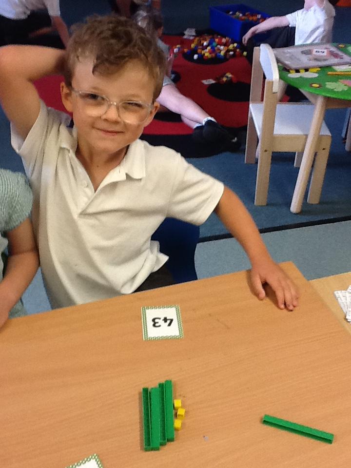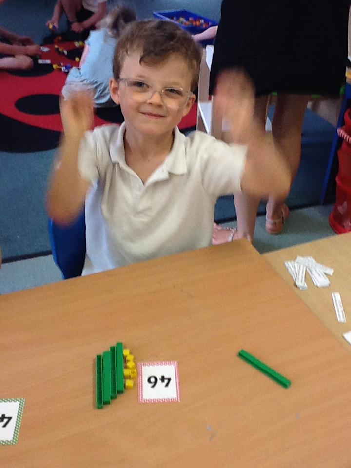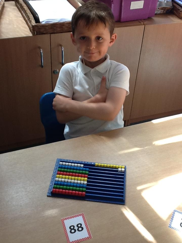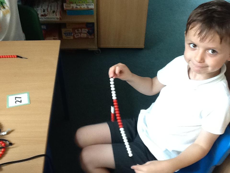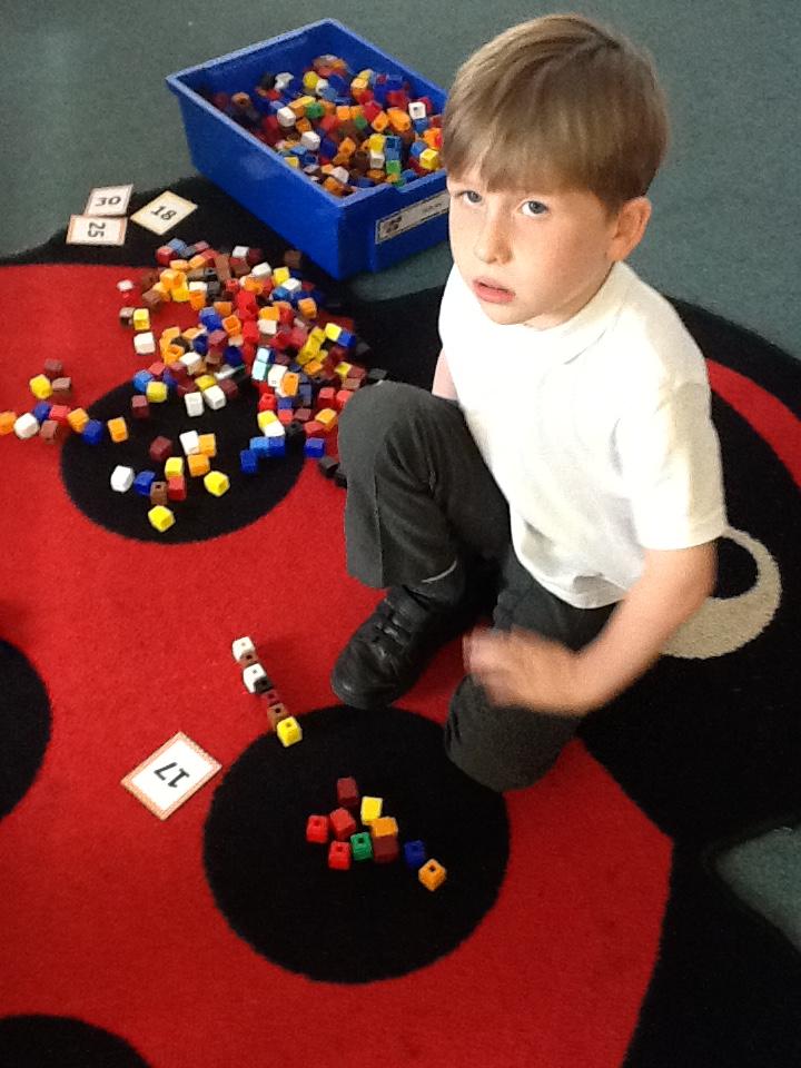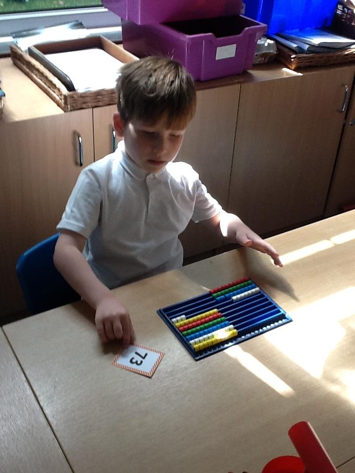 In maths this week the children are working on number again, this time up to one hundred. We have sorted numbers into tens and ones to make them easier to count, using a variety of manipulatives.