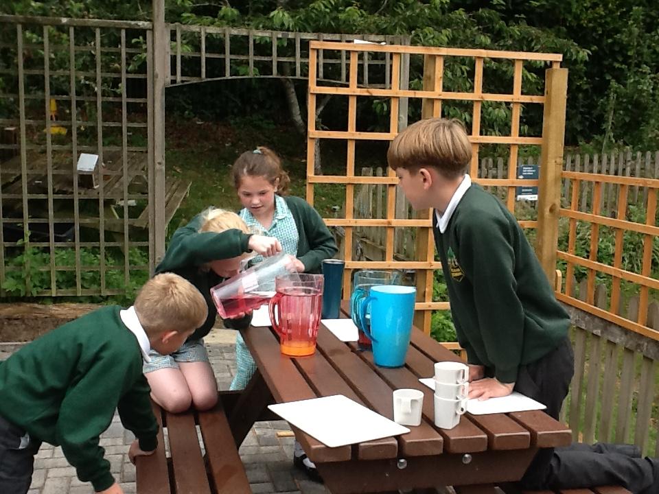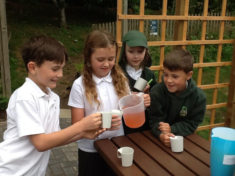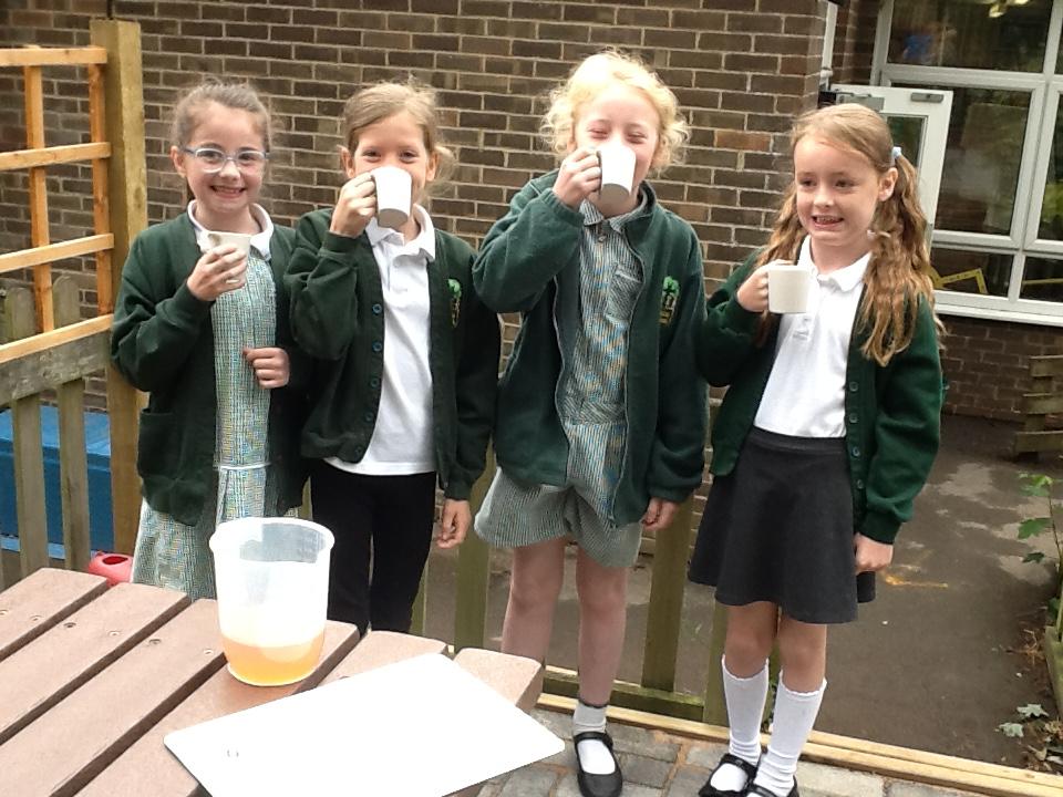 In Maths we have started to learn about capacity. The children used their addition skills to design a recipe for fruit punch. There were 4 flavours of squash and the total amount needed to add to 800ml. The children then measured the squash to make their punch and finally tasted their creations!