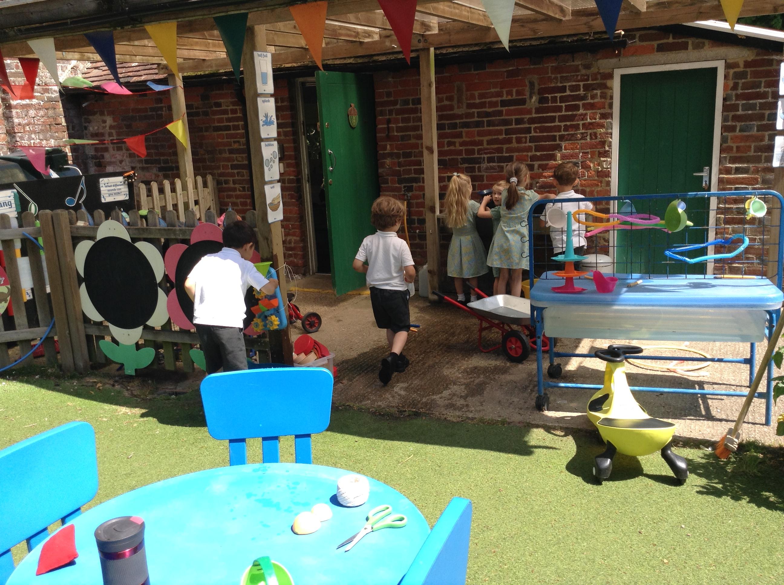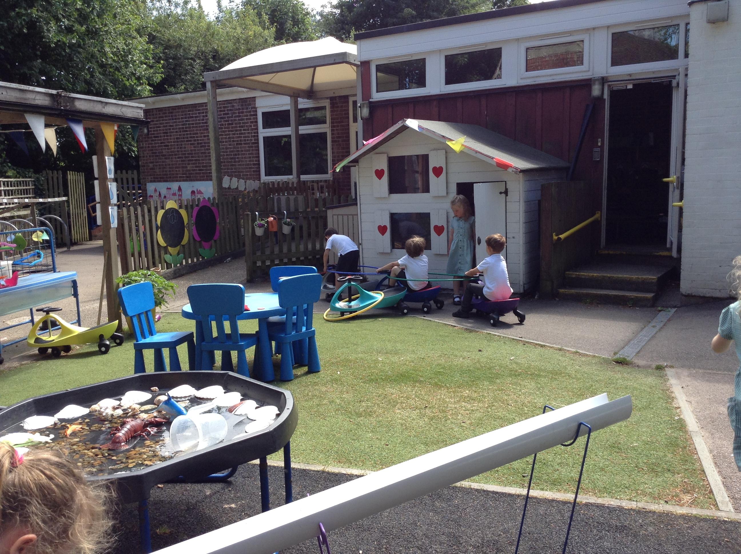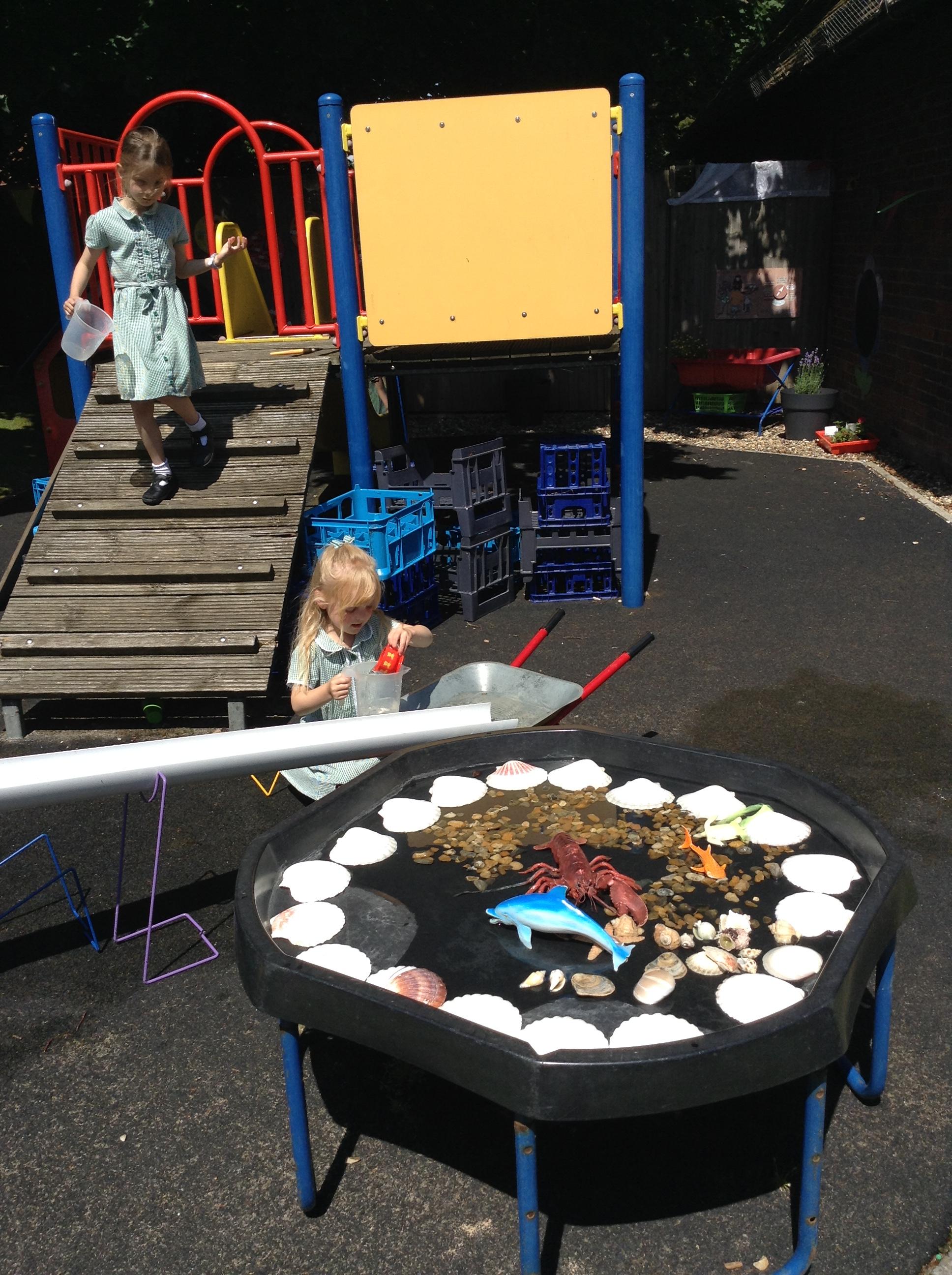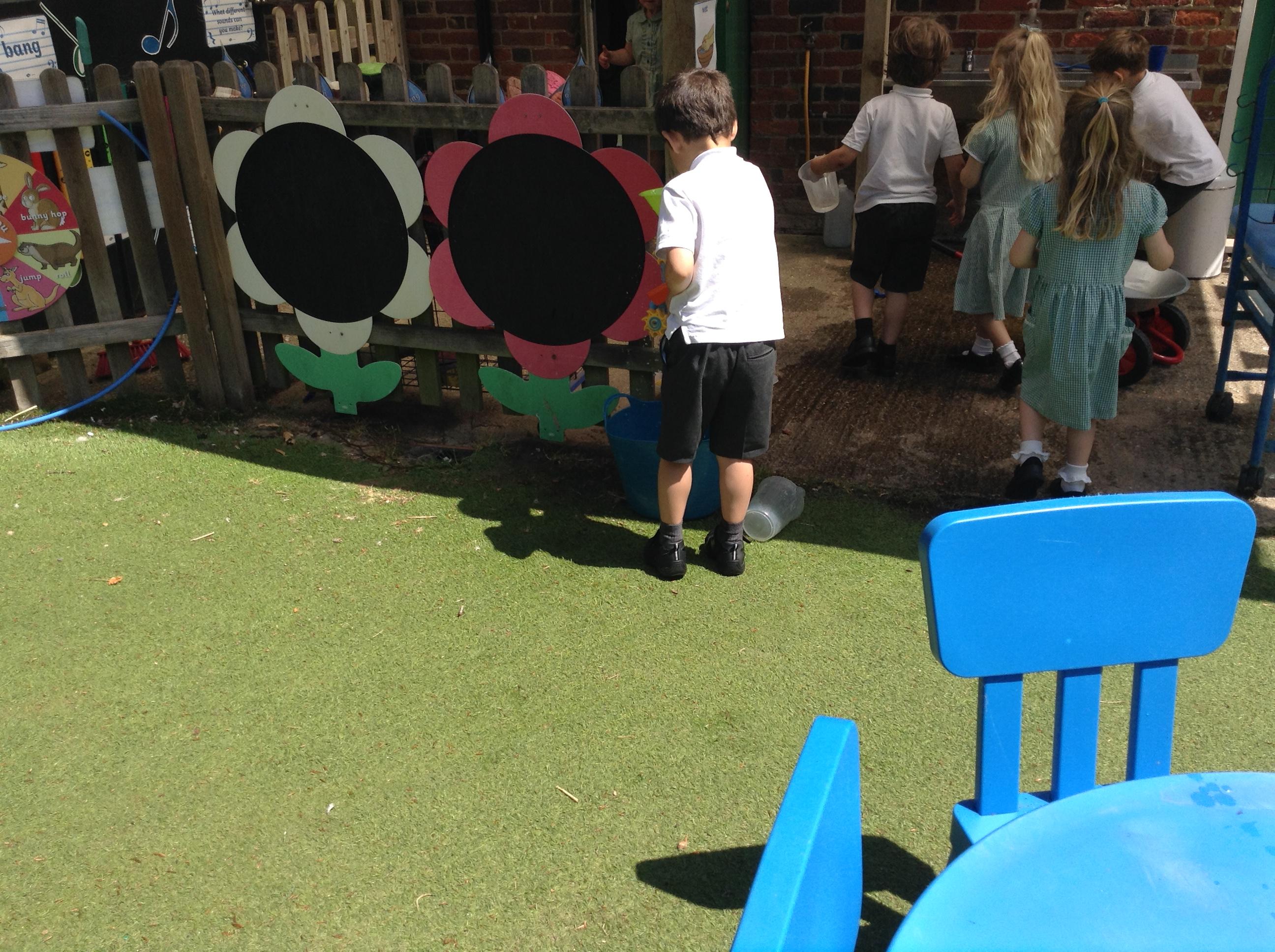 We have had lots of fun this week with our learning about water. The children experimented with the pipes and tubes outside and enjoyed watching how the water made the wheels spin and move.