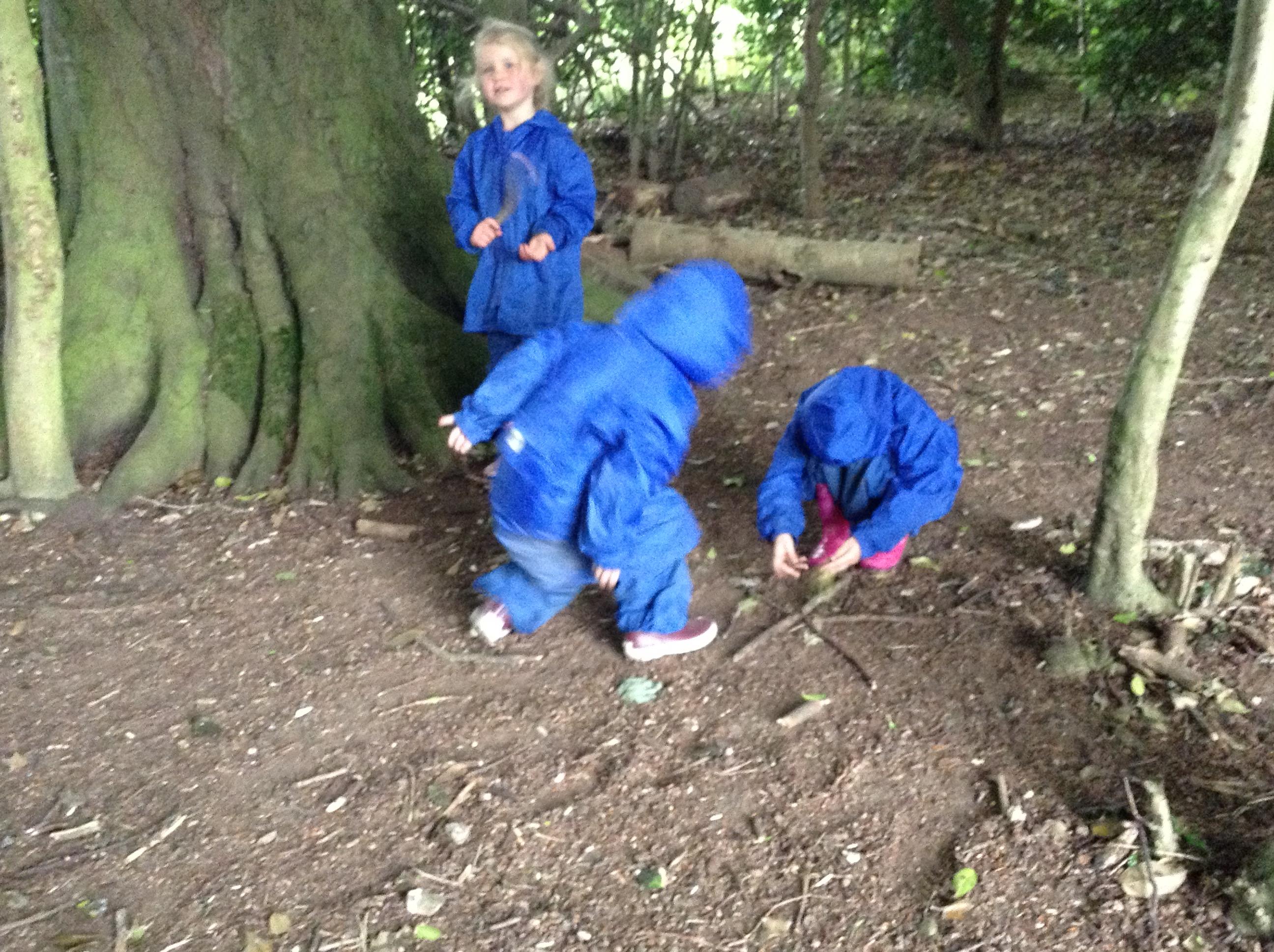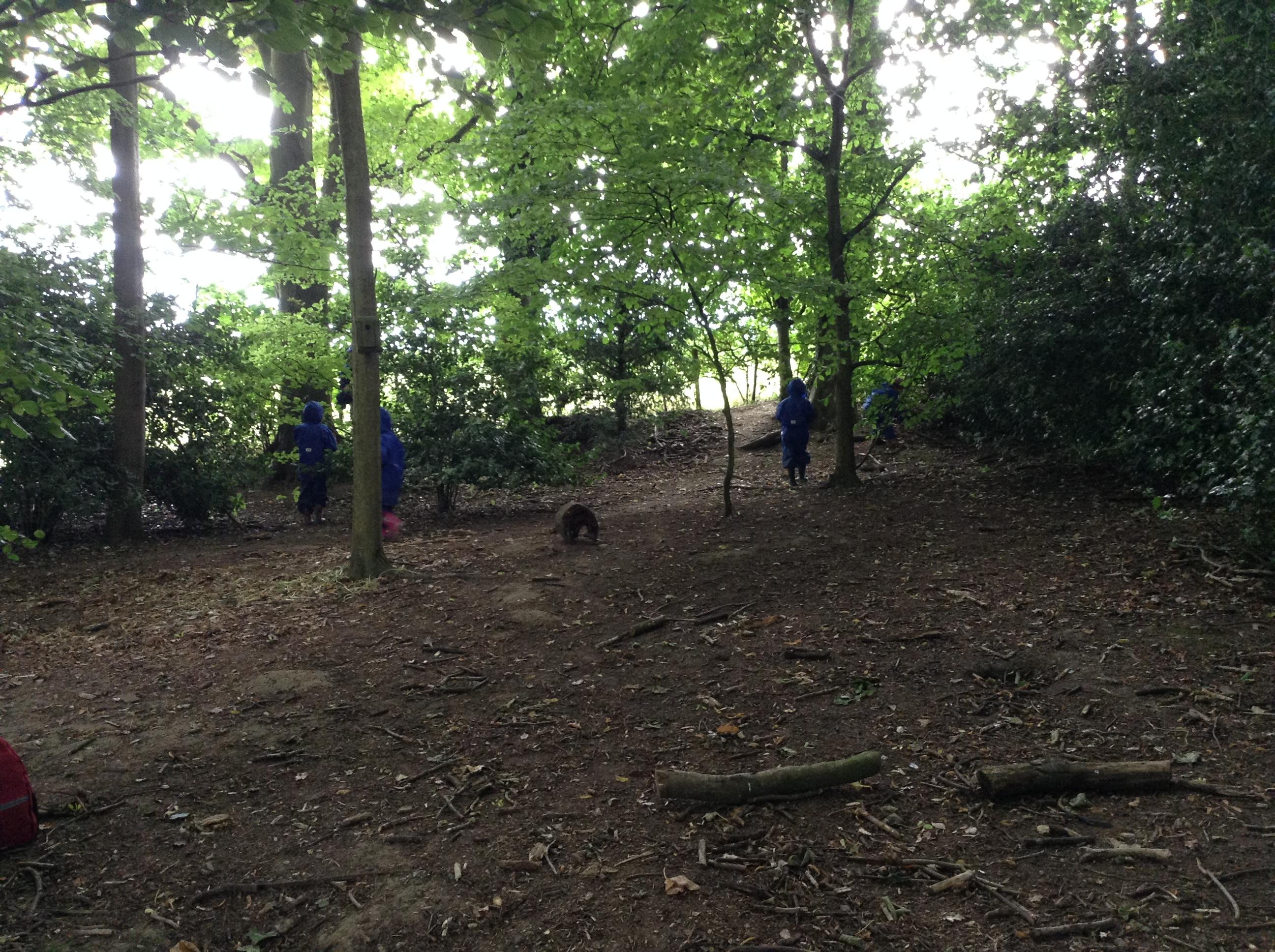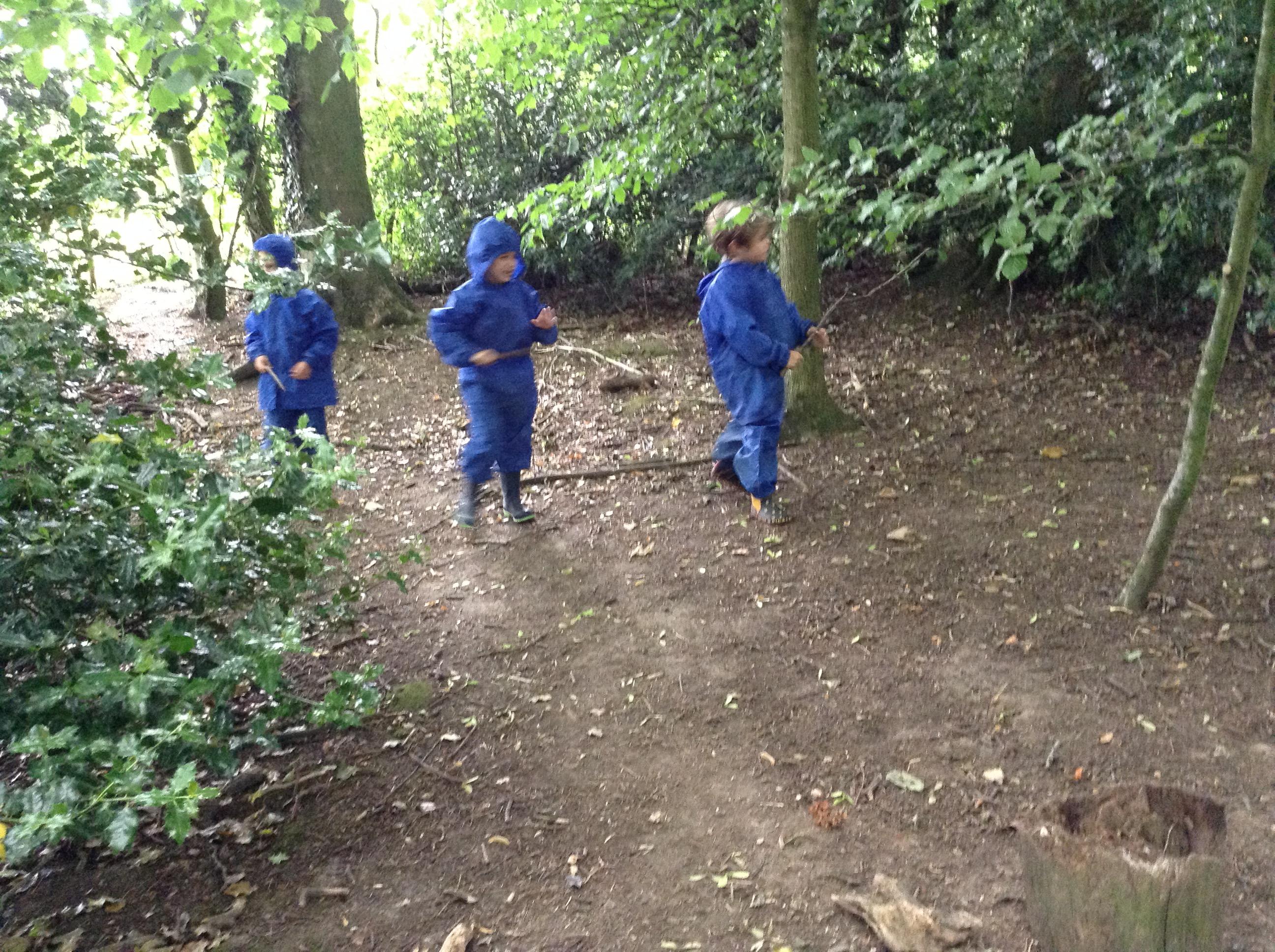 We also had some water at forest school today with a little rain. Now all of the leaves have grown the trees did a really good job at keeping us dry