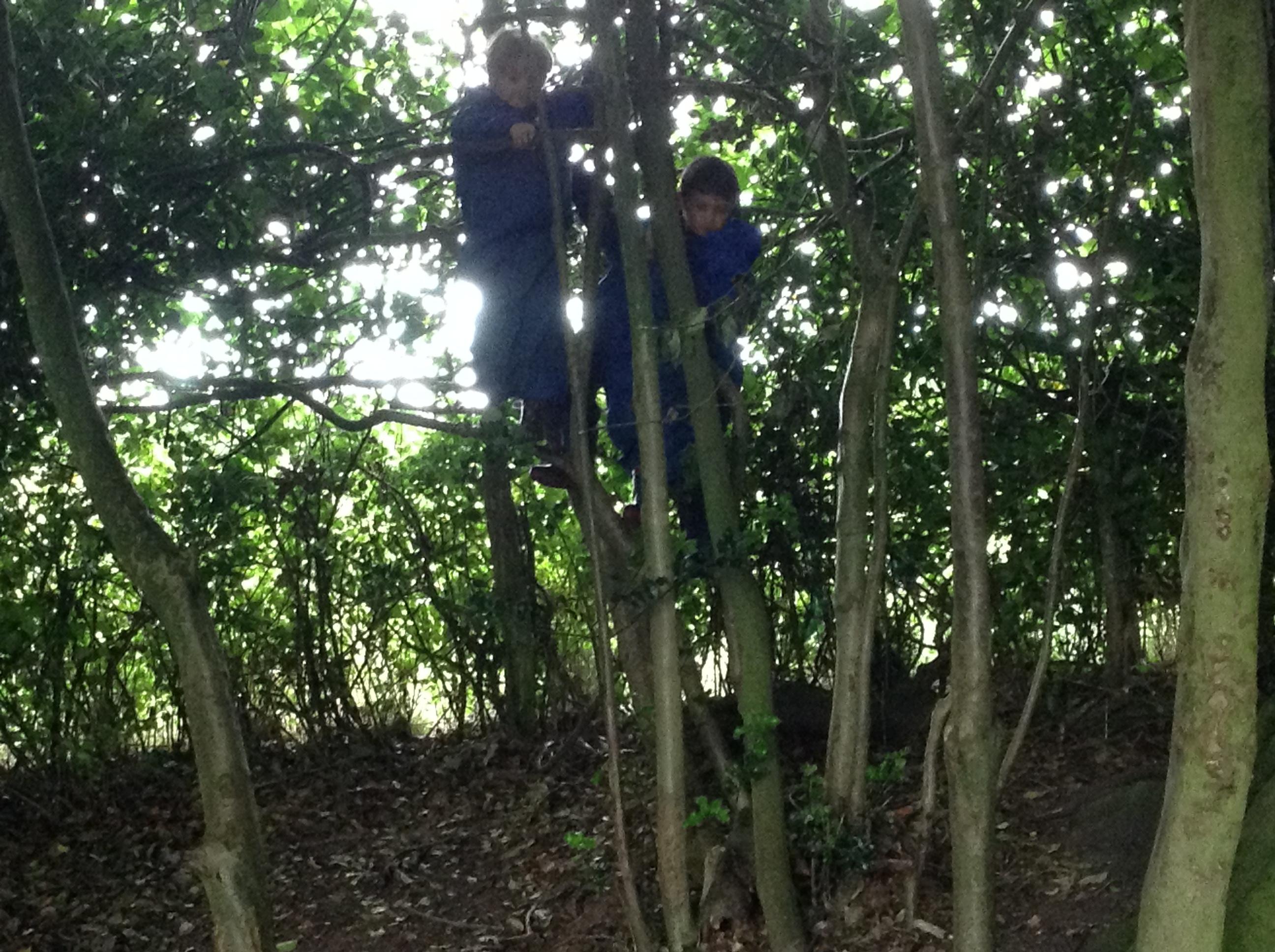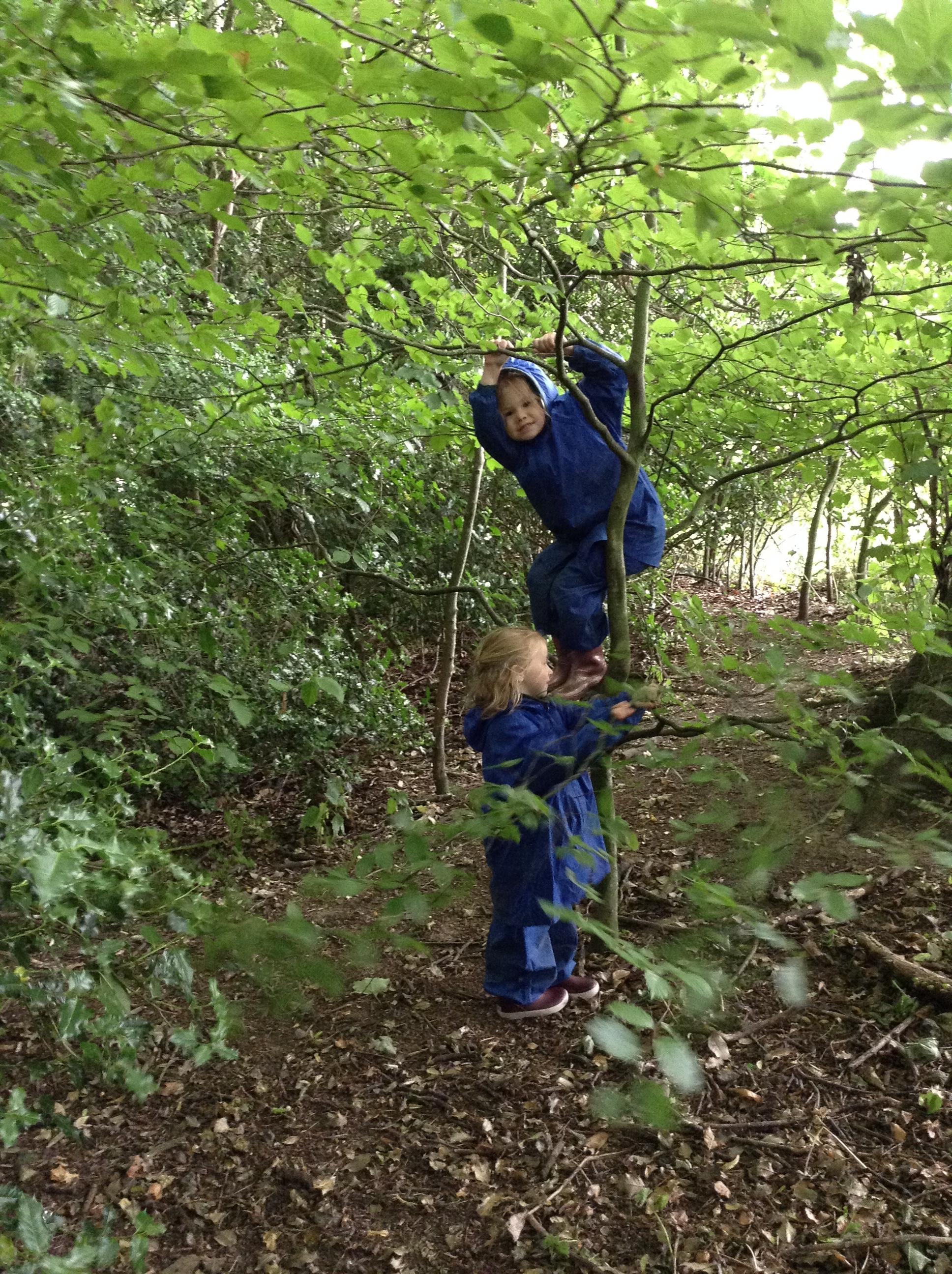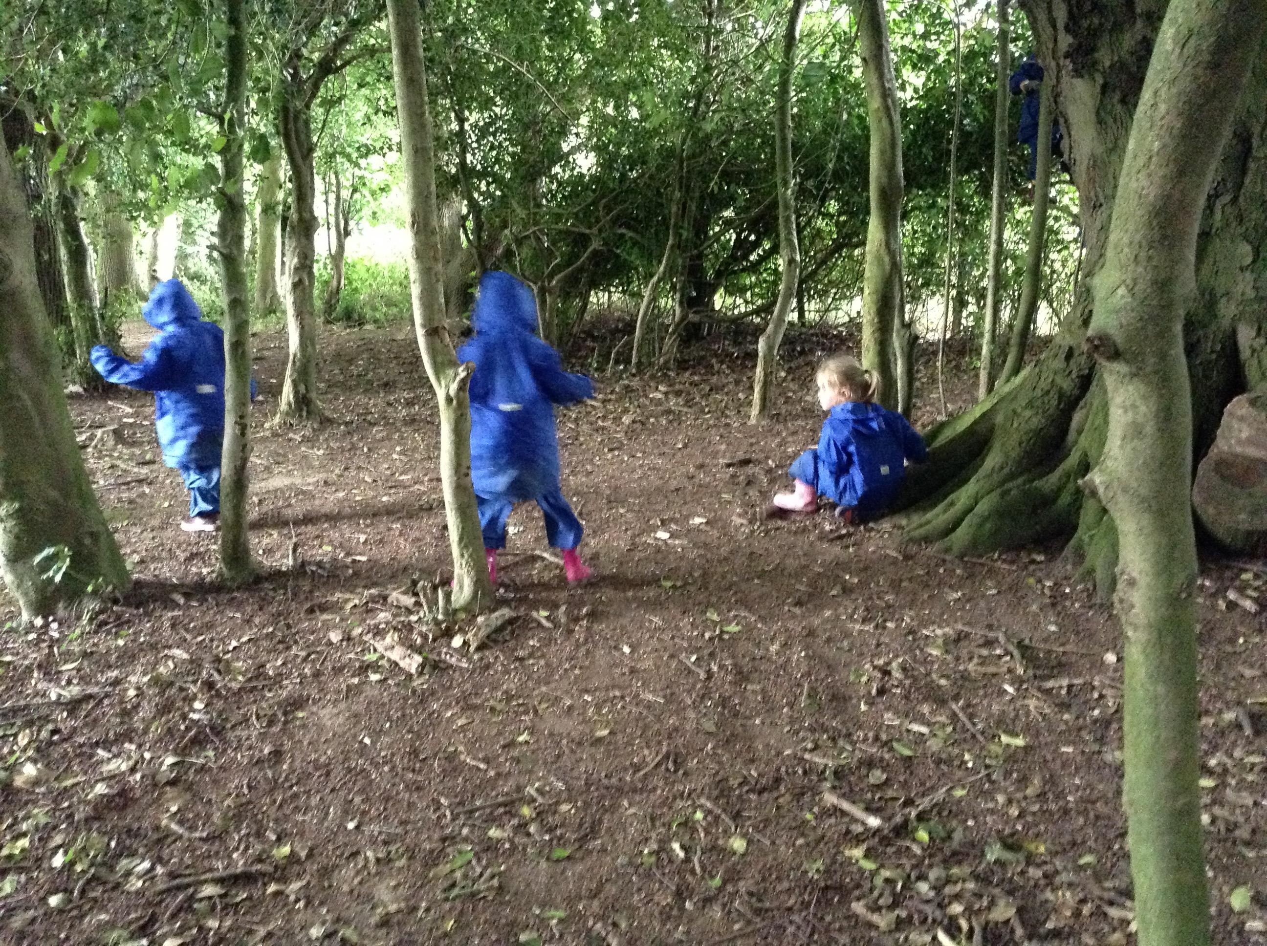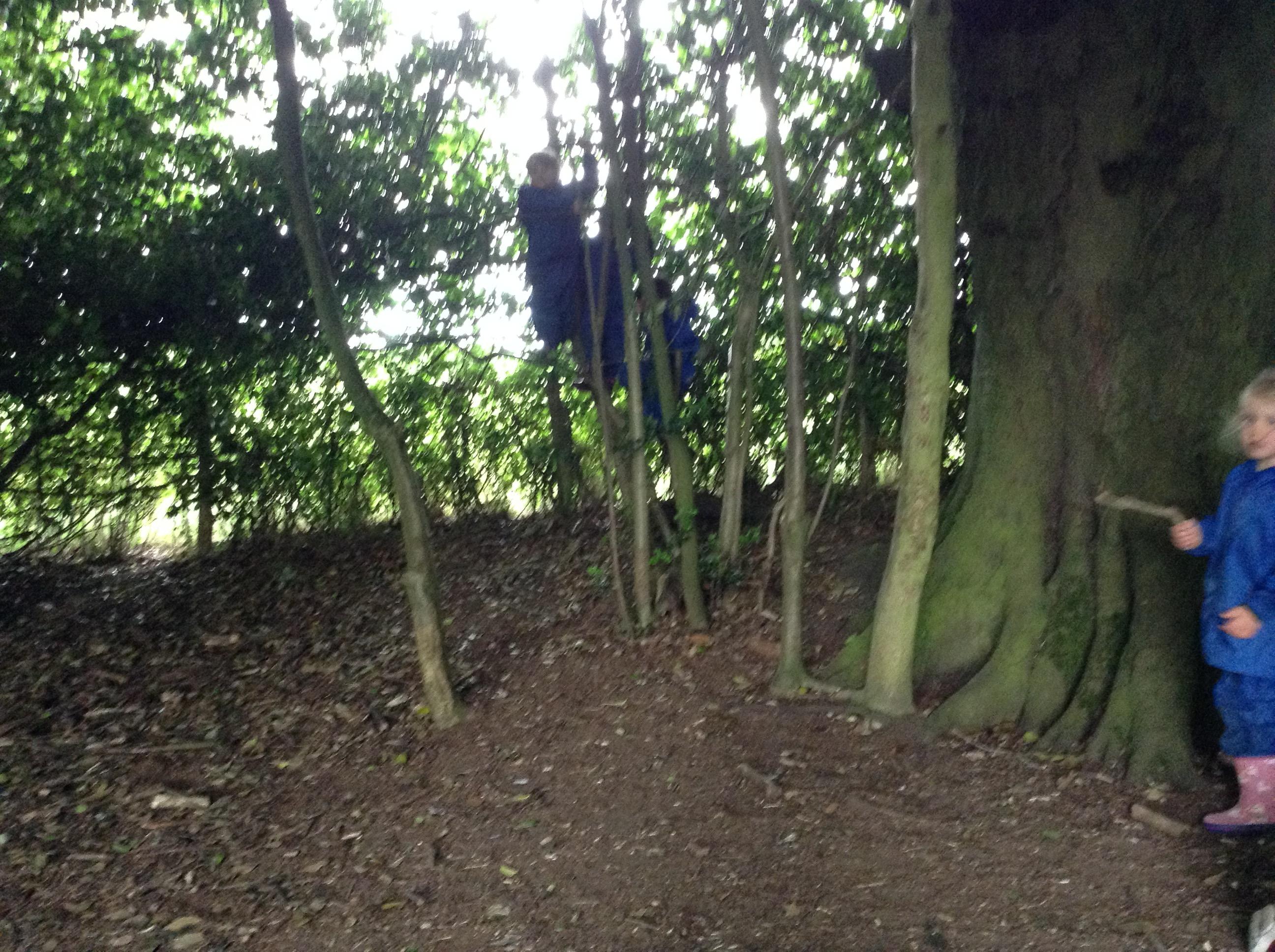 We also had some water at forest school today with a little rain. Now all of the leaves have grown the trees did a really good job at keeping us dry