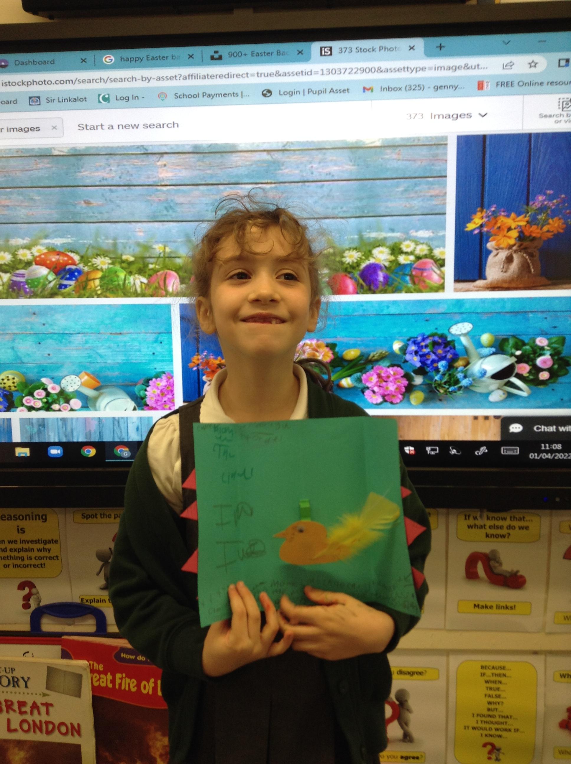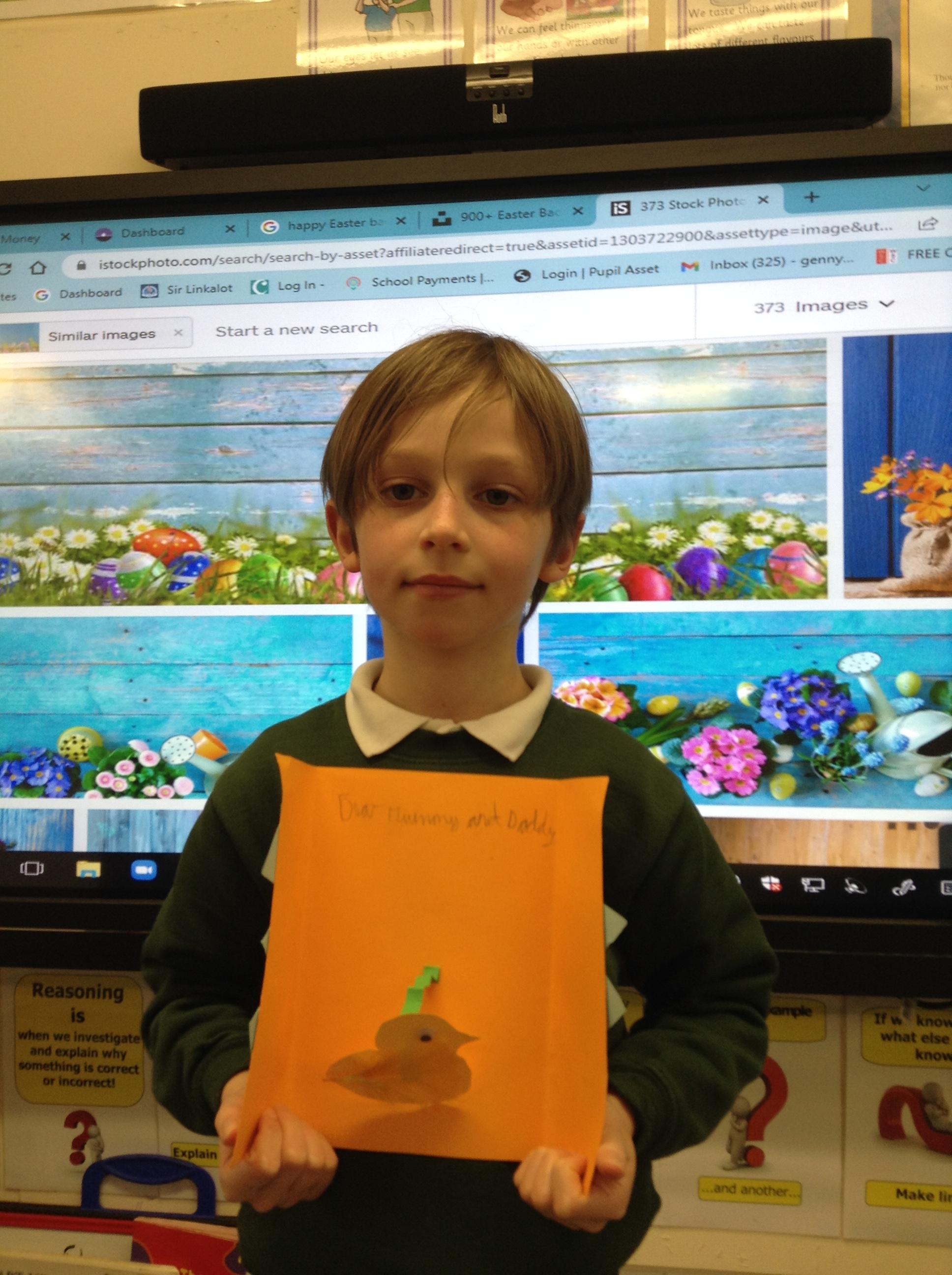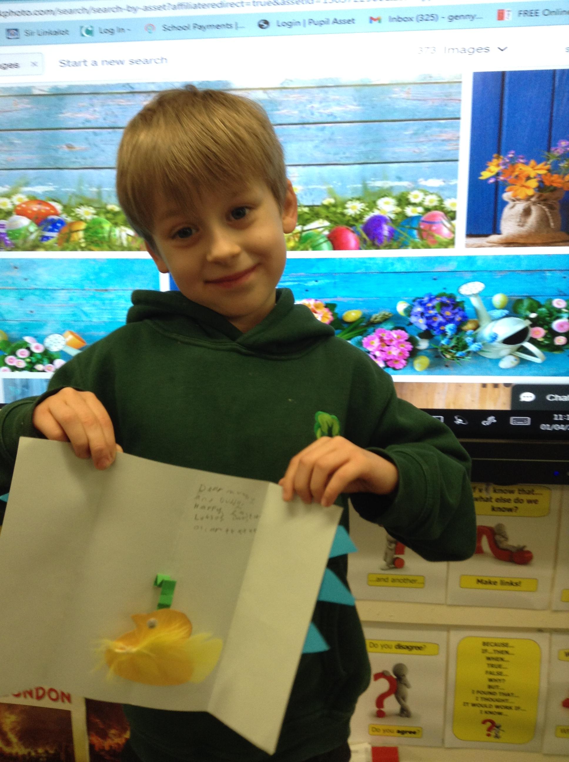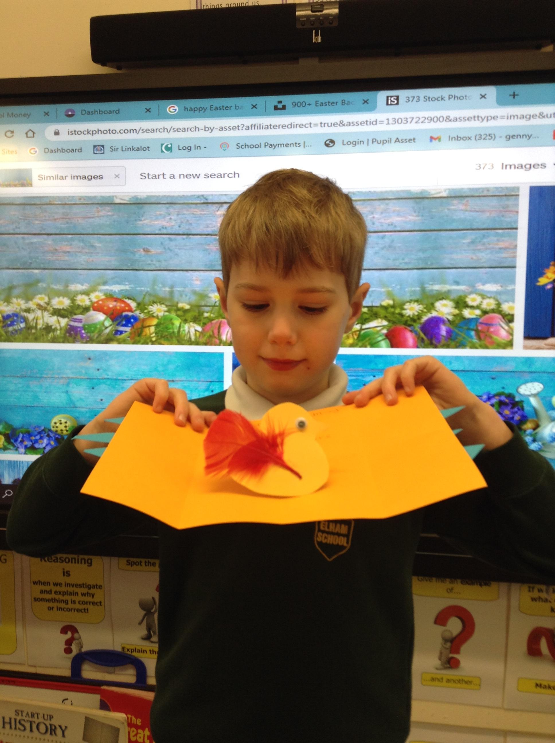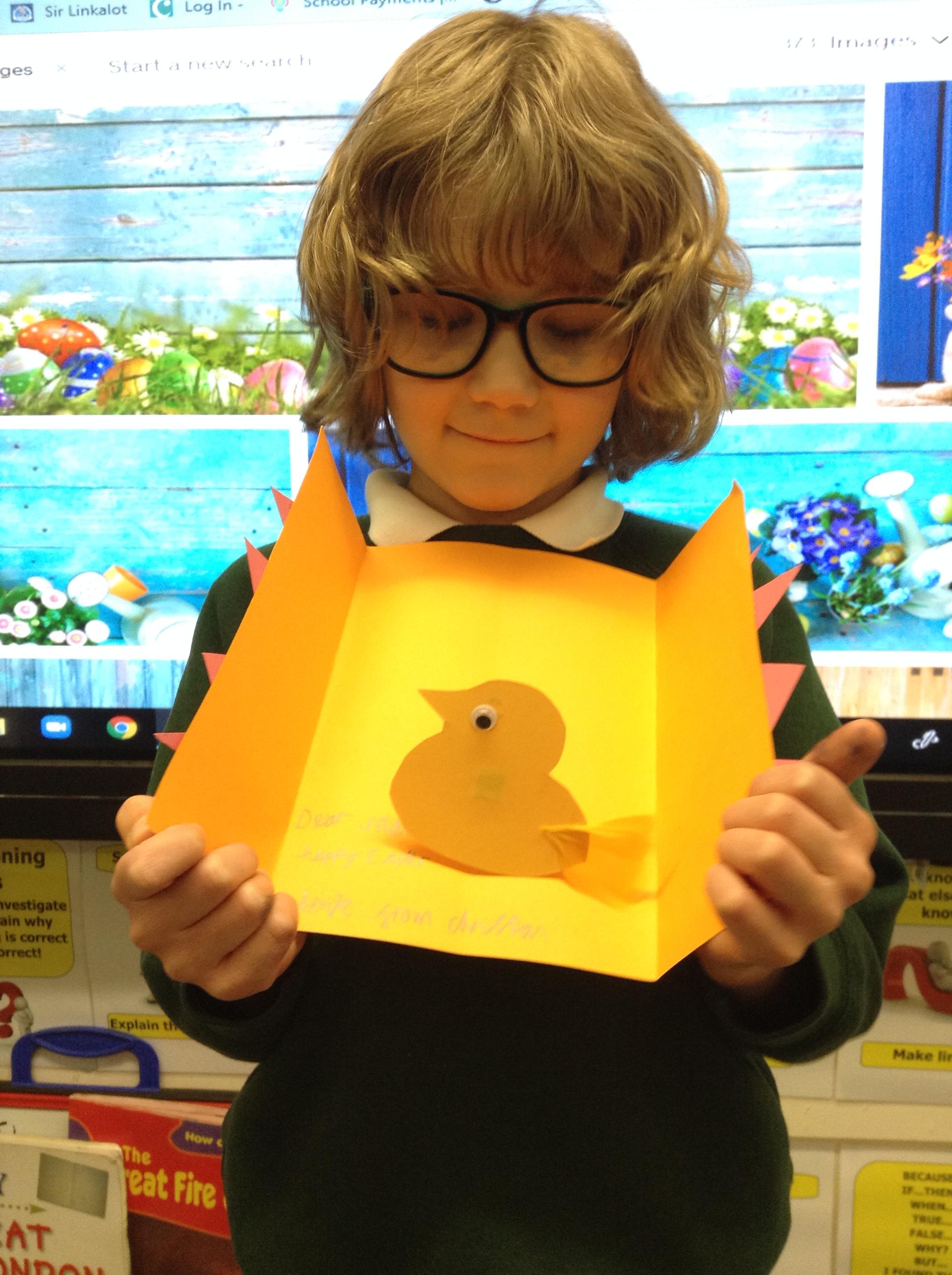 'I made an Easter card with a cracking shell and a pop up chick!'