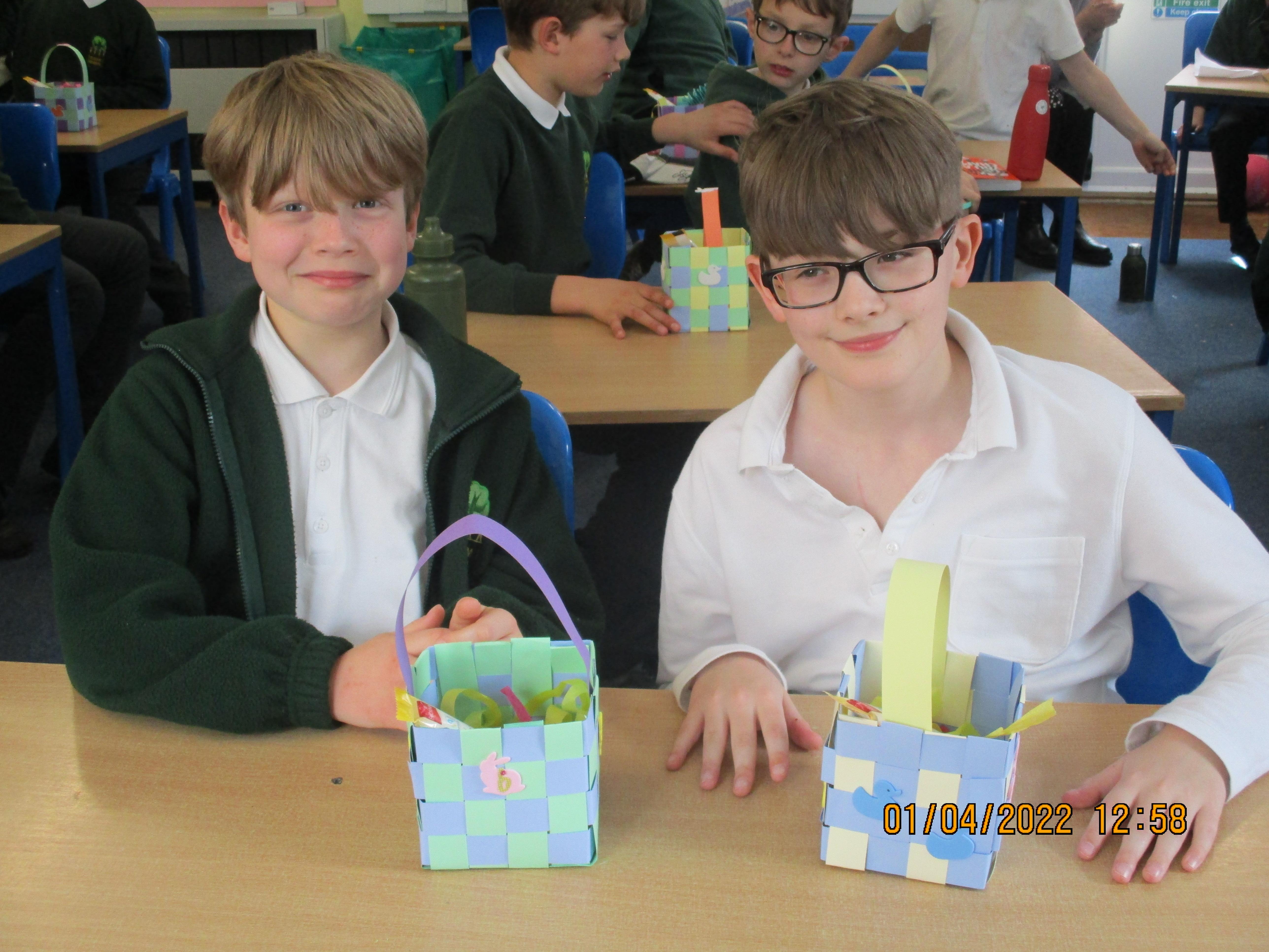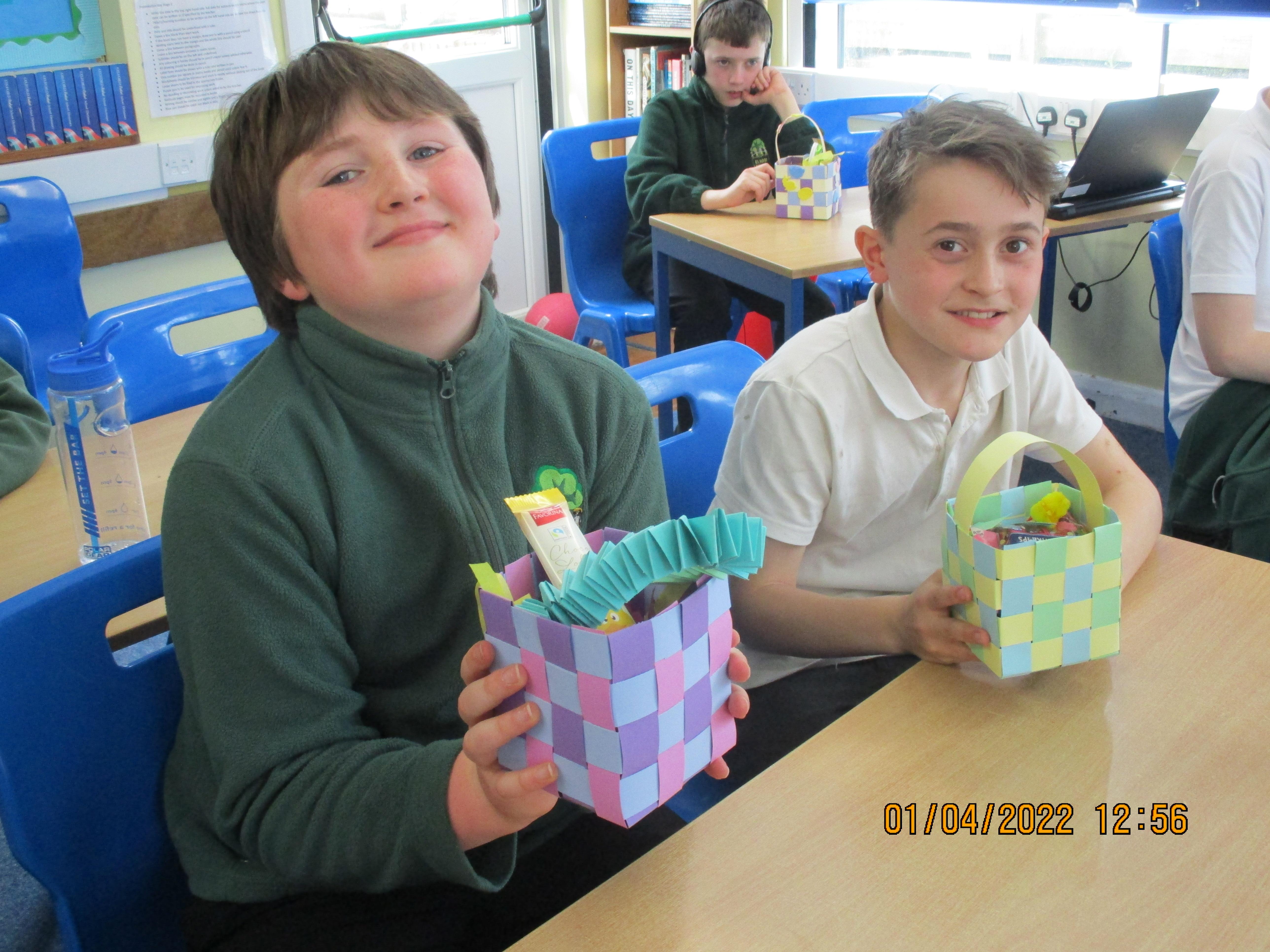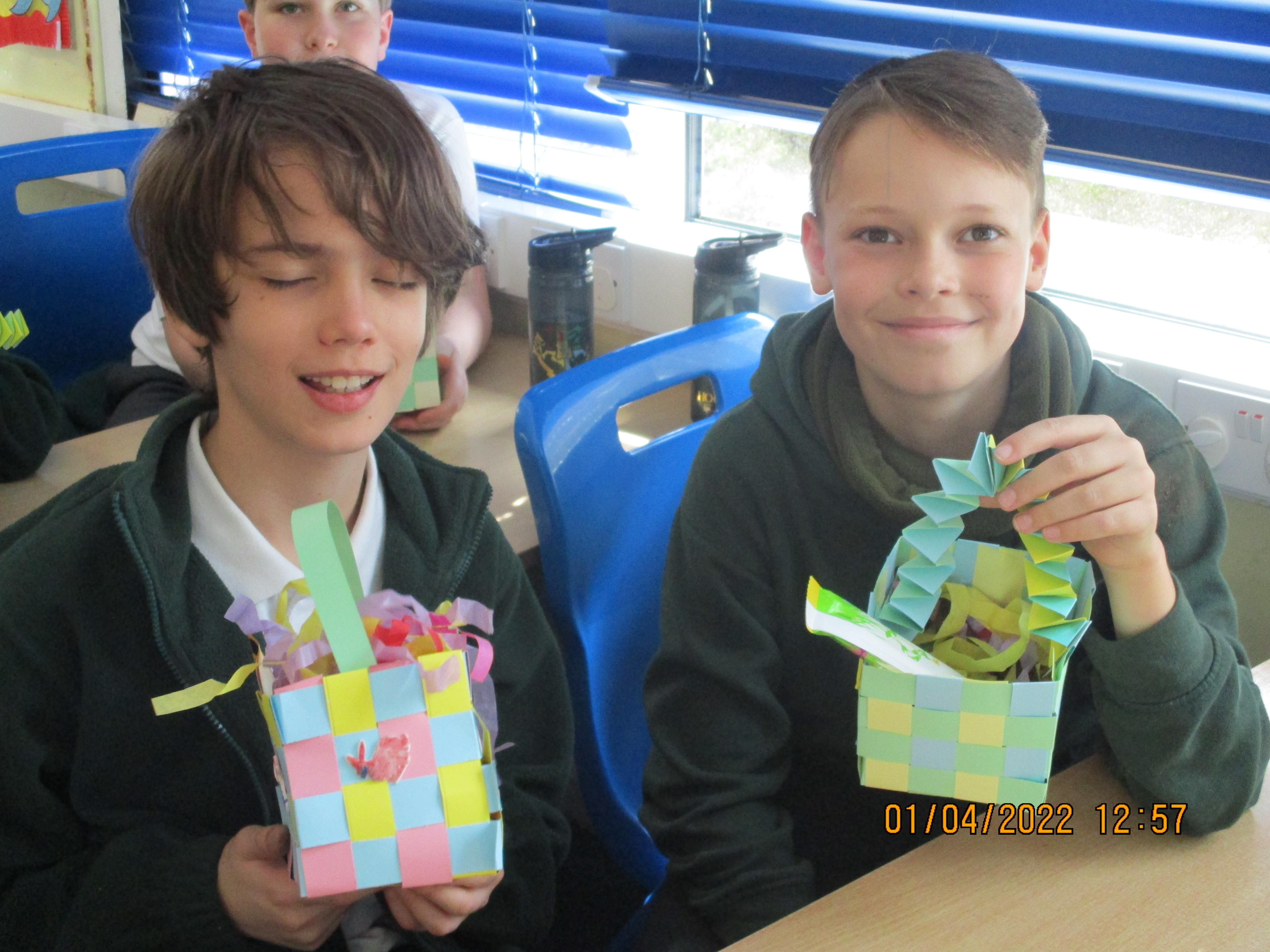 On Friday morning, we made our Easter baskets by weaving thin strips of cards - see the photos of our finished craft below. Some of us found it trickier than others, but we all ended up with beautiful baskets which were then filled with Easter chocolate treats for us to take home.