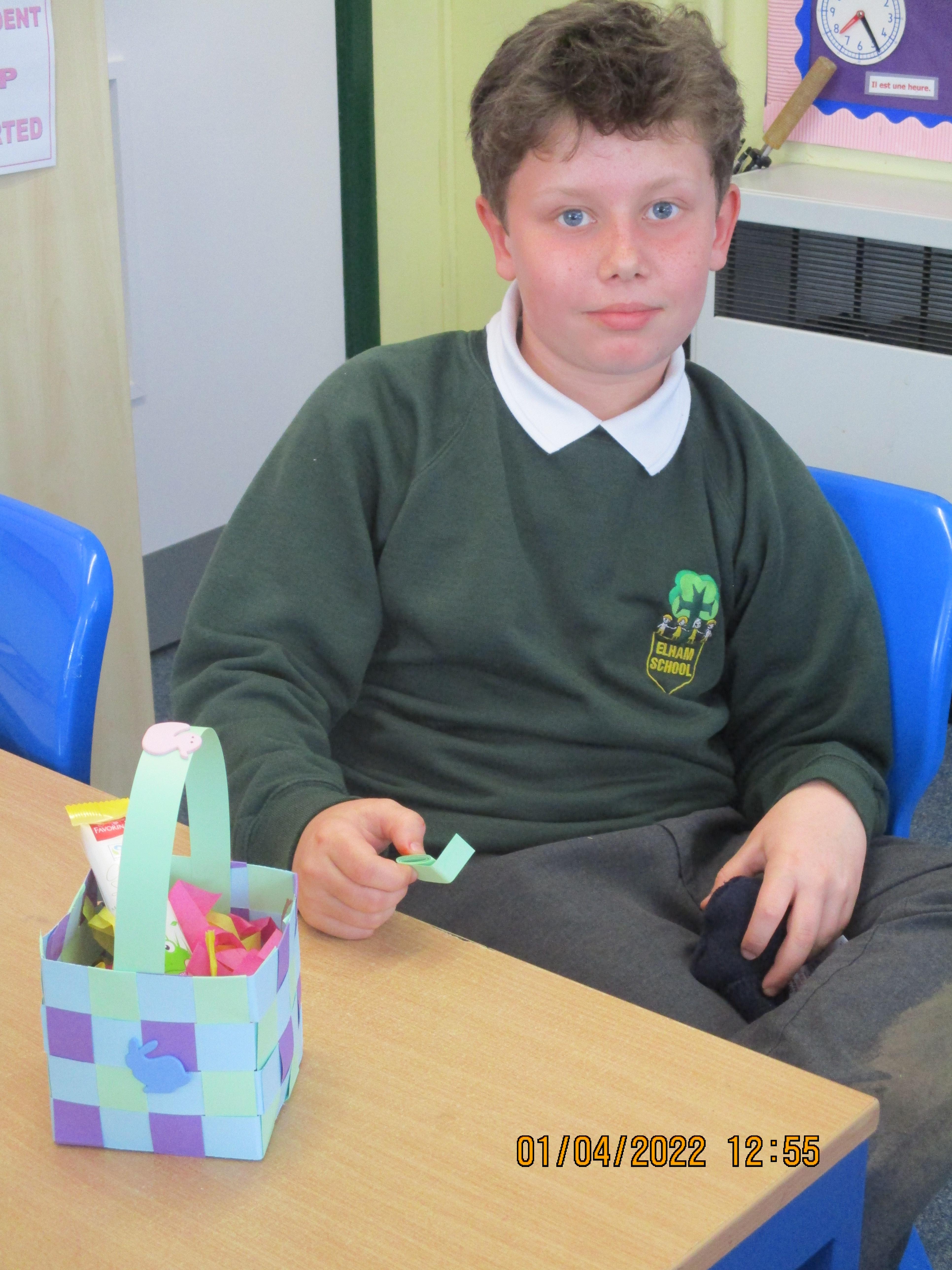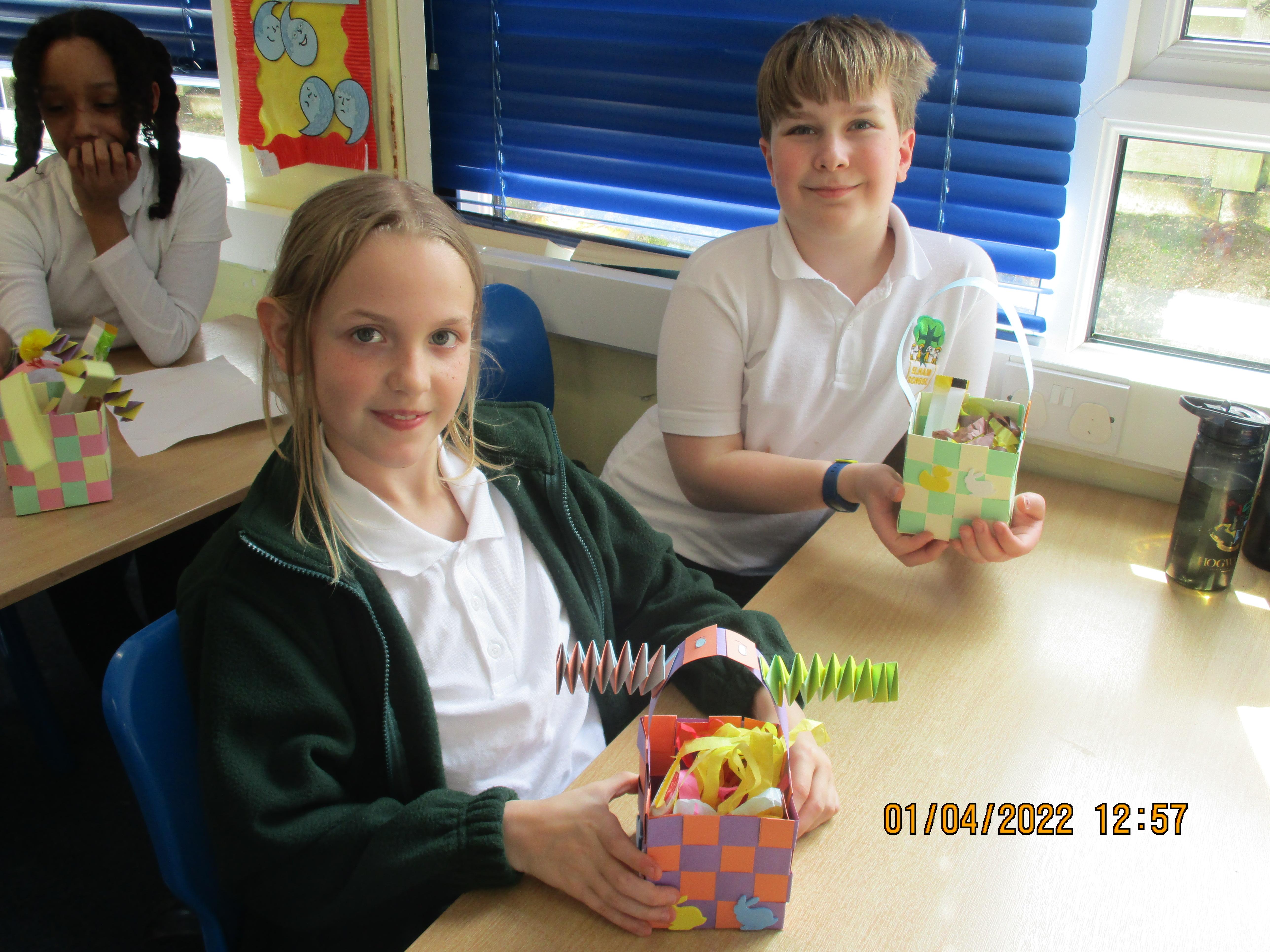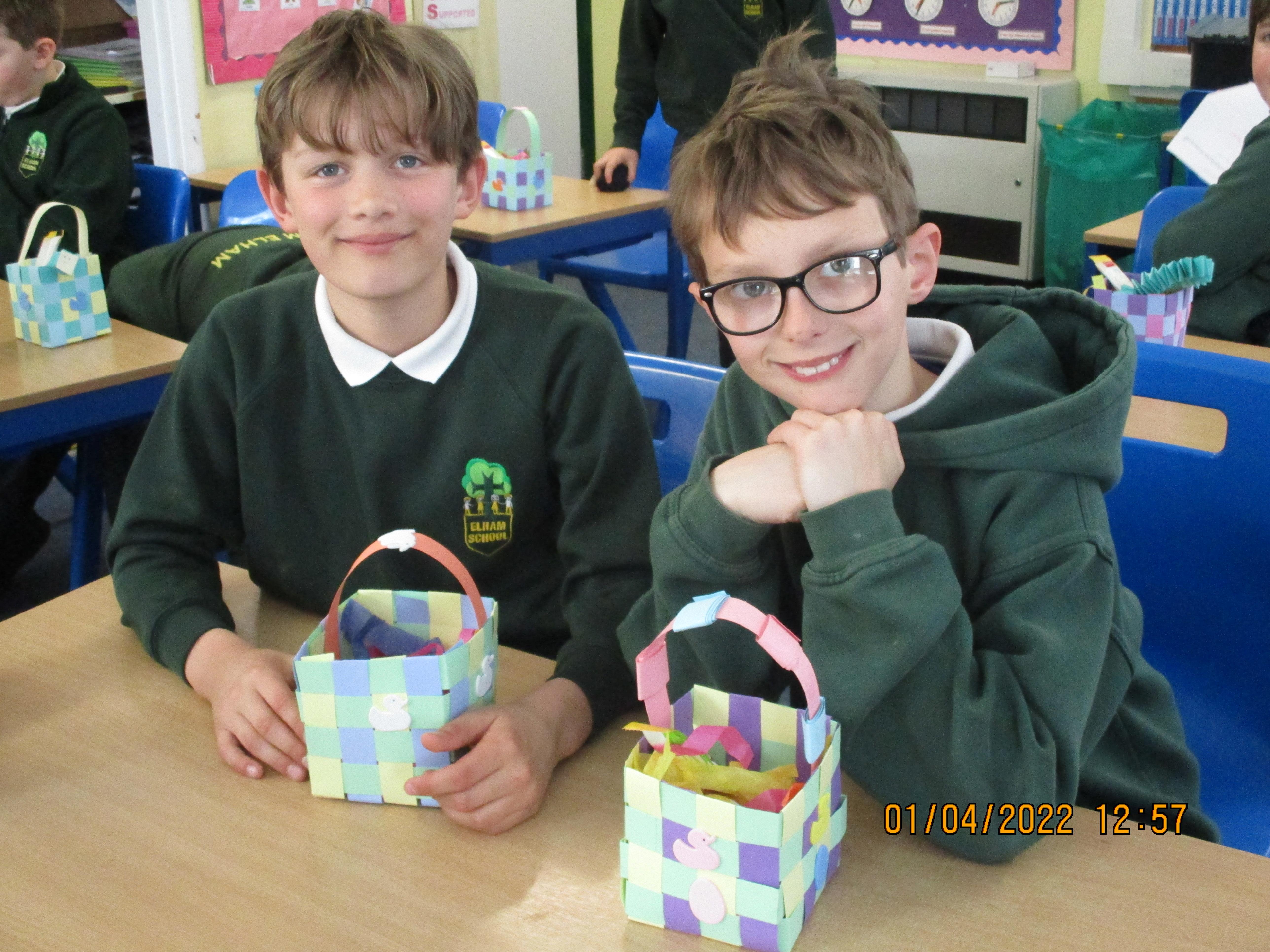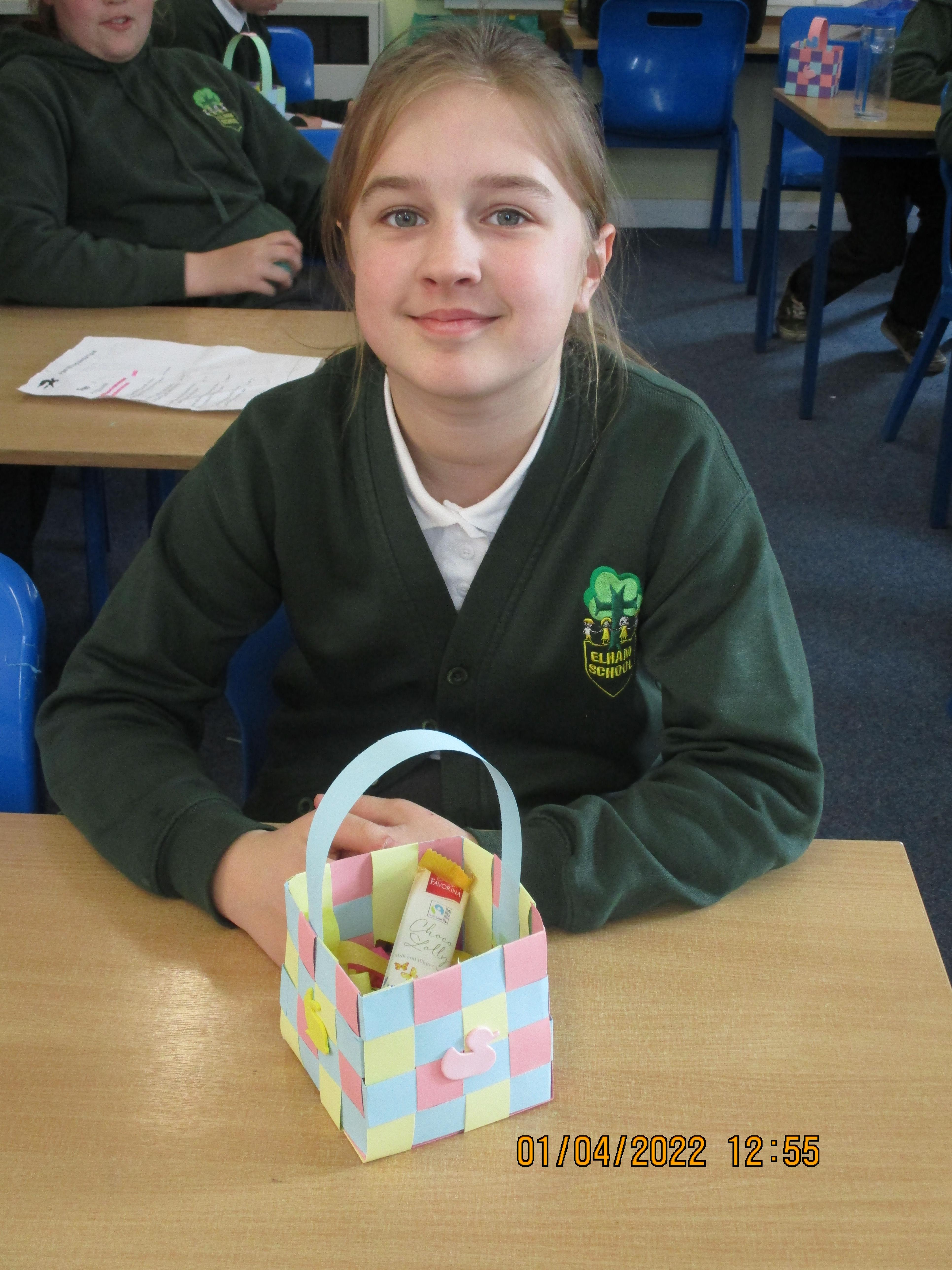 On Friday morning, we made our Easter baskets by weaving thin strips of cards - see the photos of our finished craft below. Some of us found it trickier than others, but we all ended up with beautiful baskets which were then filled with Easter chocolate treats for us to take home.