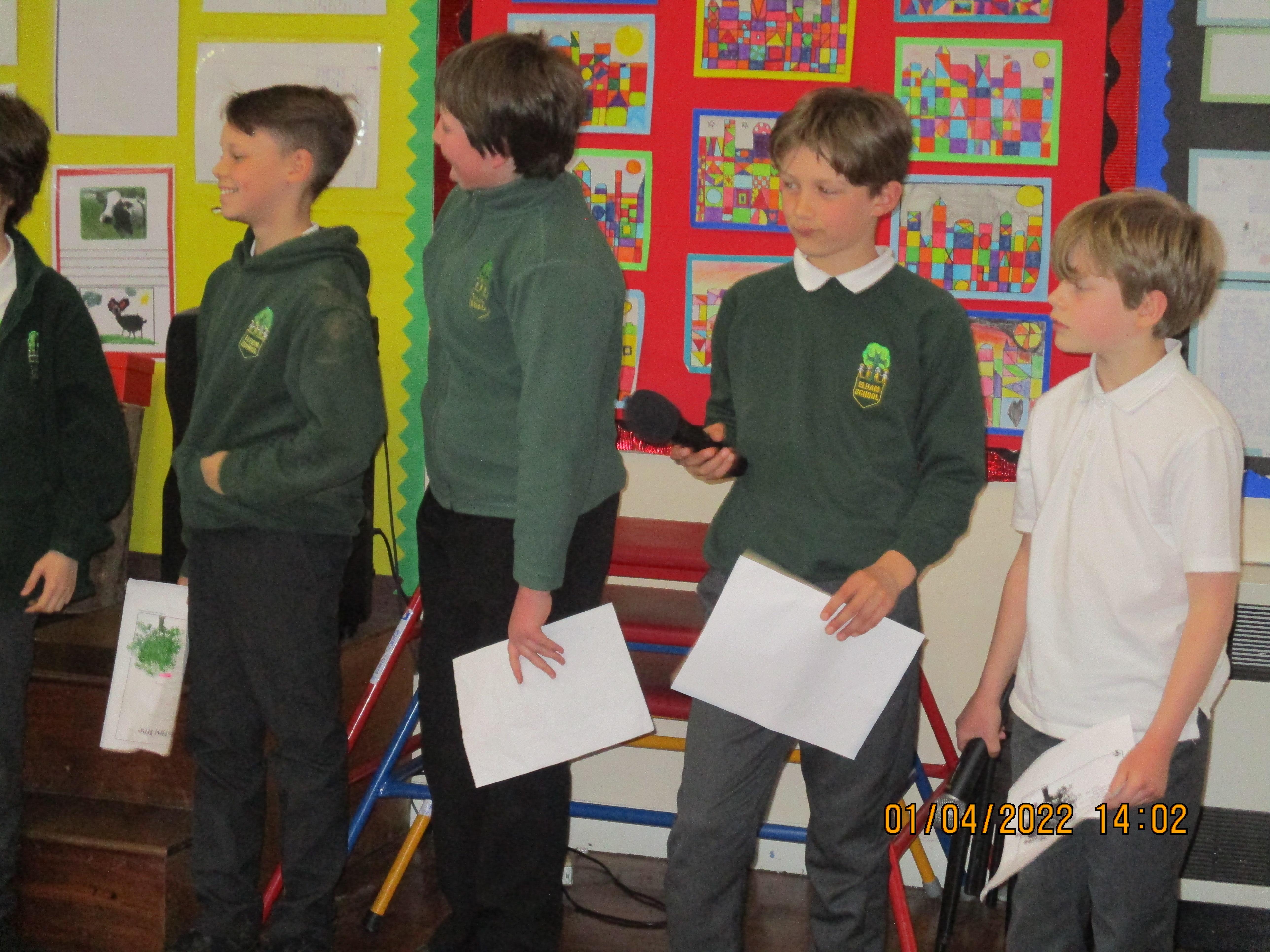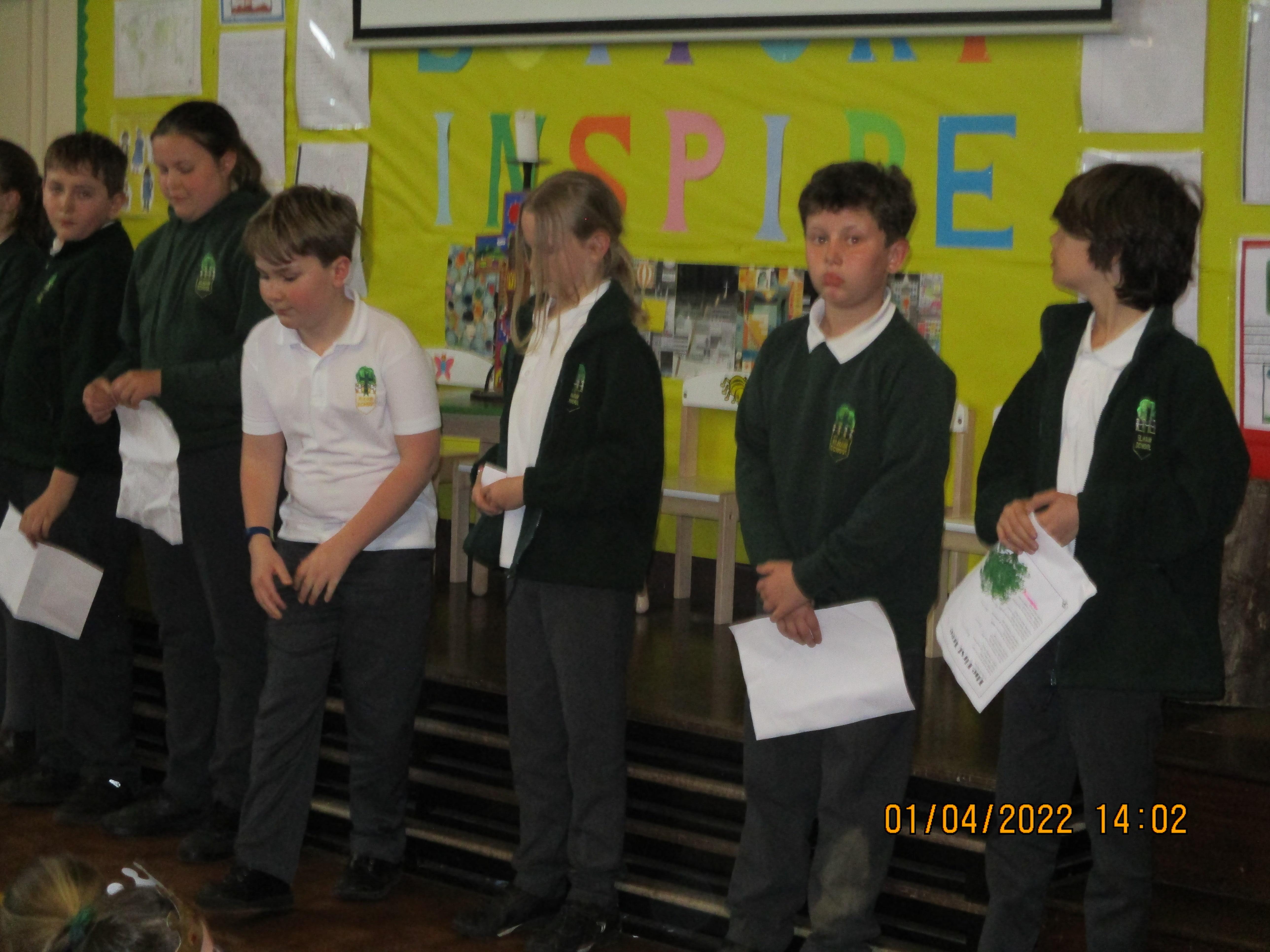 Finally, we ended Term 5 with a special assembly where Rev. Deb blessed the seven silver birch trees which have been planted on the field to celebrate Queen Elizabeth II's platinum jubilee. The assembly was due to happen outside, but as the weather that day had thrown snow and hail at us we had to celebrate in the hall instead. It was lovely to see so many parents sharing our assembly for the first time in over two years! Each class spent a few minutes on a presentation to do with the trees or the platinum jubilee - there were songs and poems and Oak class did a great job of reading out four poems about trees. There are some photos below.