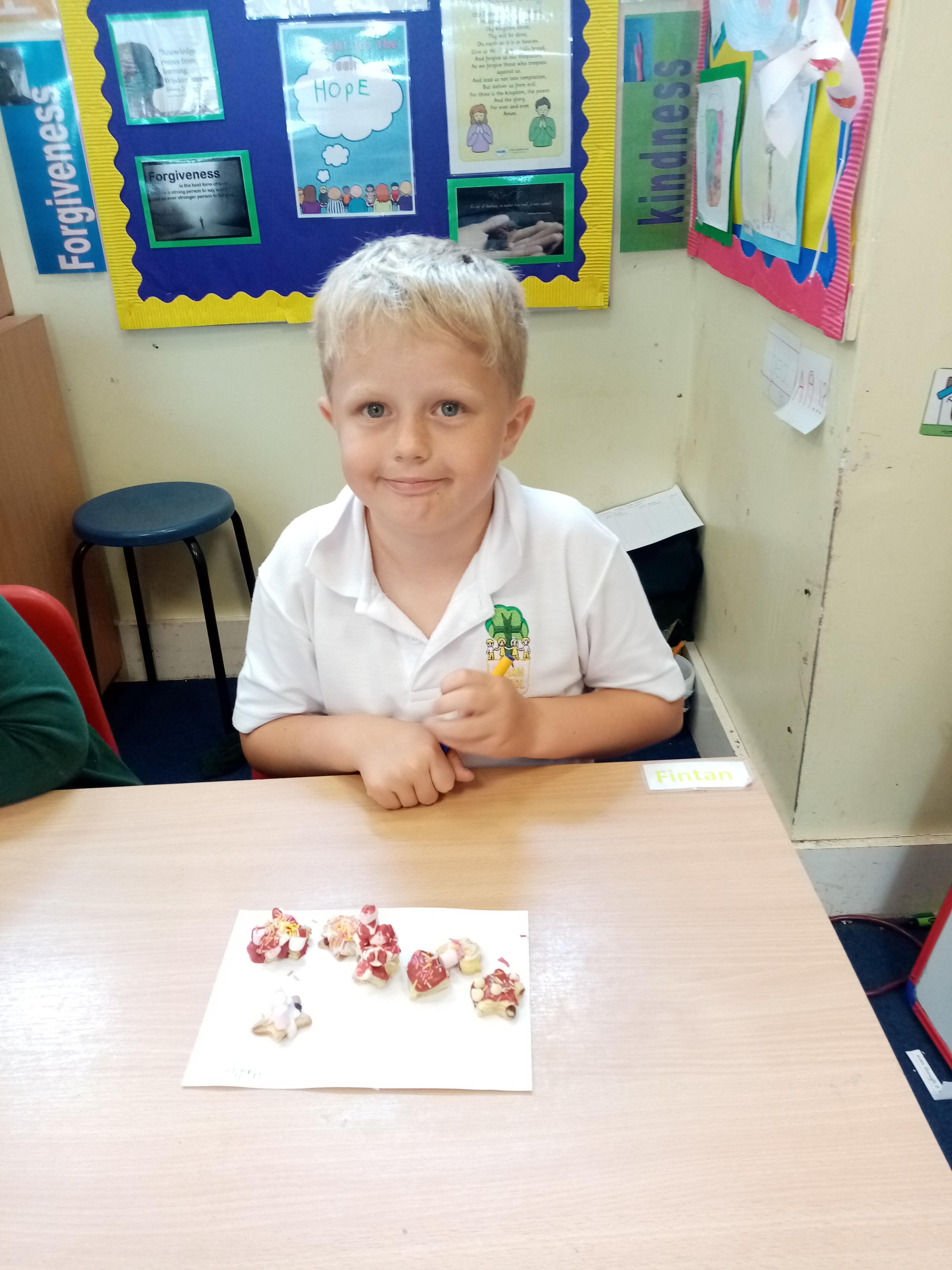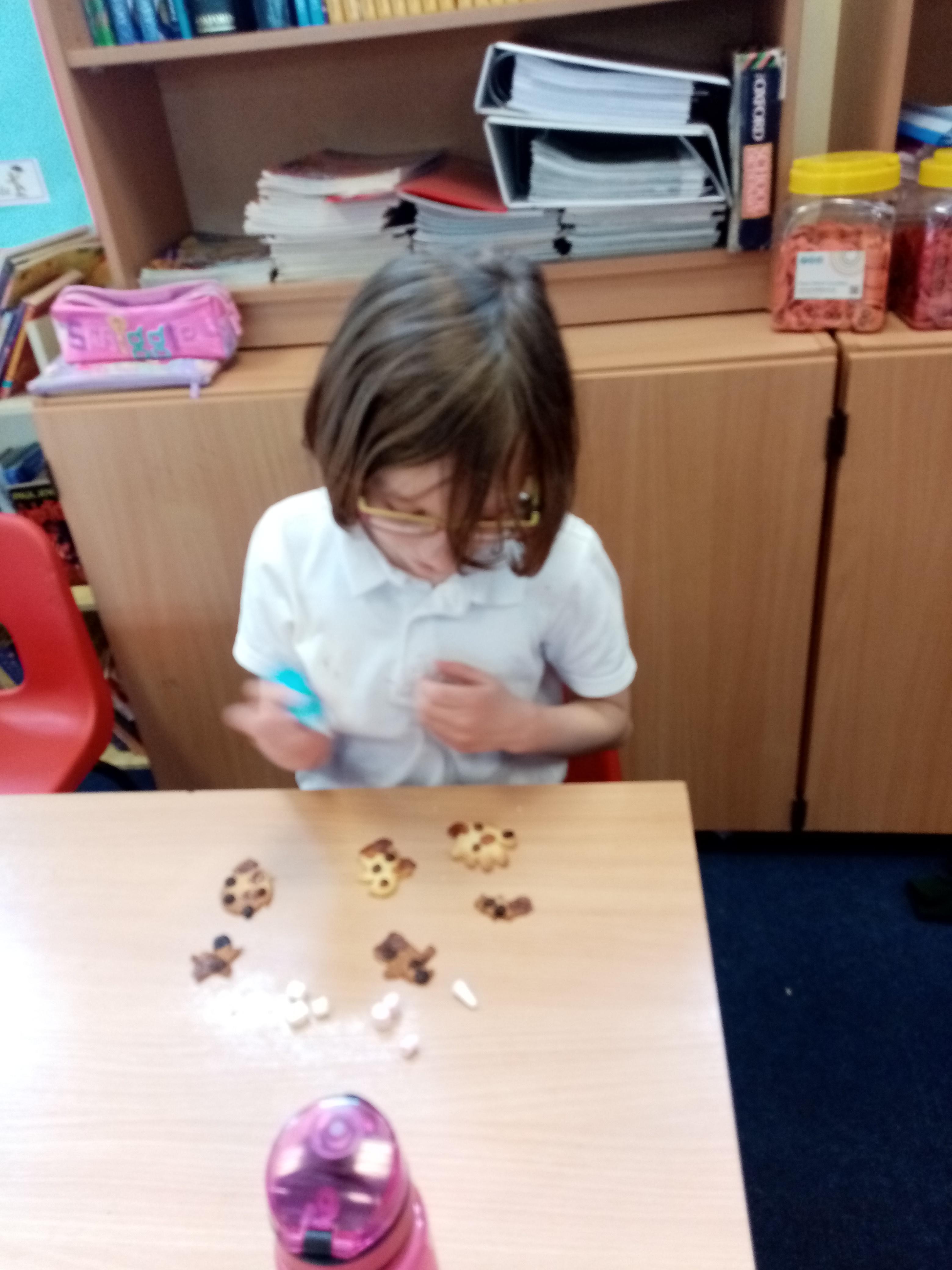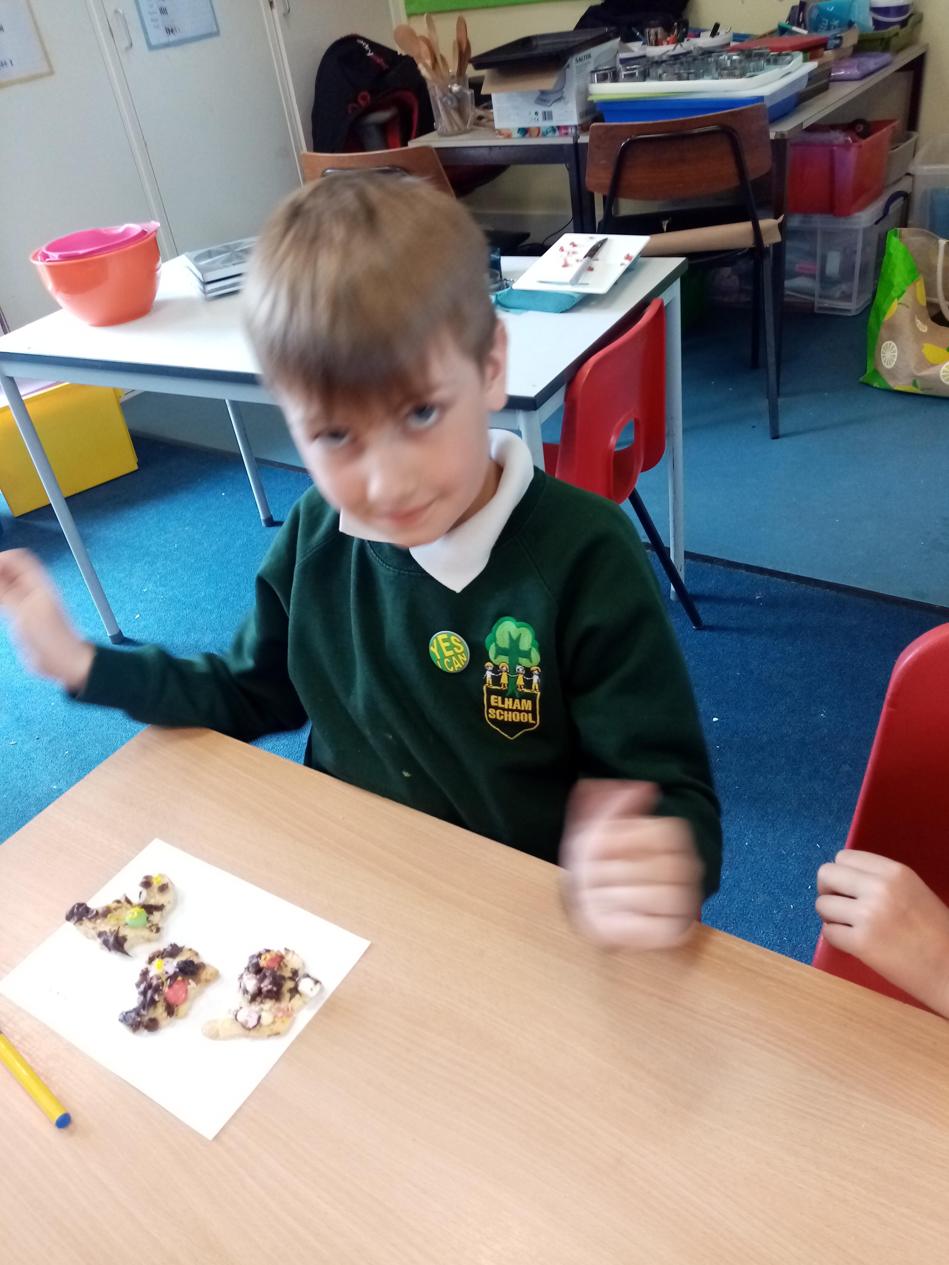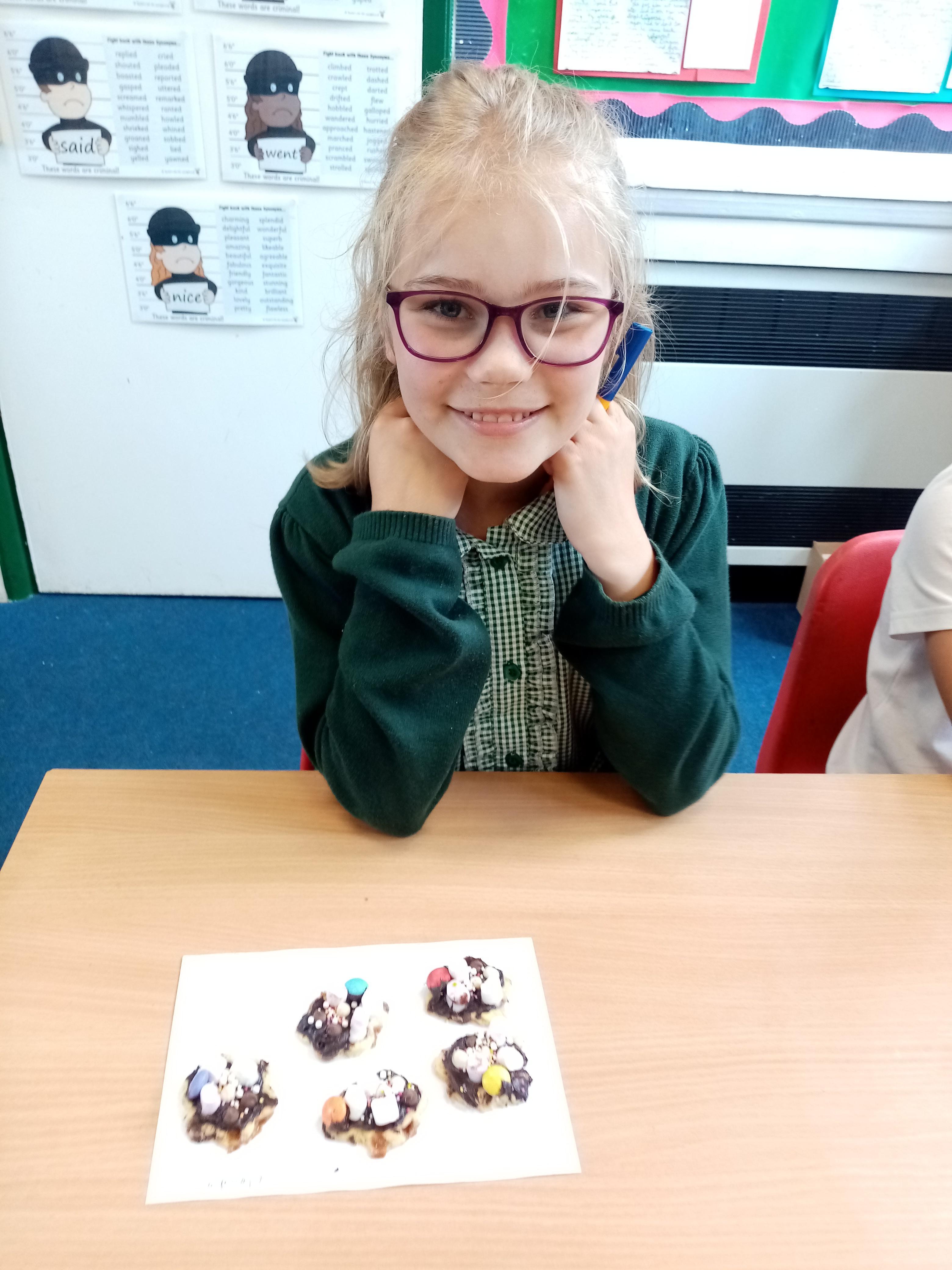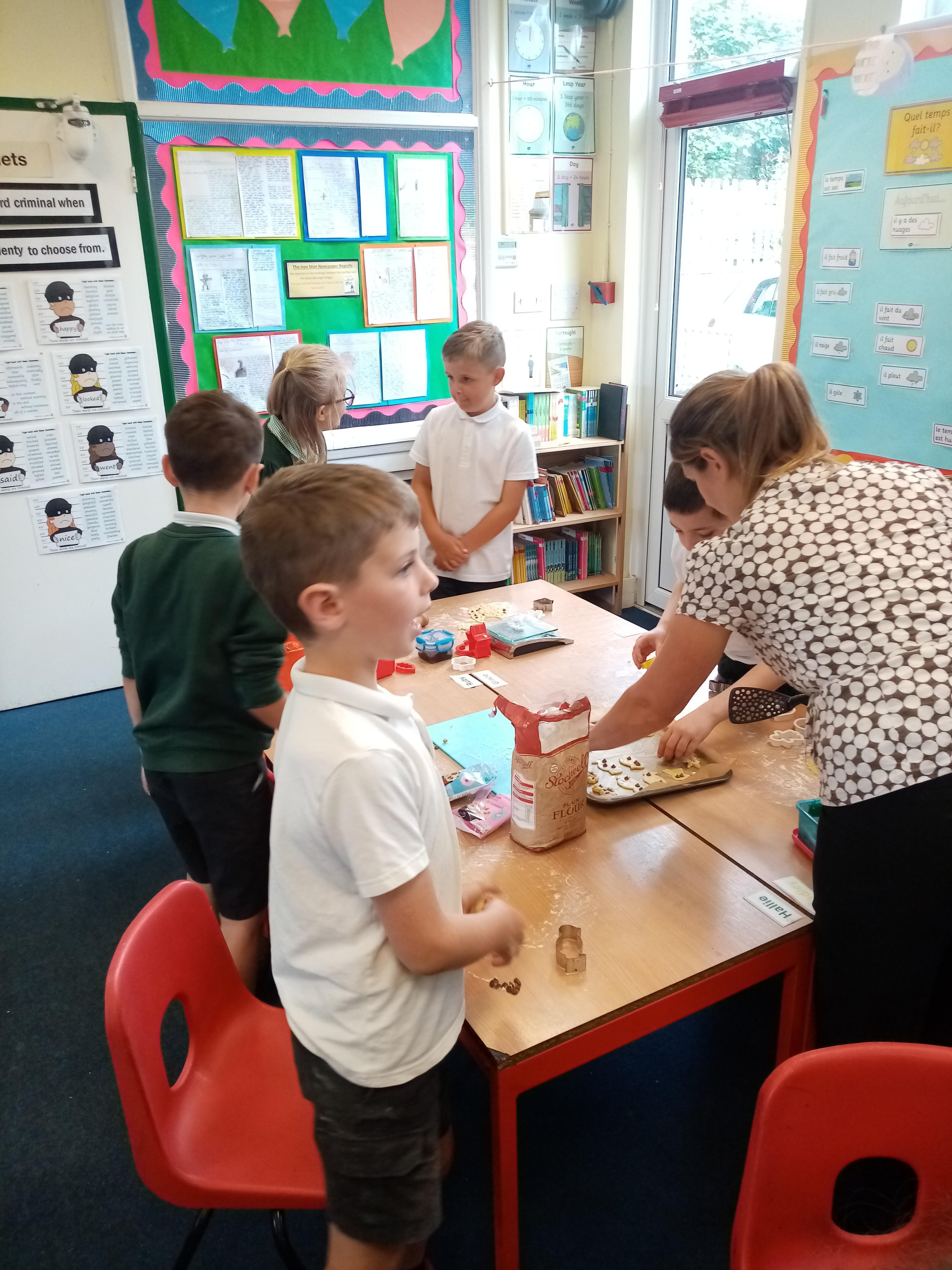 In groups, we started with a basic biscuit recipe, and used scales to measure out the ingredients.  We formed the mixture into a dough and then shared this out between us.  Each of us then innovated the recipe using our own ideas of what ingredients to use.  We rolled out the dough and used cutters to create our biscuits ready to be baked.  We were all very helpful at cleaning the classroom up afterwards as we all seemed to be covered in flour!