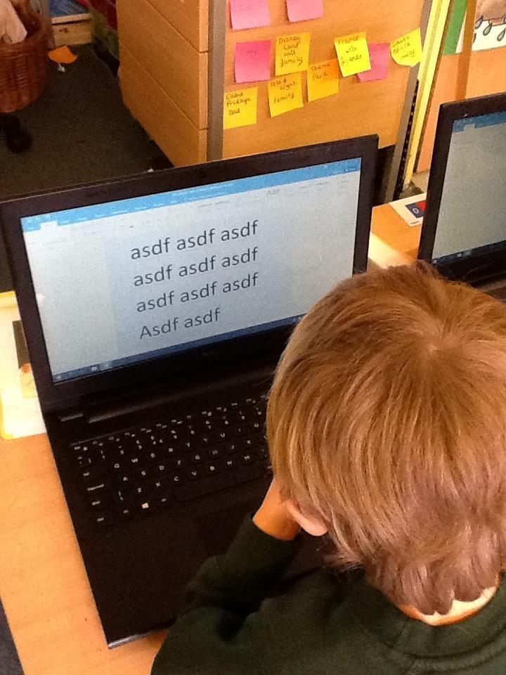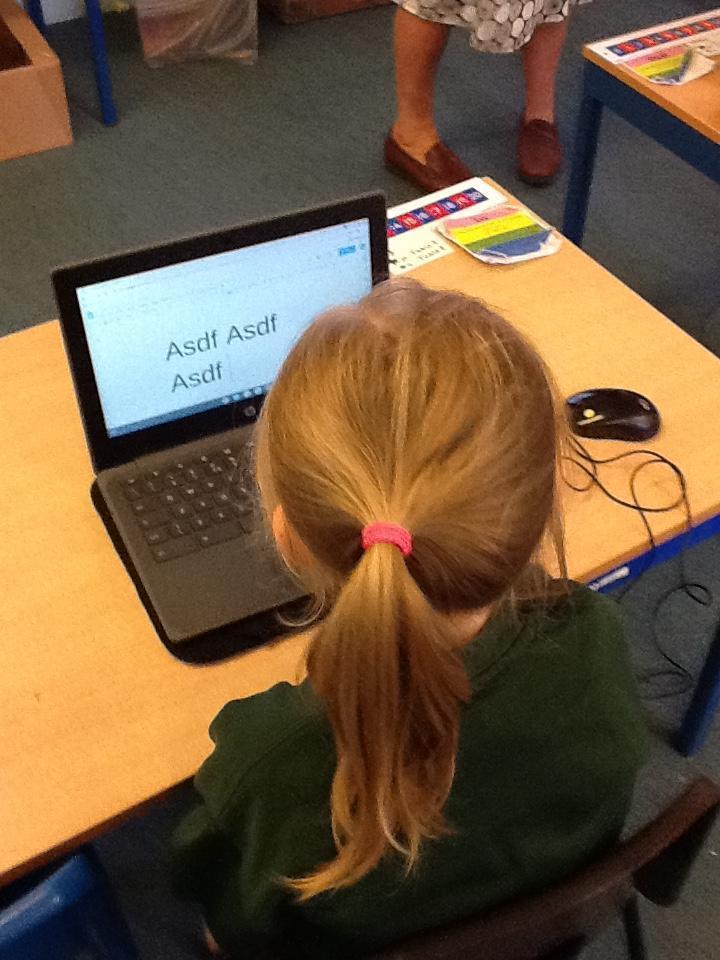 The children practised touch typing again today in computing.  Some of them can now type asdf ;lkj with their eyes closed!!!  It's not easy because it's tricky to move one finger with out moving another, but it is a really amazing skill and one they can practise at home.