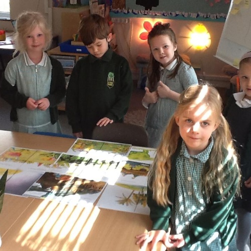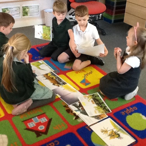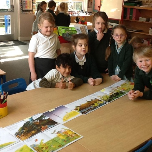 The children have sorted out pictures from our story and put them into order and then acted out the story, taking it in turns to be the narrator.