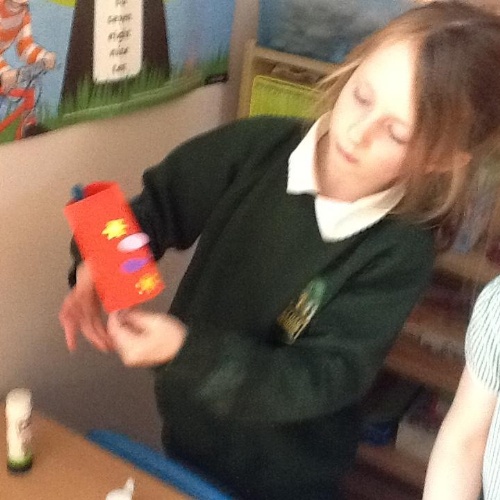 "We have made Mezuzas and we have decorated them. We have written a prayer to God and it's going in the Mezuza. You can touch your Mezuza when you come in or out of your house, to remember God."