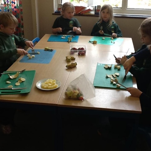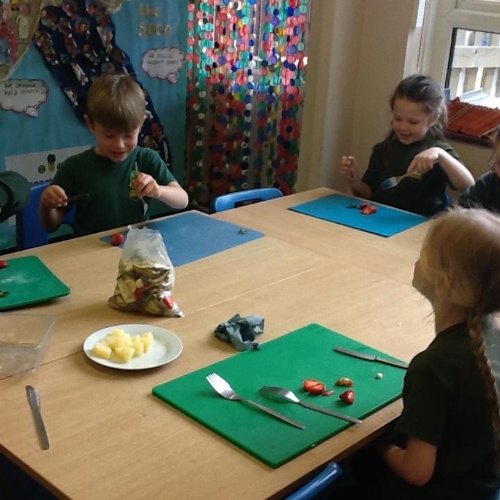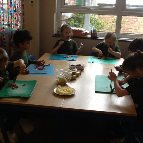 The children have been learning food preparation skills in DT. We are hoping this will help them during lunch time too as it was all about holding the knife and fork correctly!