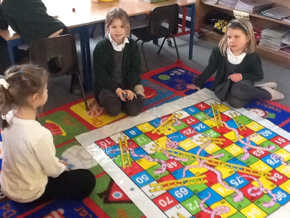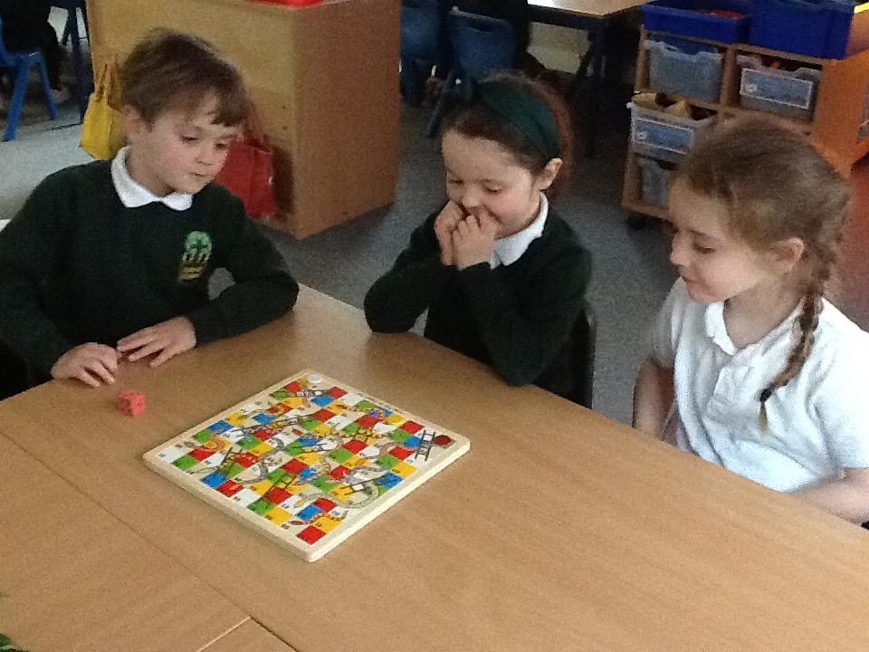 We have also played ball and doubled number that our hand landed on, and we played Snakes and Ladders, doubling the number on the dice (this has the advantage of making the game go faster!).