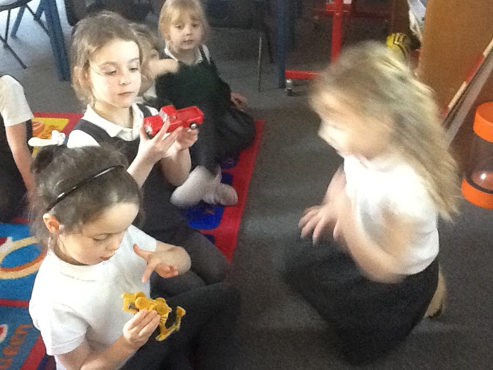Florence brought in a beautiful old musical carousel to show us this week, the children loved watching the tiny horses going round. Ophelia had brought in 2 old toys that were her dad's, 1 was an old Chevrolet truck and the other a digger. Thank you girls!