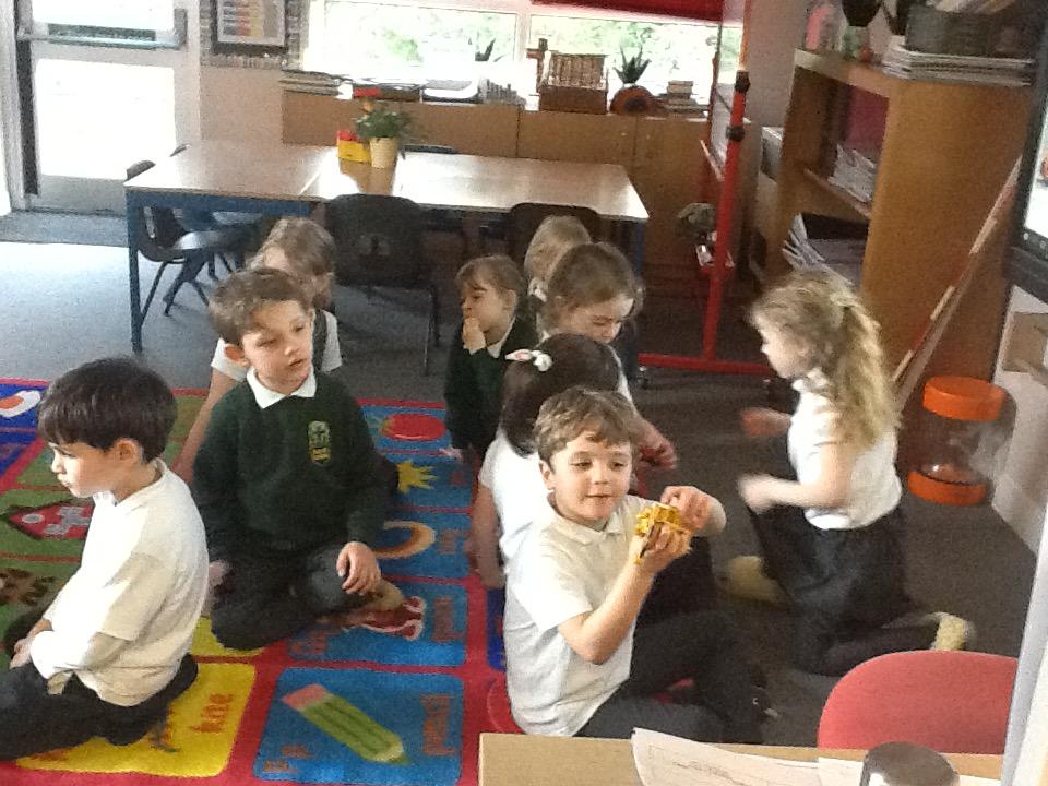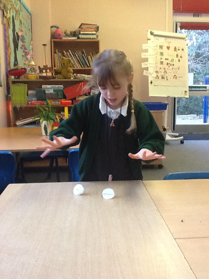 We have used pastries (plastic ones sadly!) and counters and ten frames to learn about doubling. The children understand that to double 3 you must take 3 and then get another 3 and then add them all together.