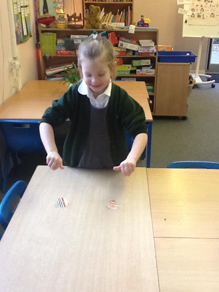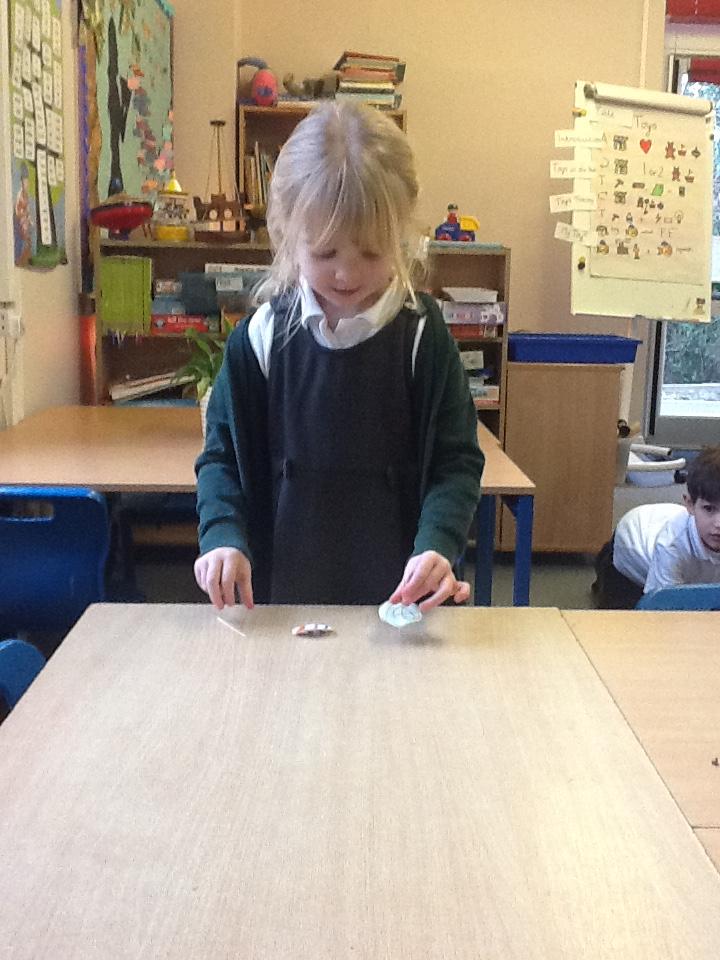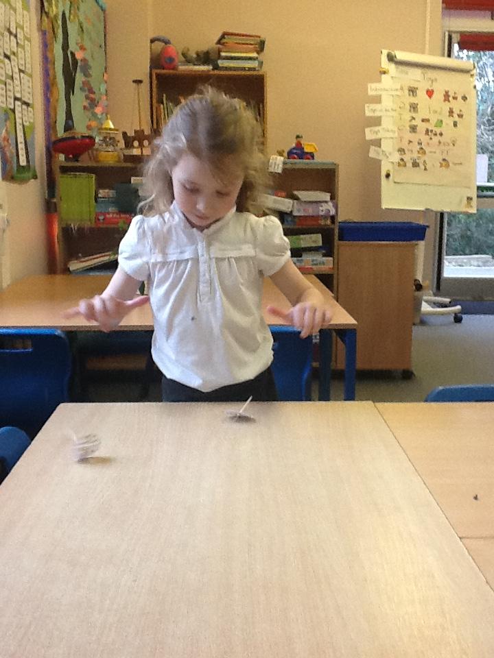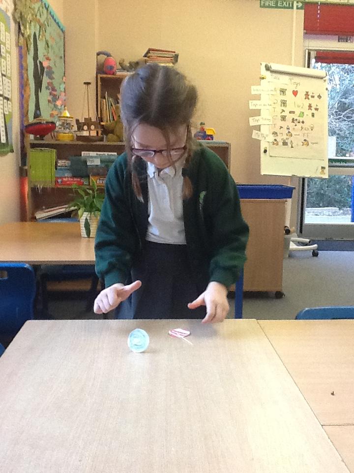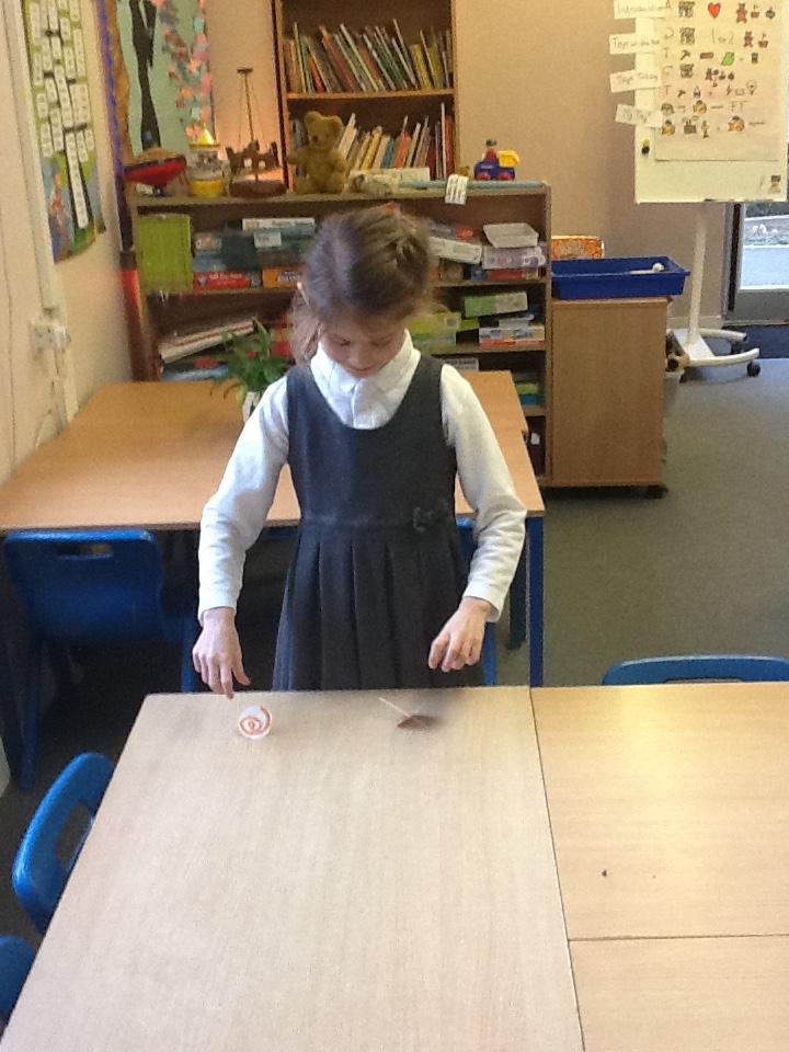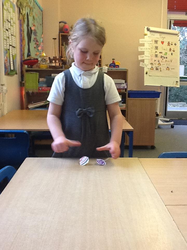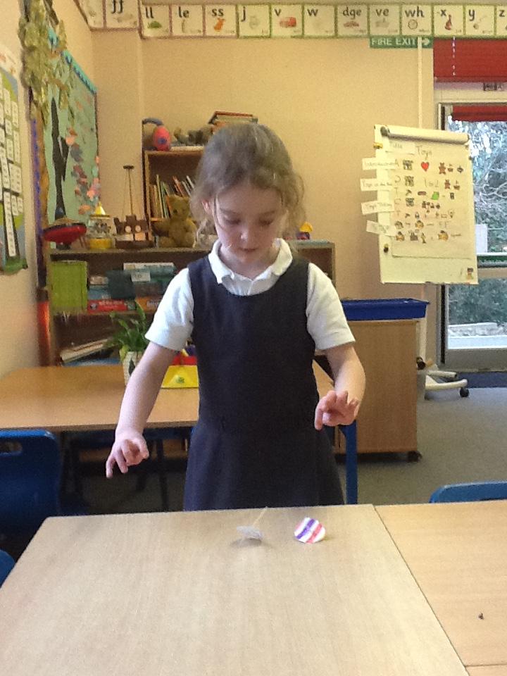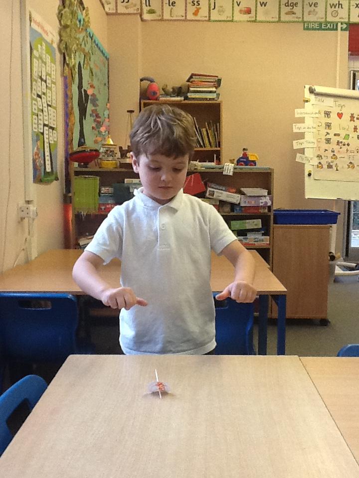 We looked at how toys have changed over time today, I was amazed at how well some of the children knew what the safety labels on toy packaging meant. We then had a go at making our own spinning tops, it was very hard to keep them spinning for a long time but we persevered anyway.