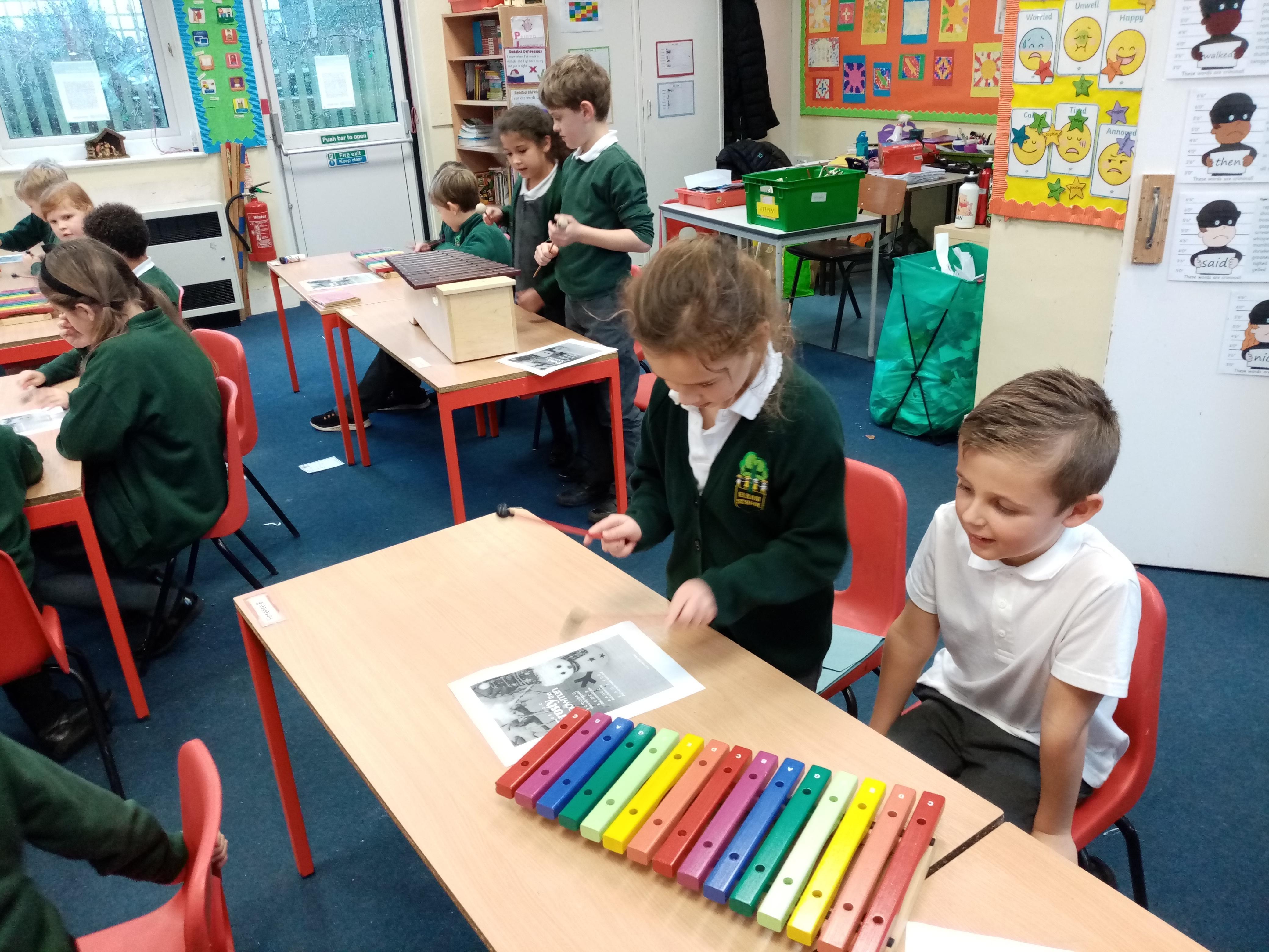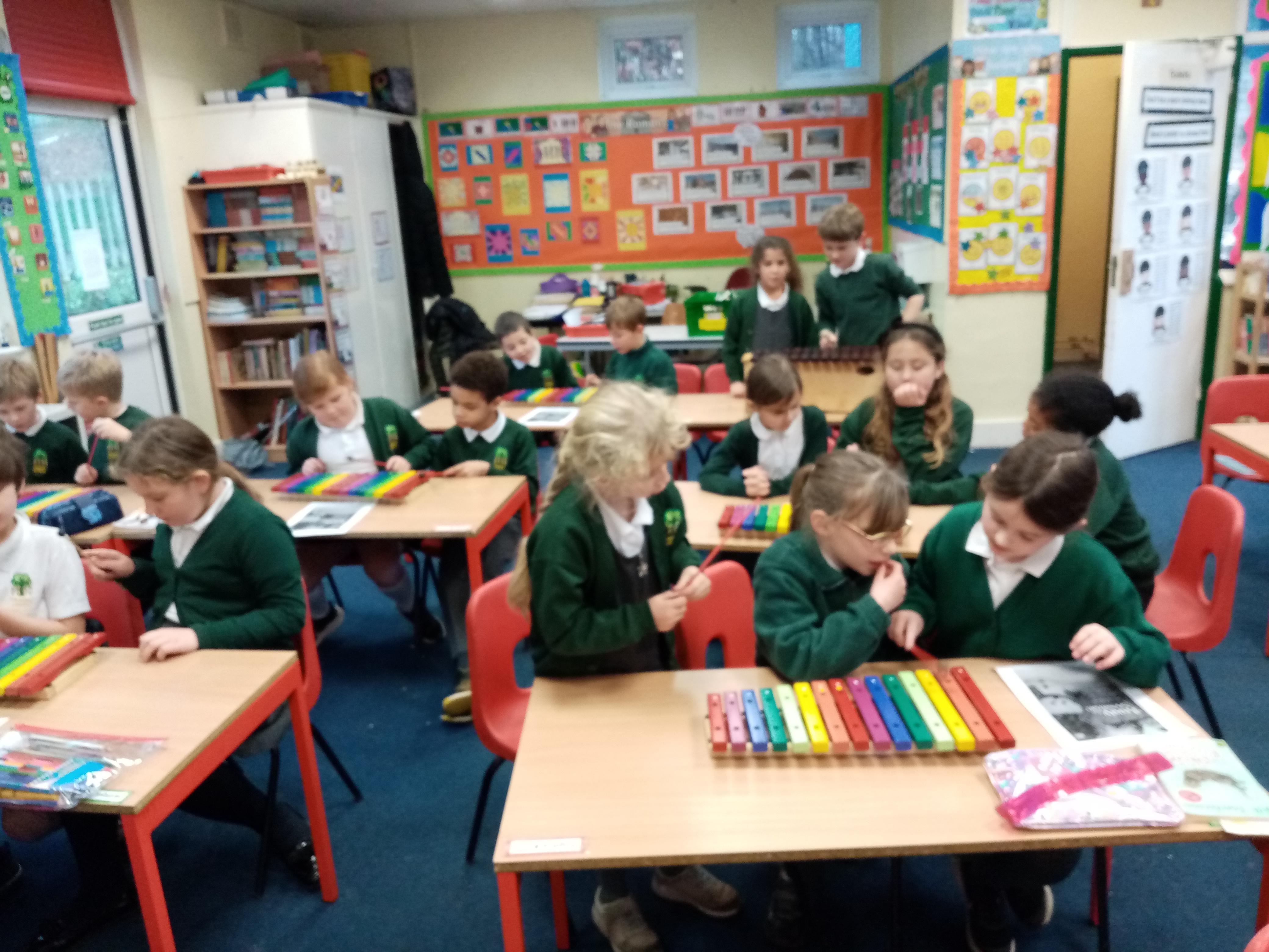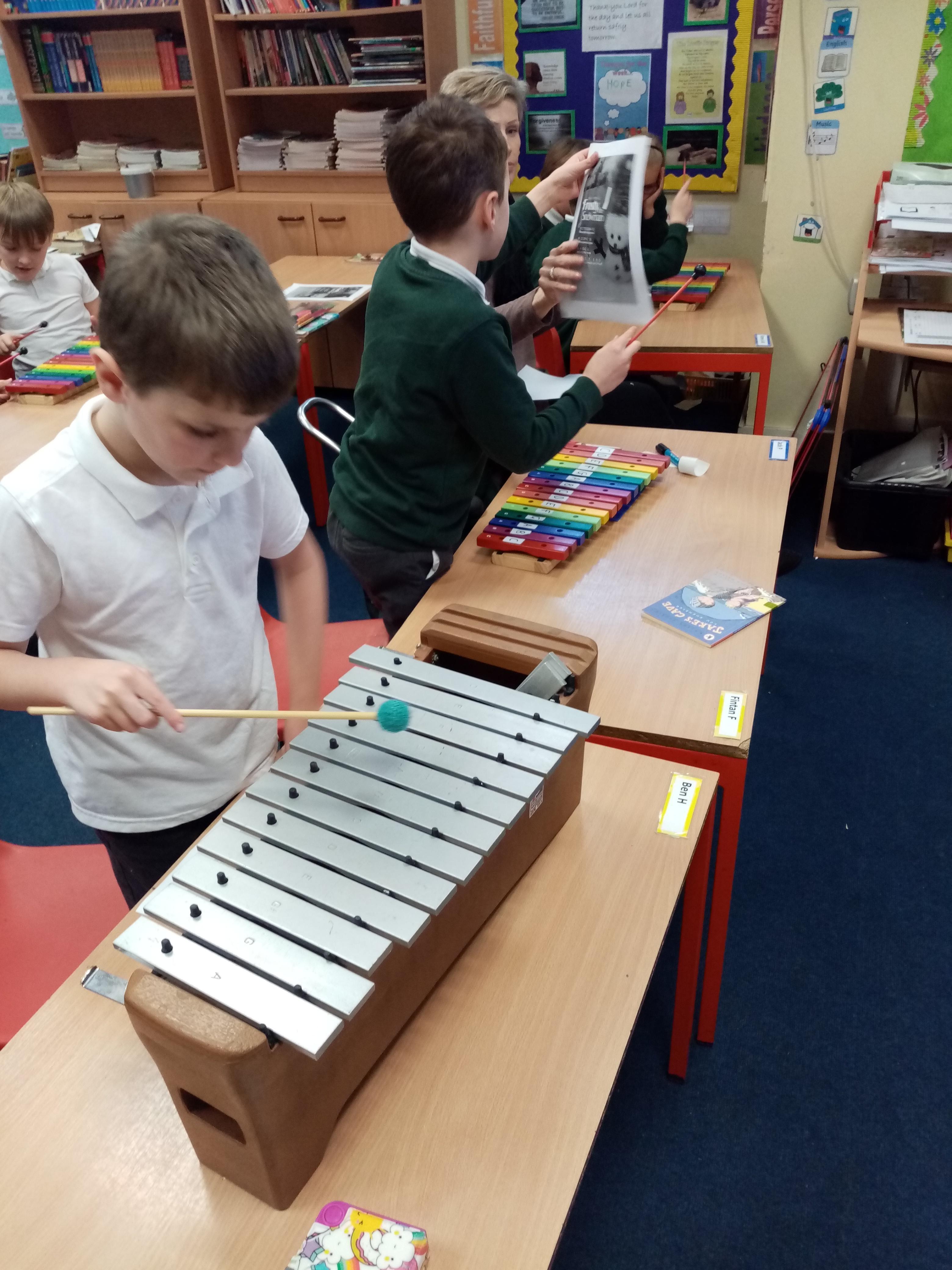 Our music Xylophone lesson playing Frosty the Snowman