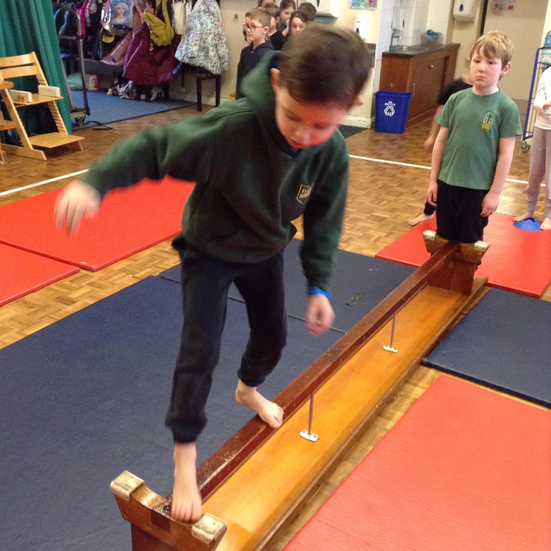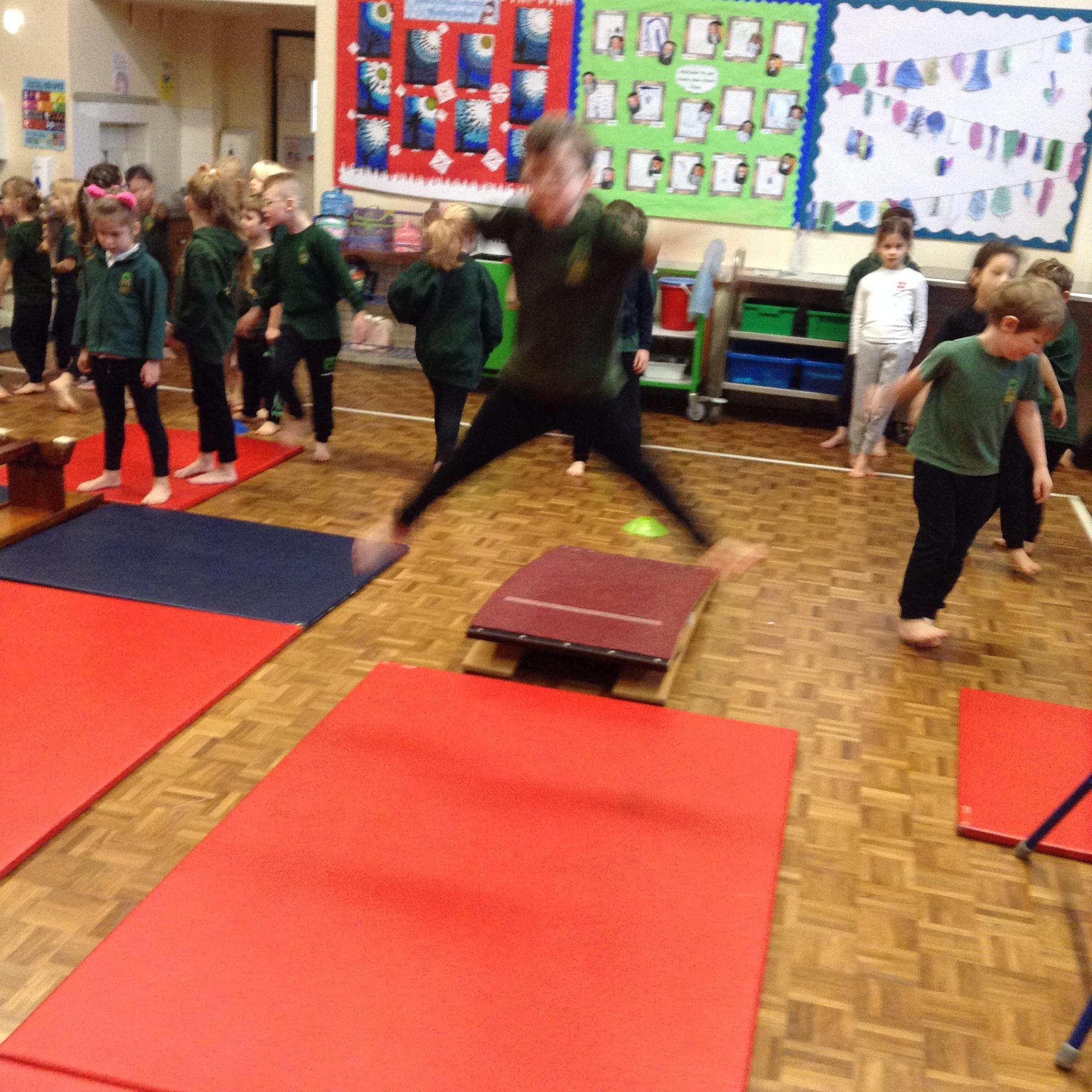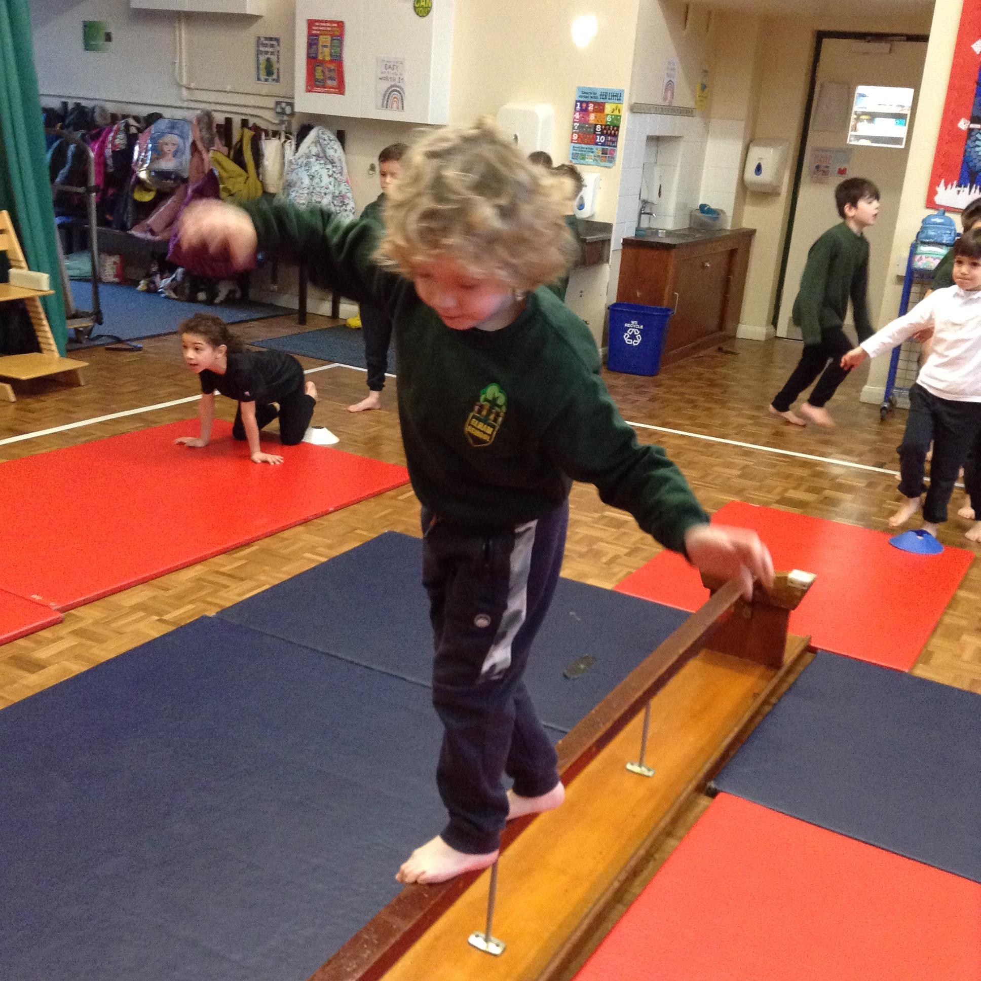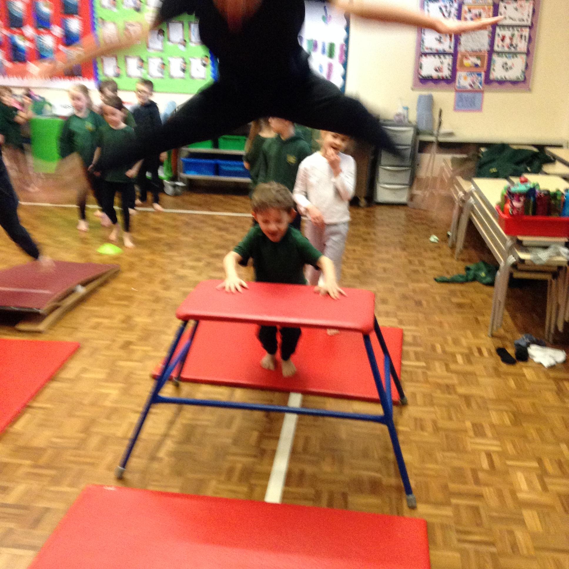 In PE the children practiced their vaulting, rolling, balancing and jumping.