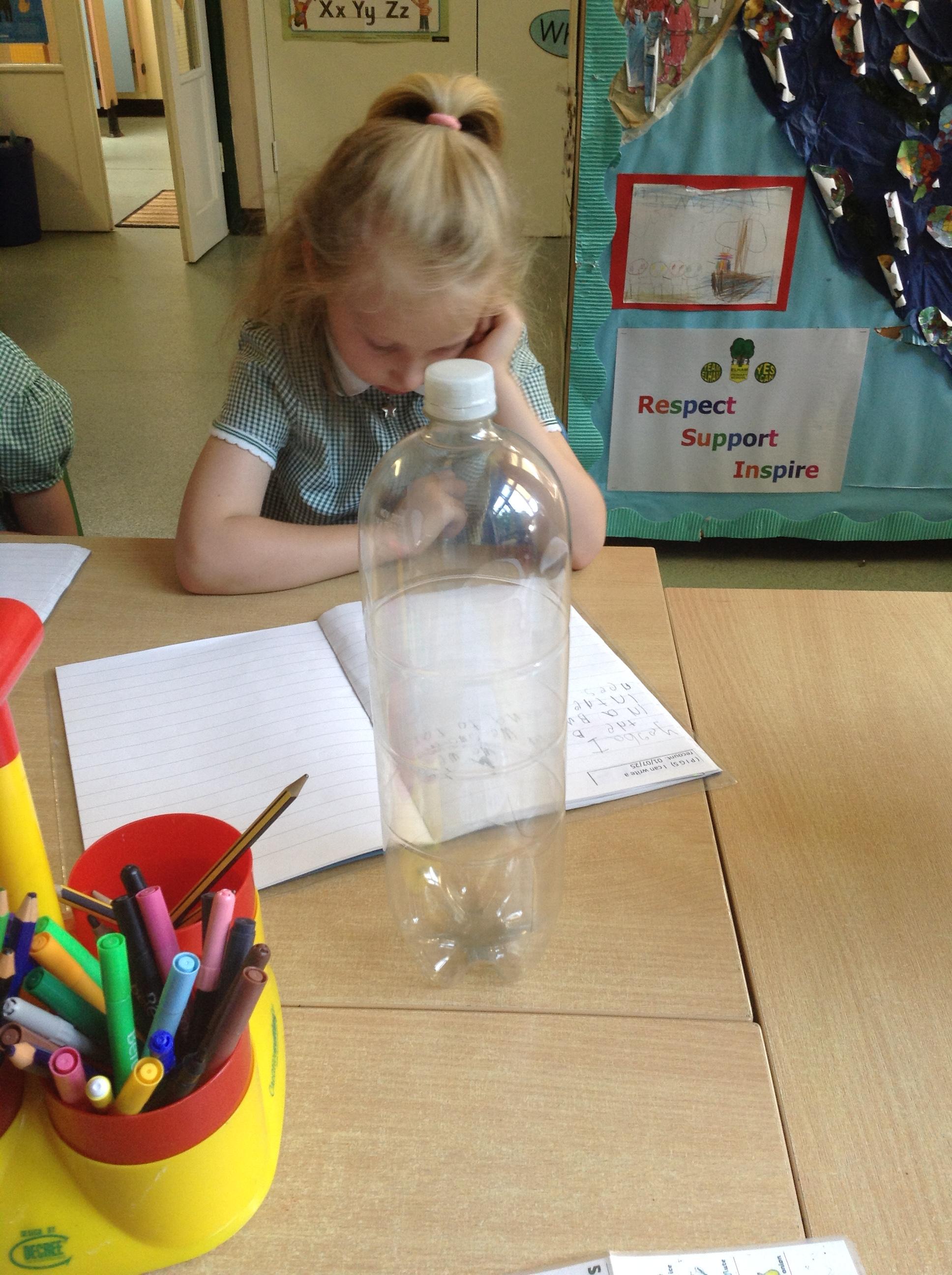 Calling all parents! If you have any spare bottles, the size of the one infront of Amelia, could you please send them in? The children have asked to make weather vanes and we need one each! Many thanks.