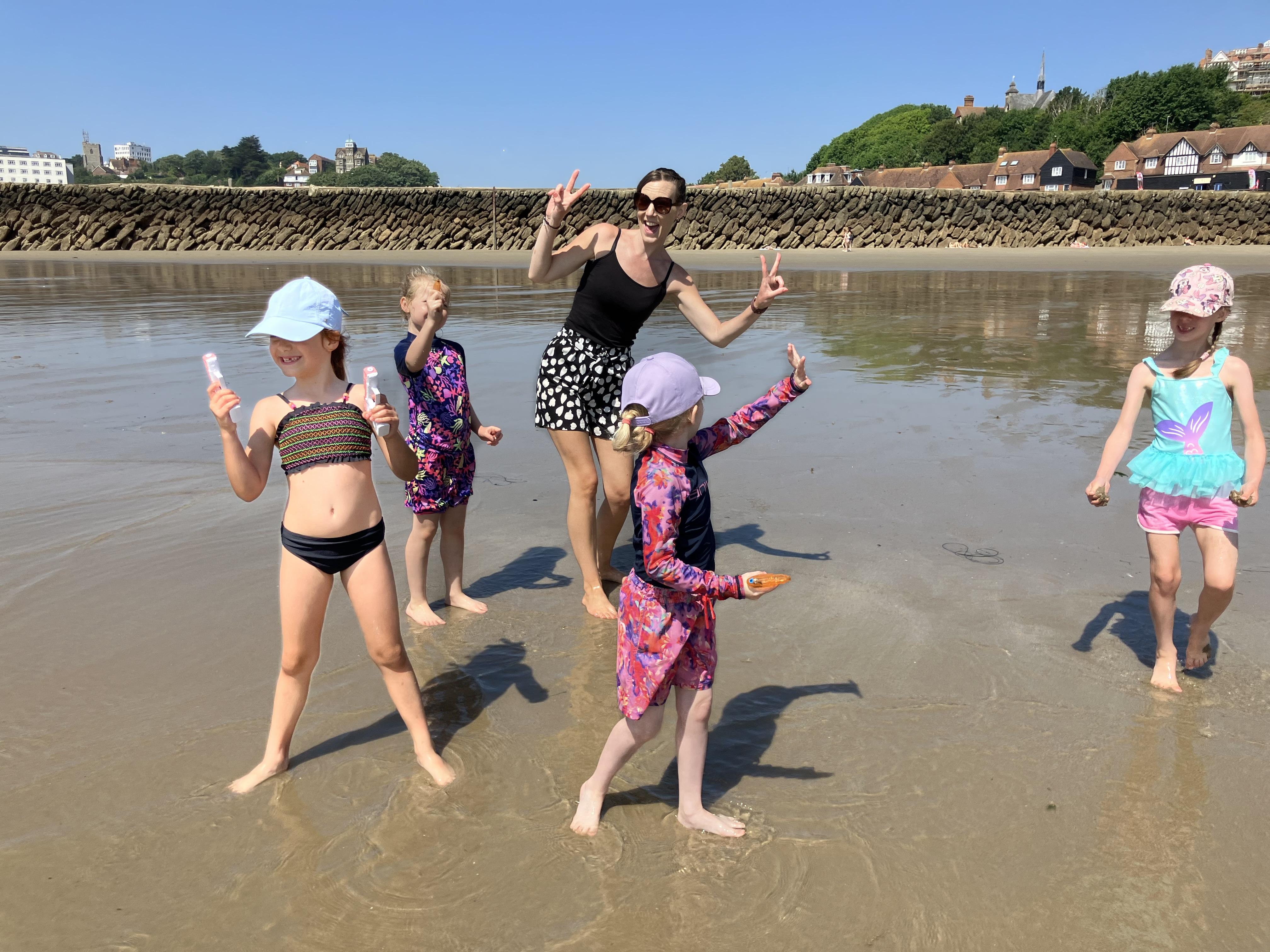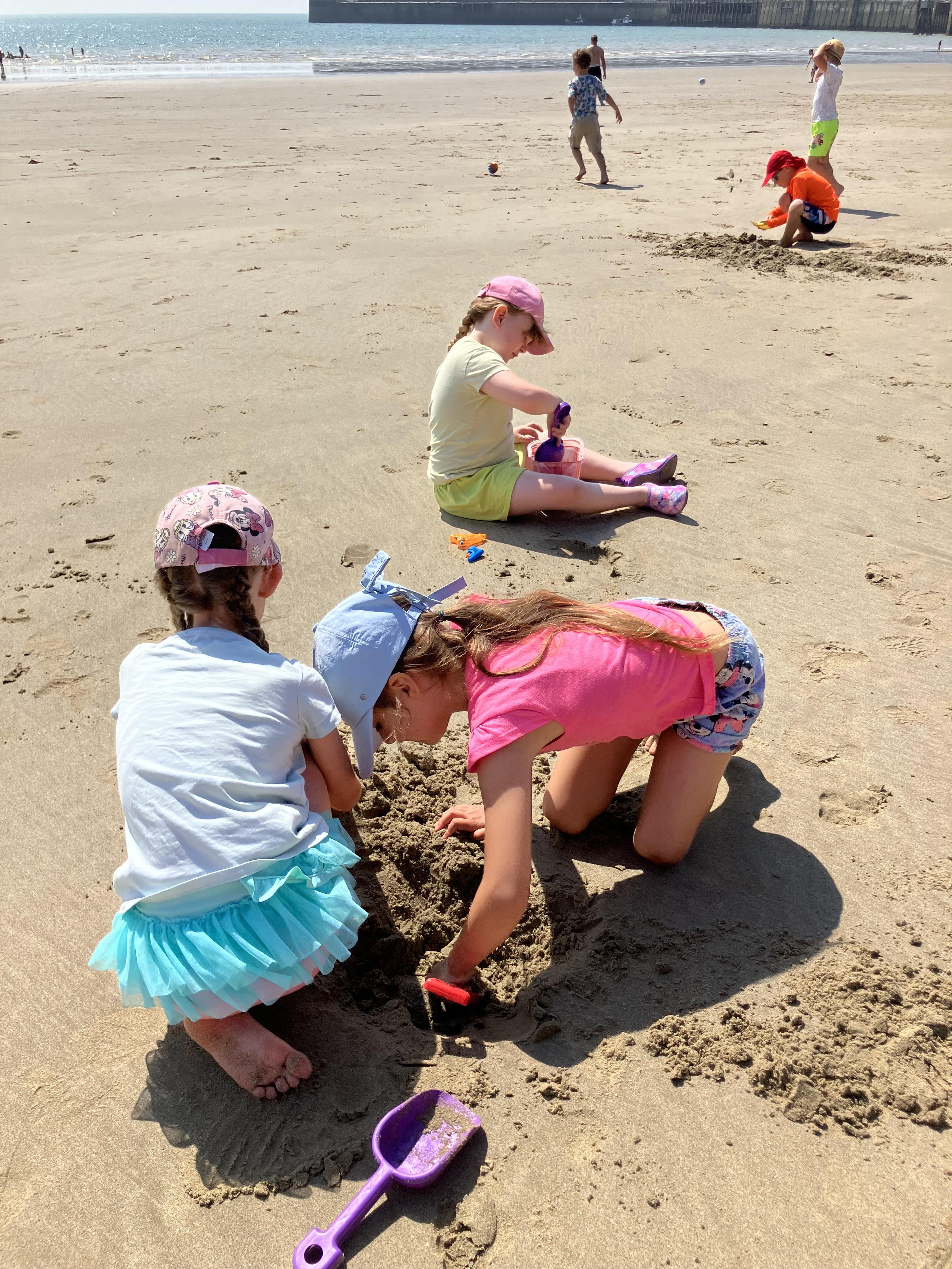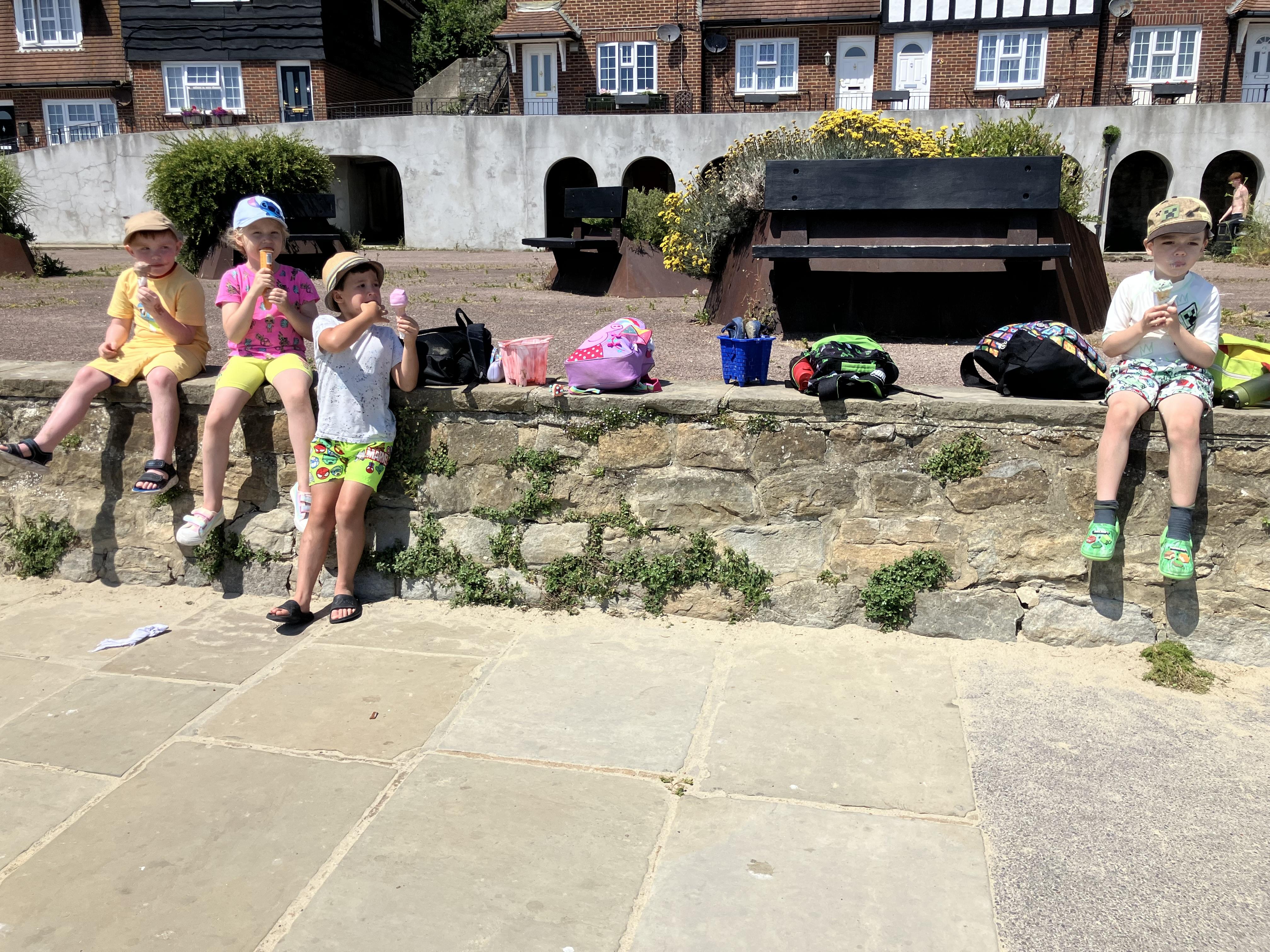 We went to the beach yesterday and we had jelly babies from Miss Knight and Ms Shepherd and we went on the top of the bus, even at the end of the trip. We had ice cream and we went to paddle in the sea and we had fish and chips and sausages. We found lots of crabs. We sunbathed. We walked to Sunny Sands and we did a gynormous sandcastle.