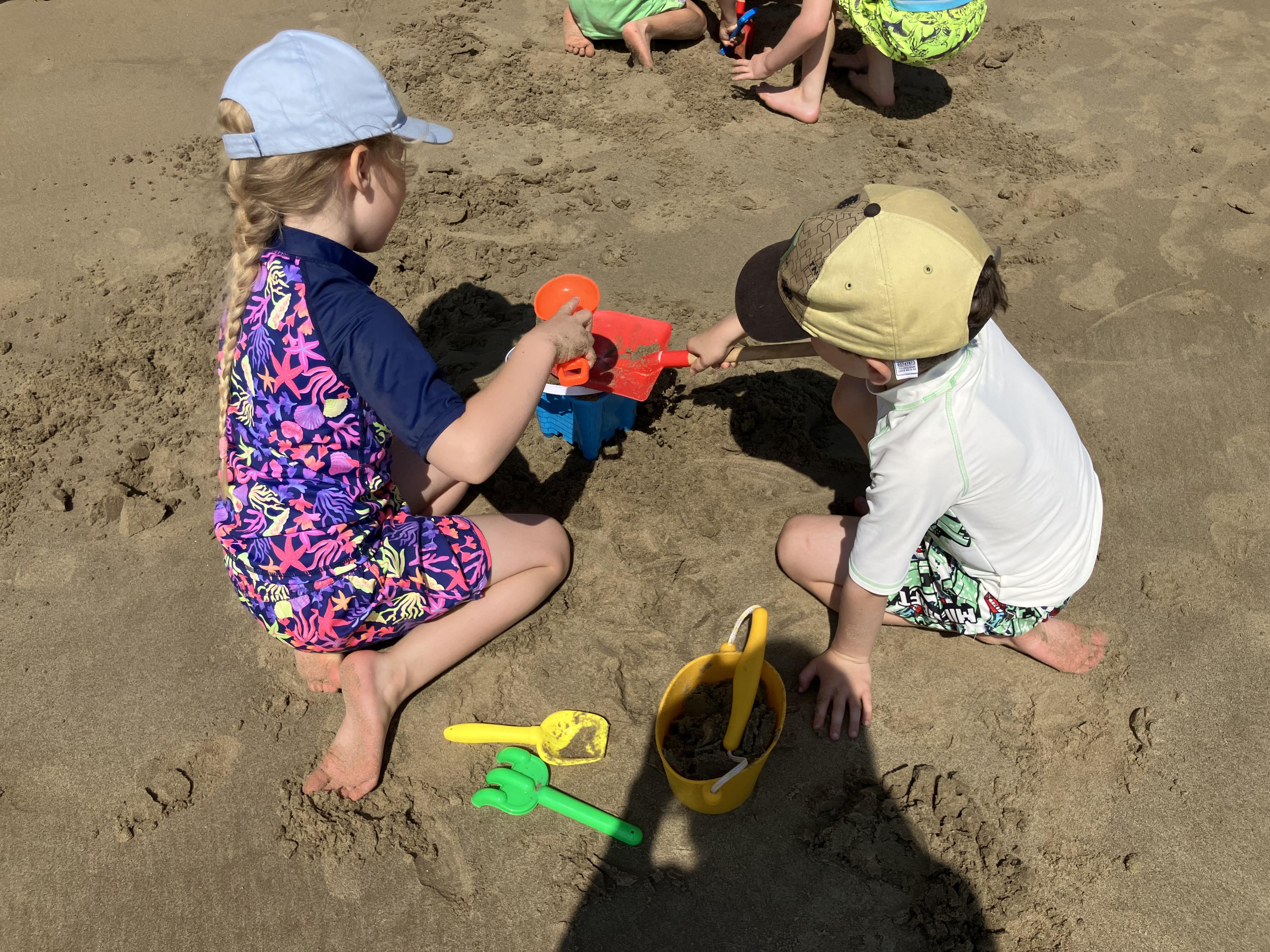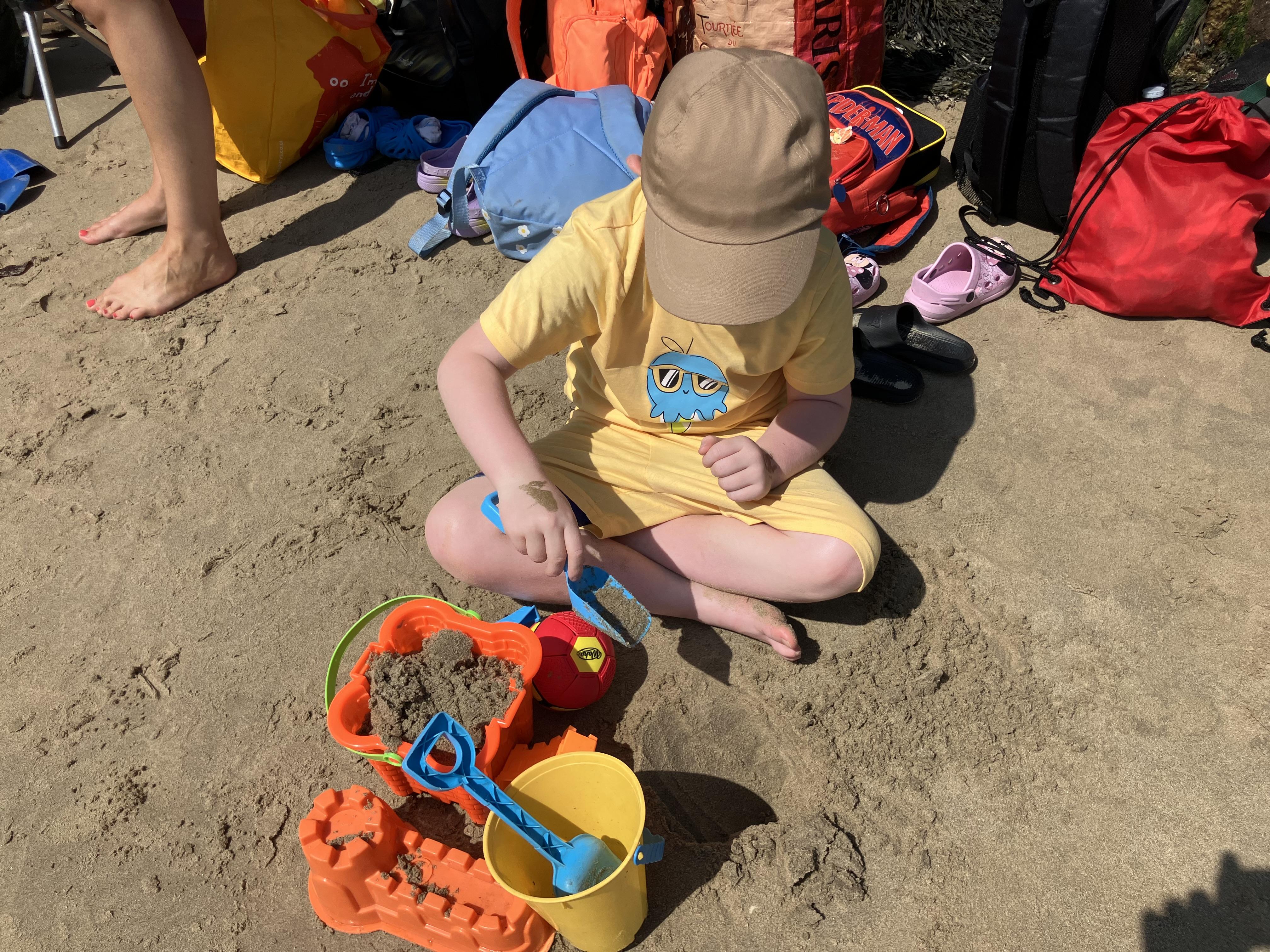 Yesterday we went to the beach. We swam in the sea then we built a sandcastle. Then we had our sausage and chips. Then I built a sandcastle for William. Then we went back on the bus. Then Aleksandra gave marshmallows. Then we went back to school. My favourite bit was when I built the sandcastle for William.