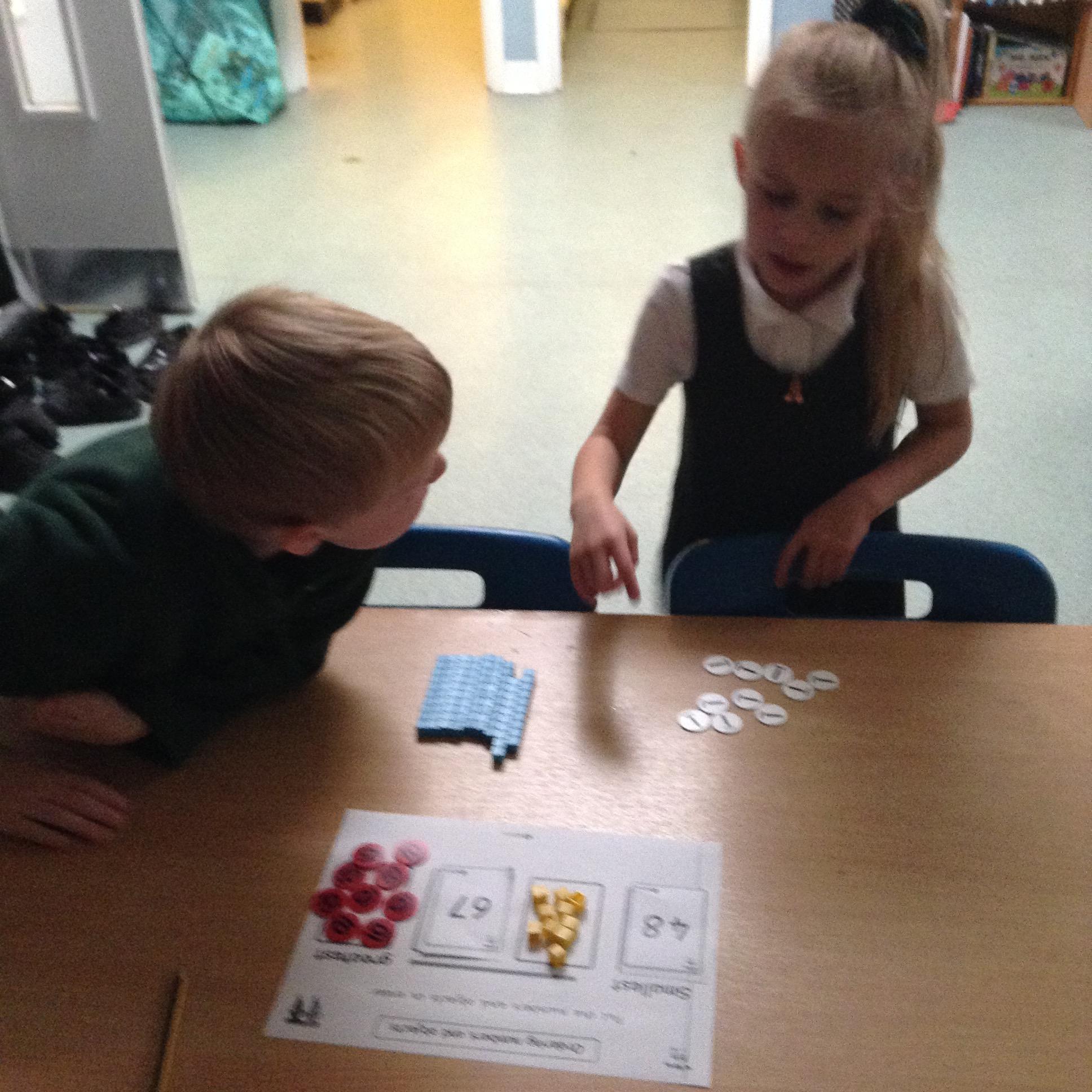 The children have been ordering numbers and objects within 100.