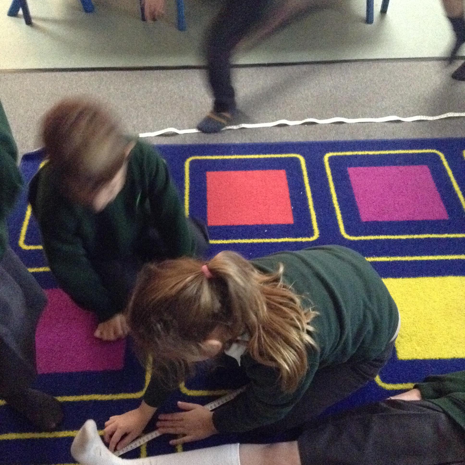 The children used simple measuring equipment to answer the following question. Are children the same height in every year group in the school?