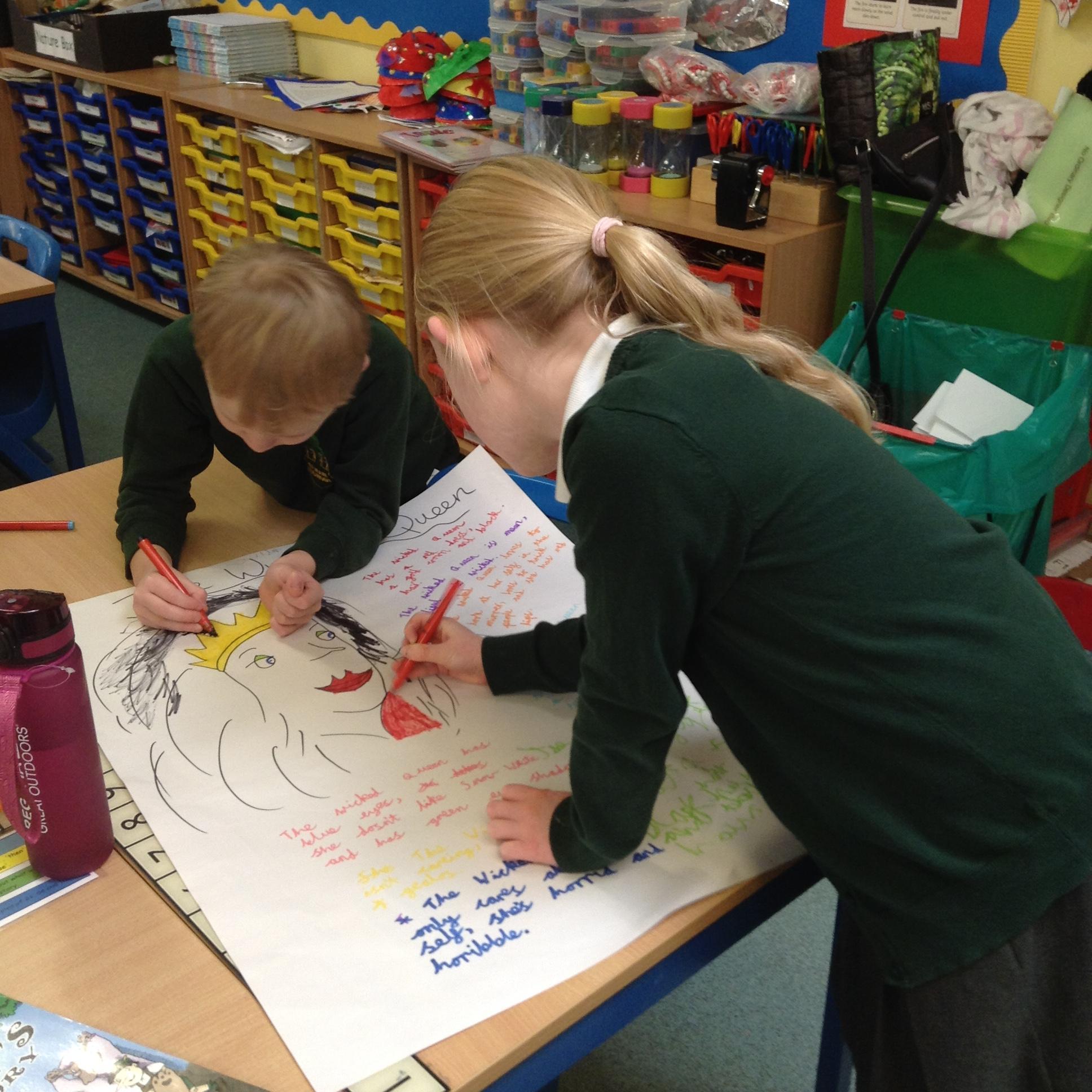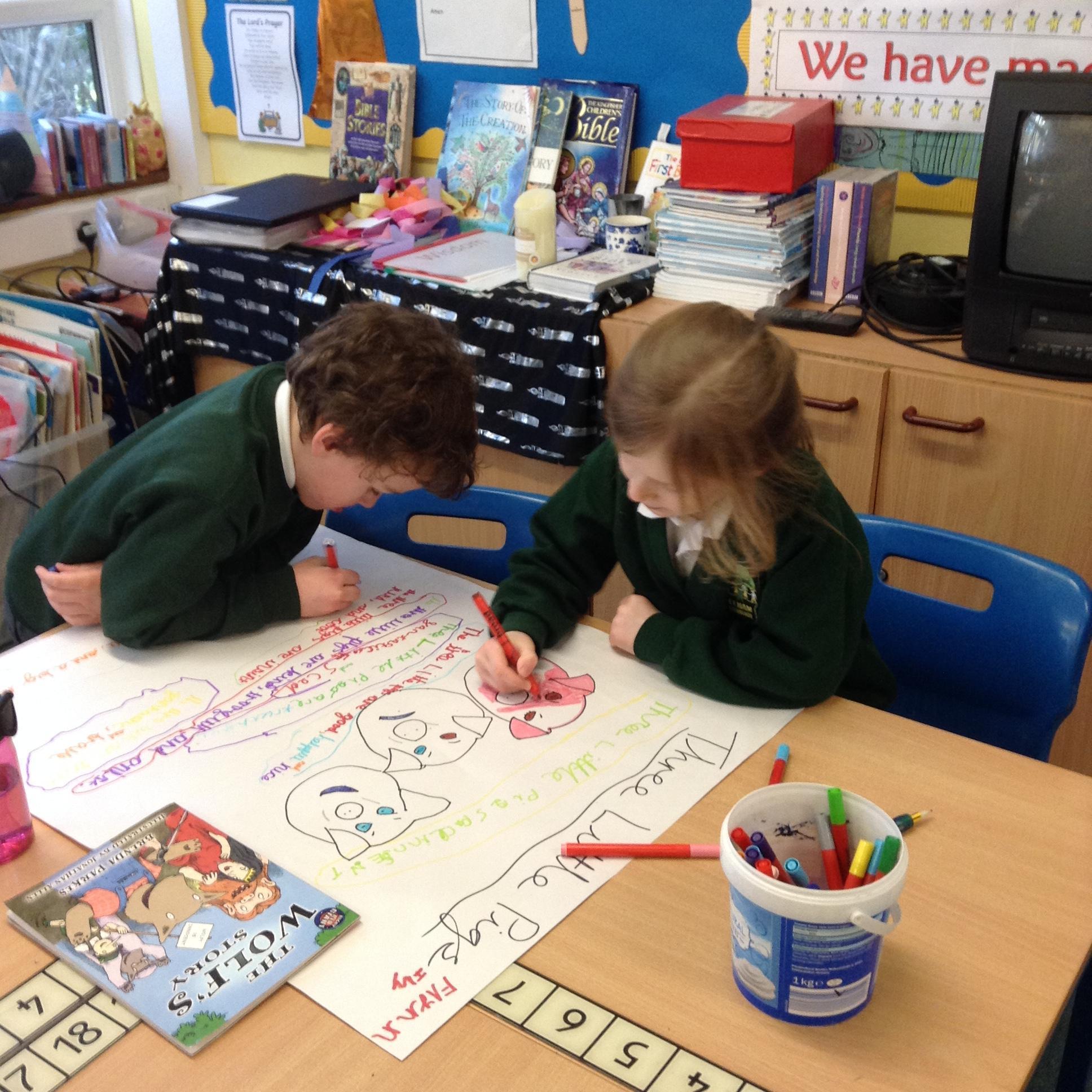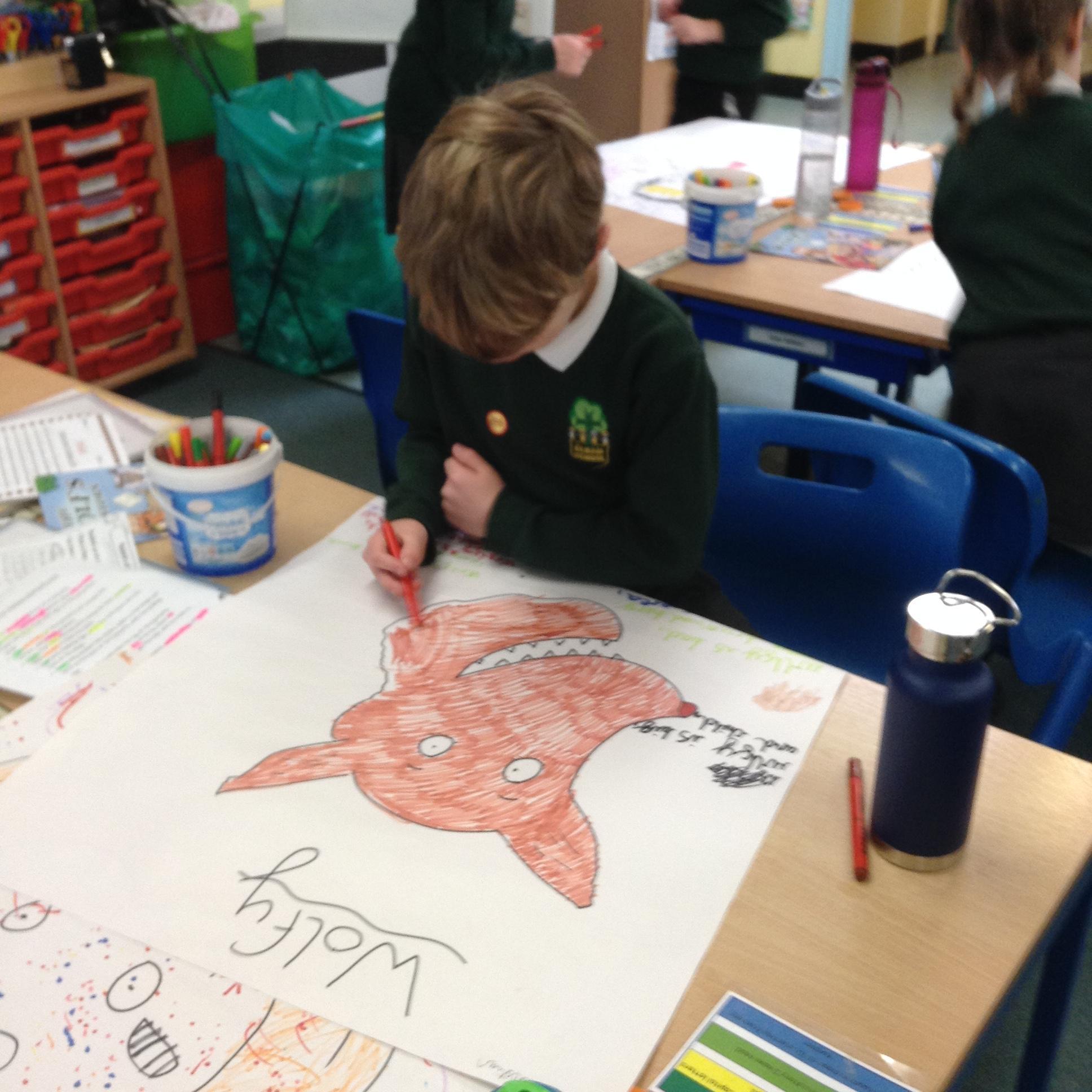 'I learned to write sentences using adjectives to describe the characters in 'The Wolf's Story.'