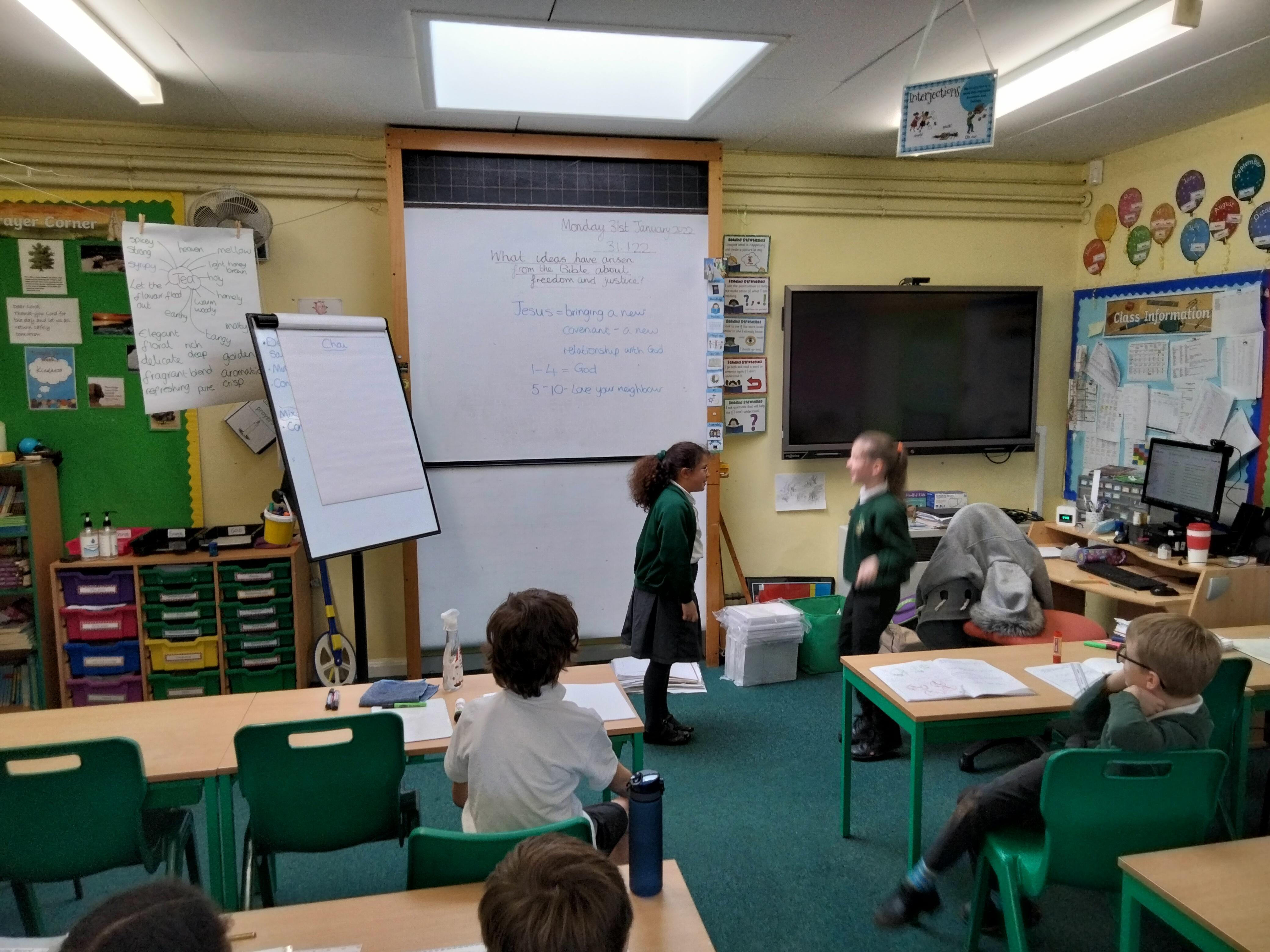 This week in maths we finished multiplying fractions and then moved on to rounding and negative numbers. In English we wrote a newspaper report, reporting on the events of the Royal Tea Taster visiting the tea plantation and tasting the amazing Cloud tea. We role played this first, carrying out interviews of the different characters. In RE we learnt about Jesus' 2 commandments and explored the Toybox charity website; a Christian charity that helps bring freedom and justice to street children around the world. In art we discovered the beauty and origins of Rangoli patterns. We designed our own, and then created some on the playground, using chalks.
