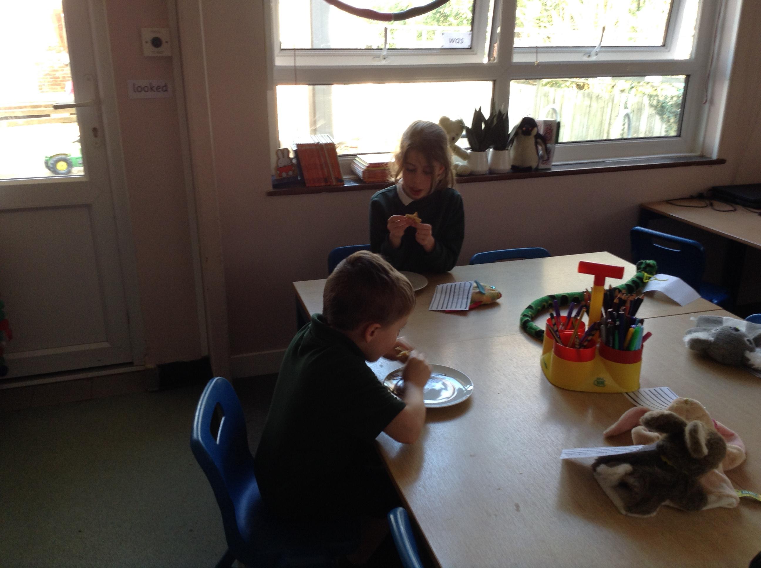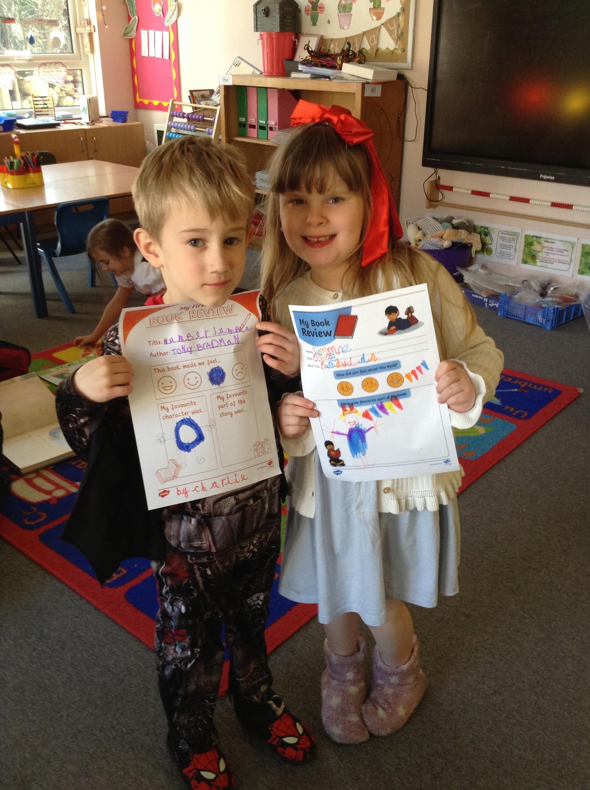 We've had a fantastic book day. We wrote our first book review and made bookmarks. A big thank you to Aleksandra's mum who made us all a delicious cookie.