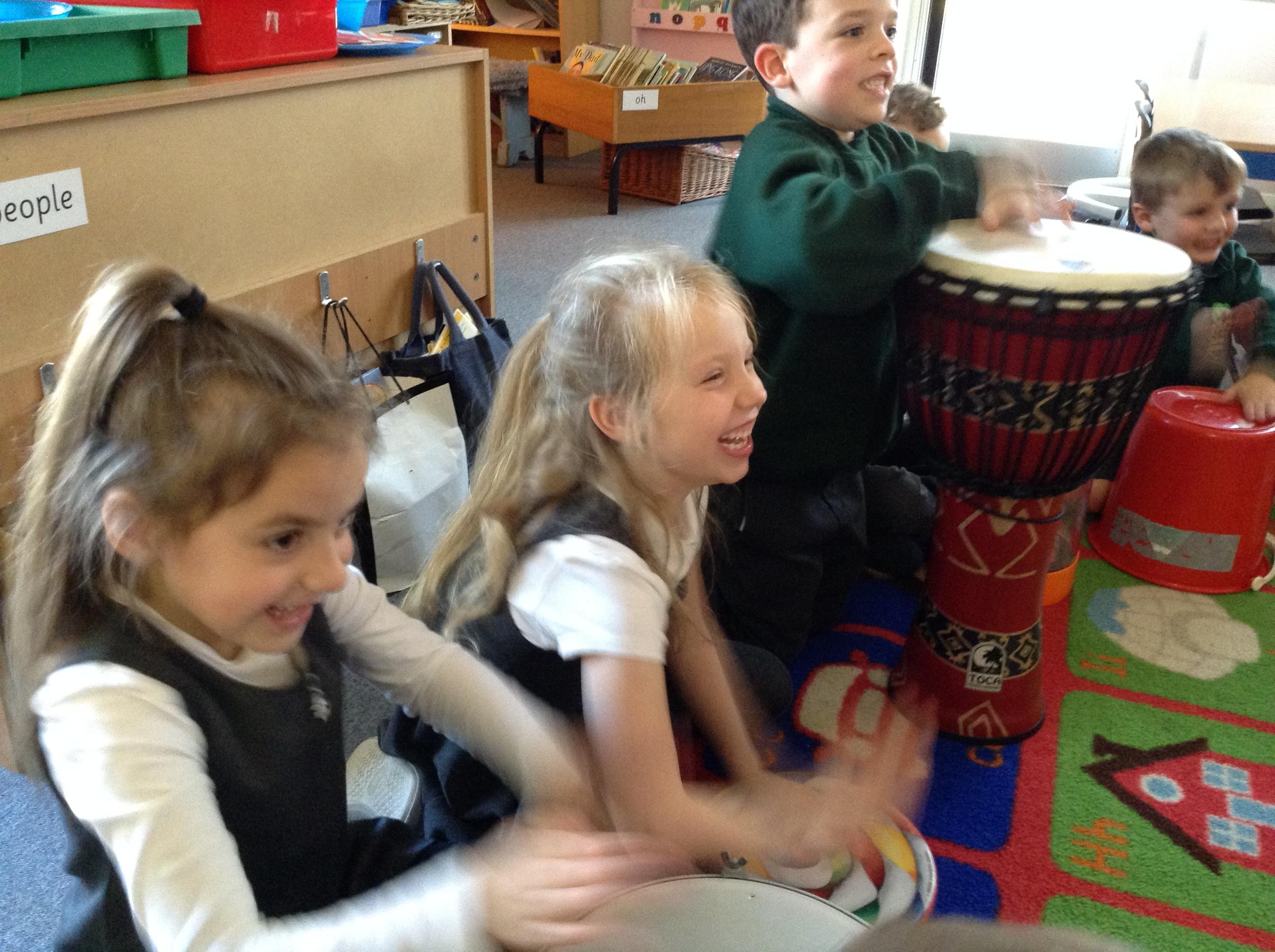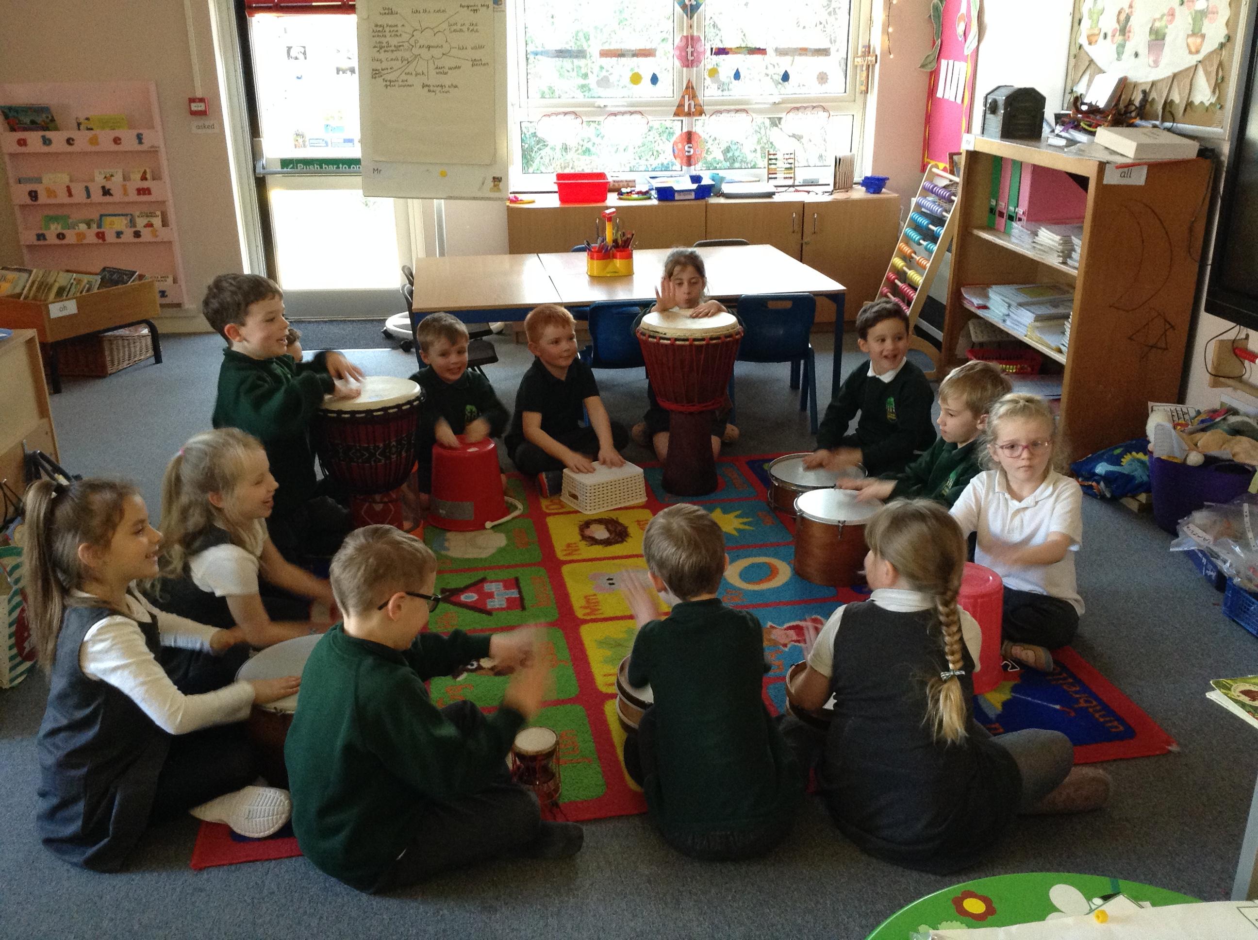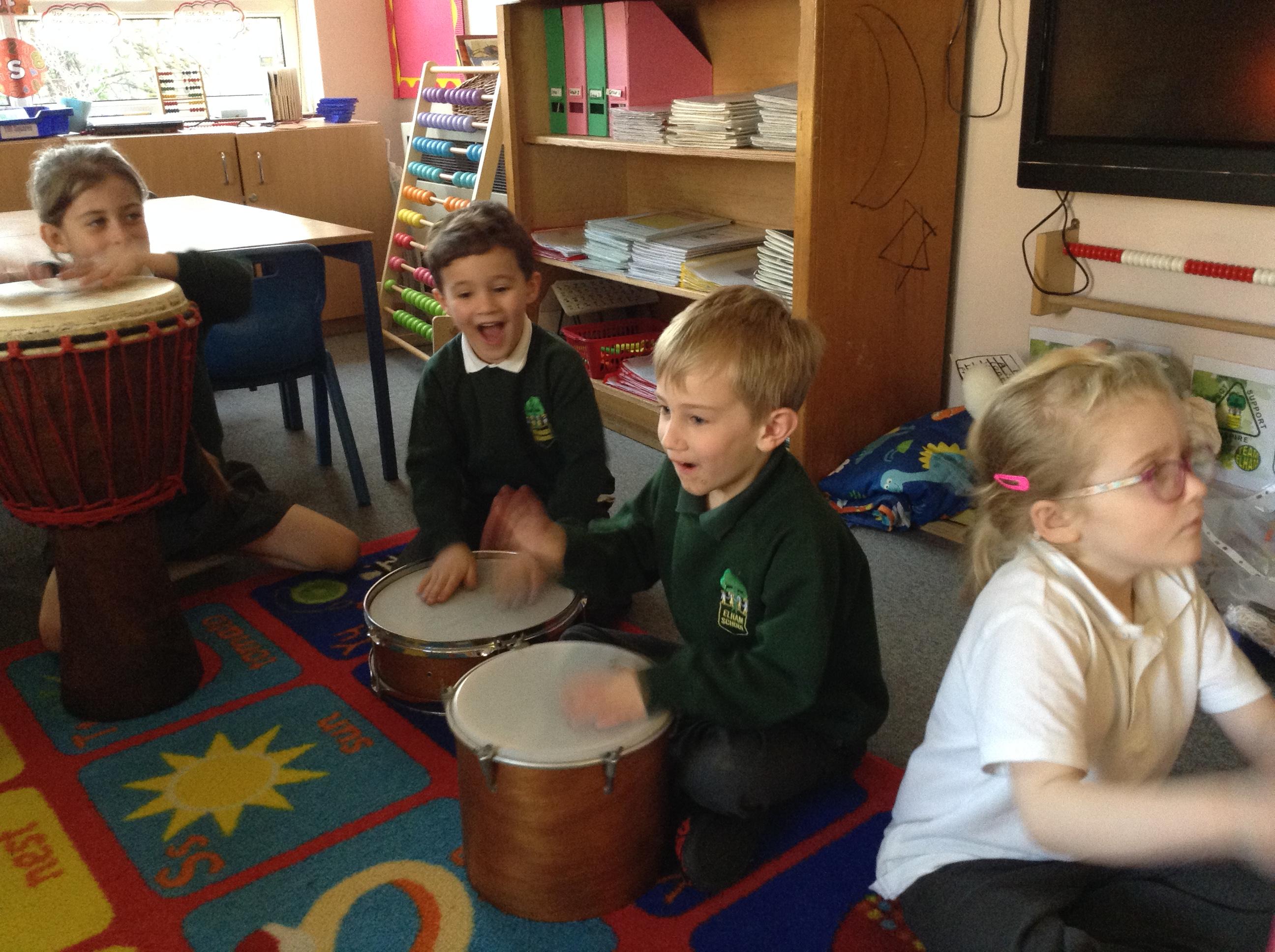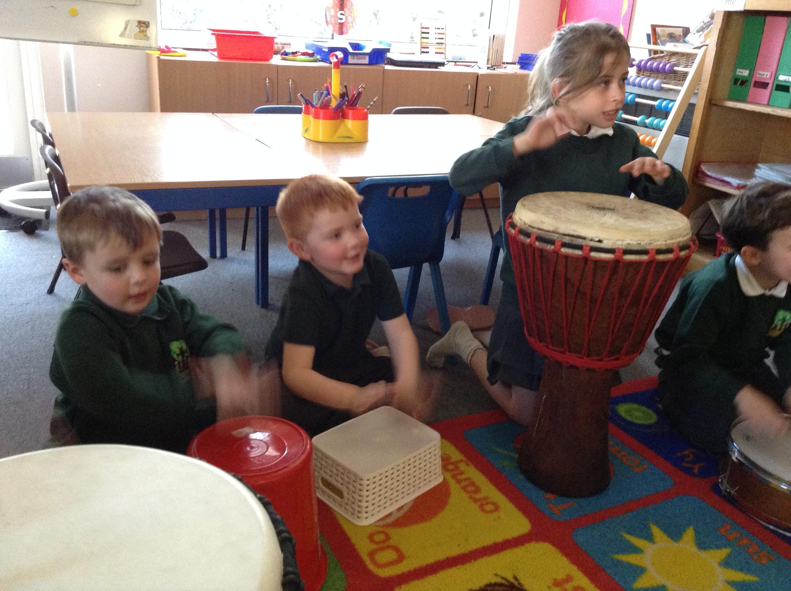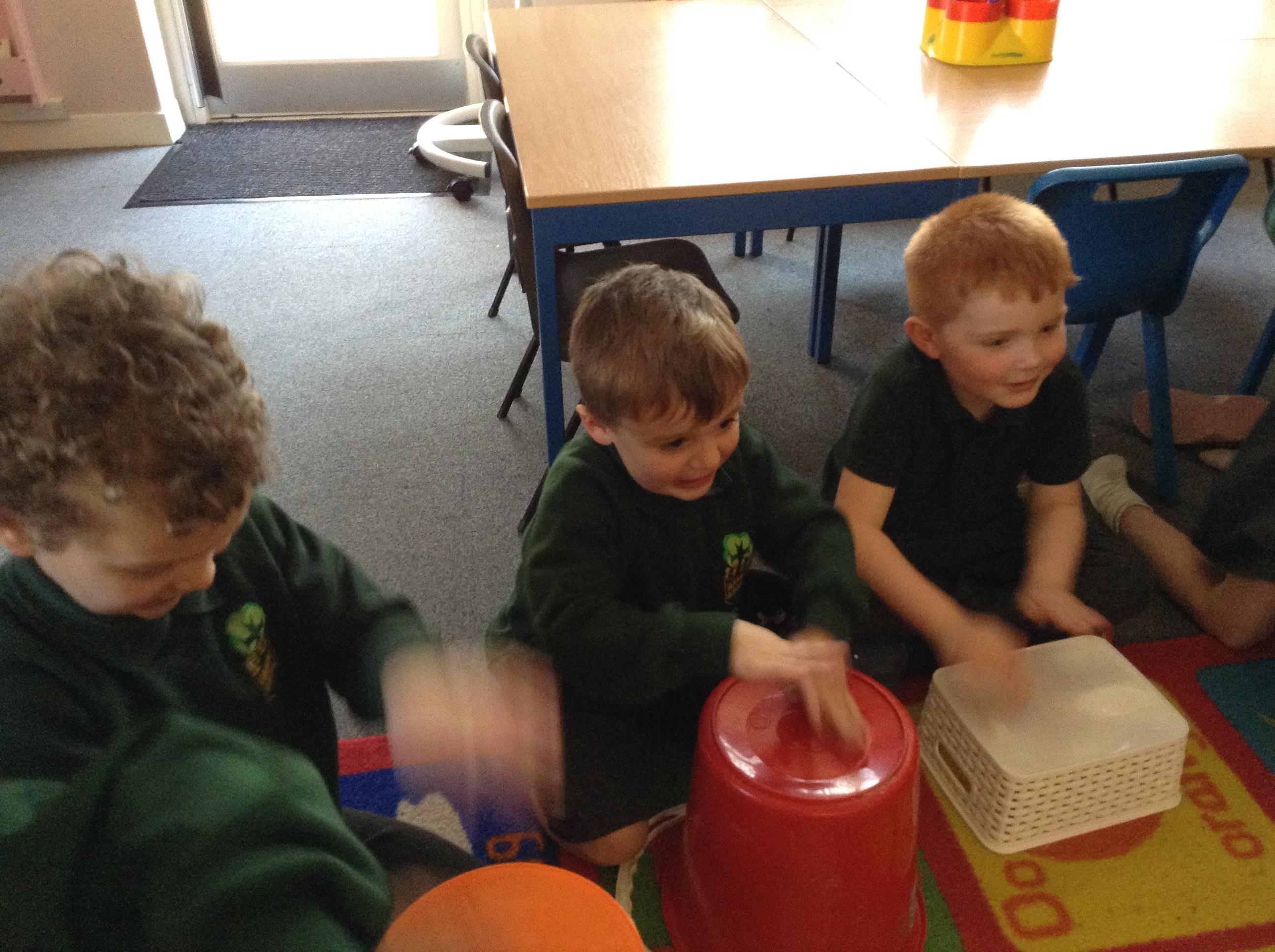 What fun we had with the drums!! The children experimented by making different sounds with a single instrument today. They then had to listen to the story of the Three Little Pigs and choose what sound and how loud this should be throughout different parts and for different characters. I think they all enjoyed being the Big Bad Wolf the best, I wonder why .....