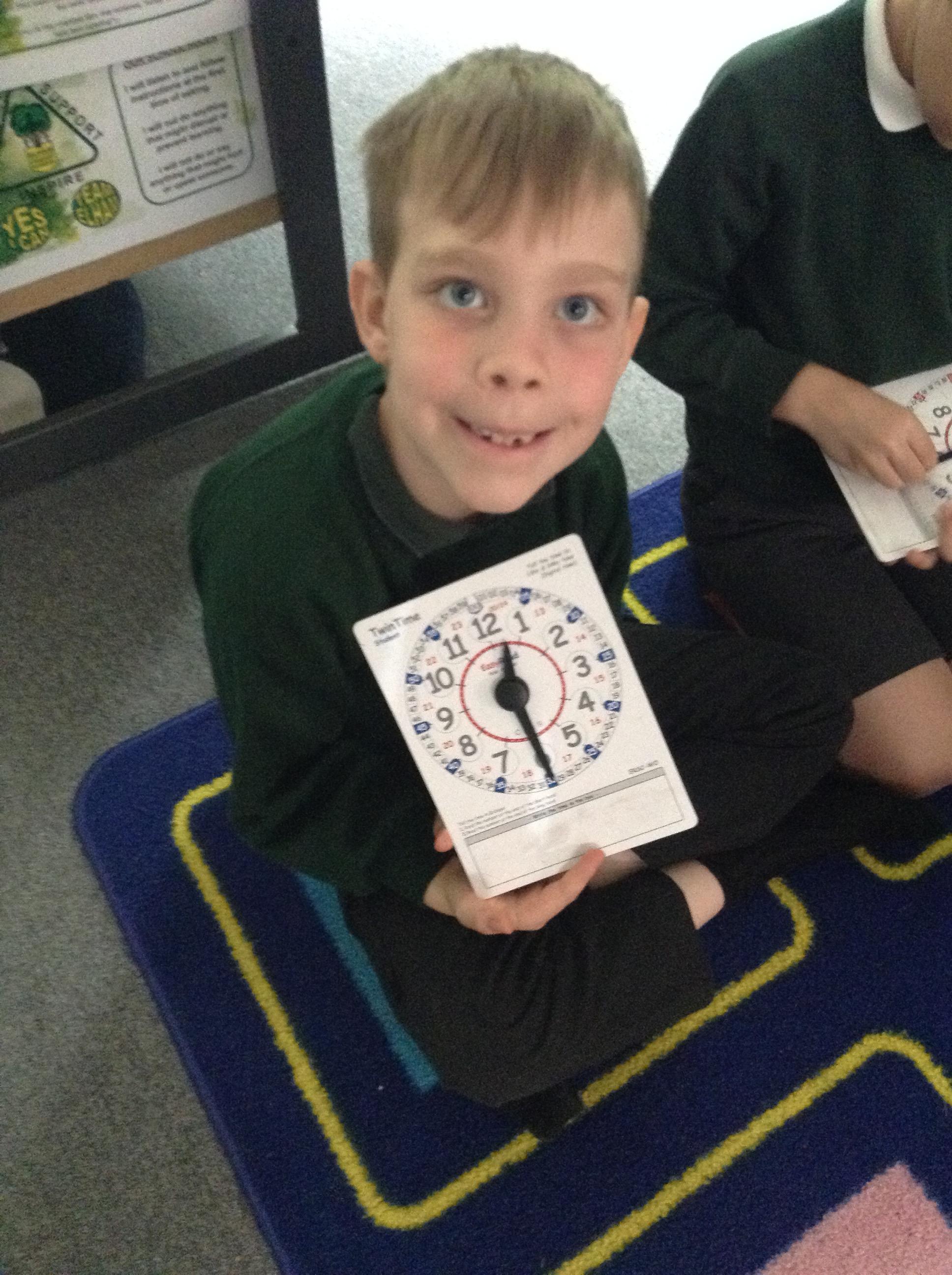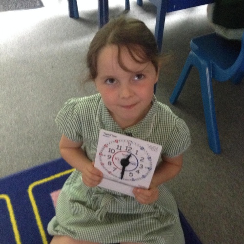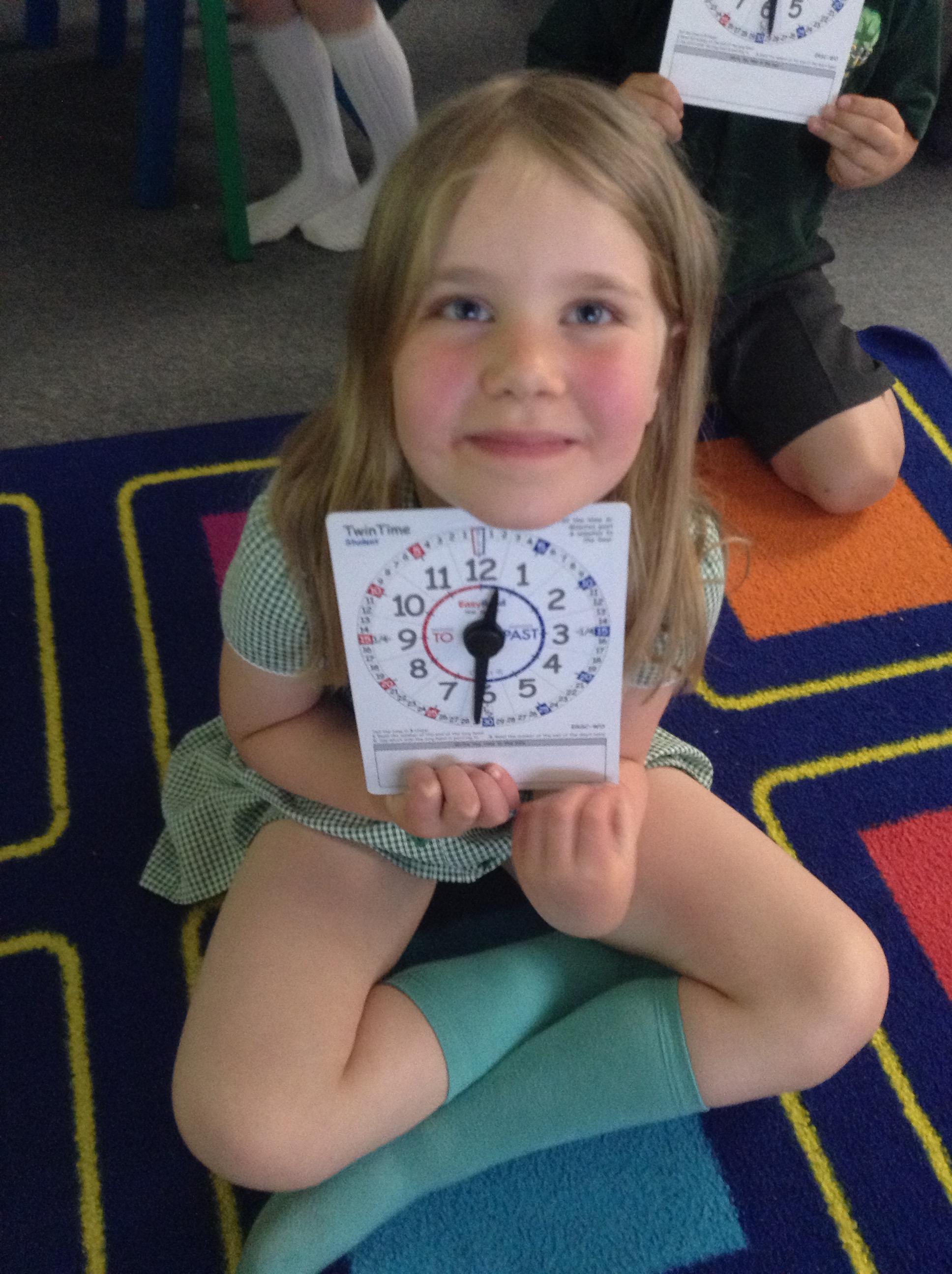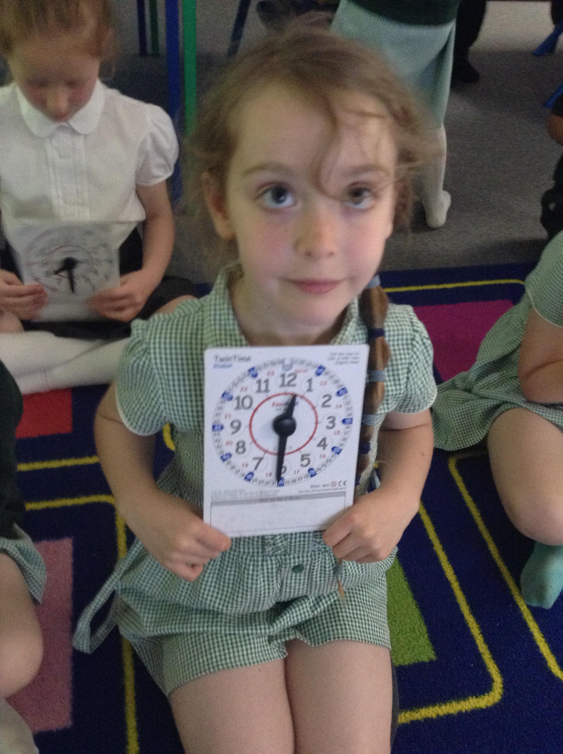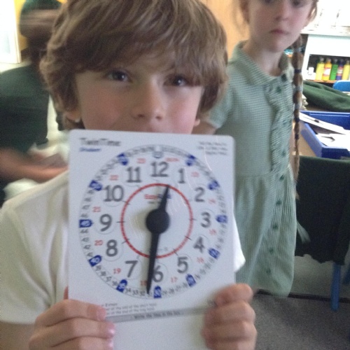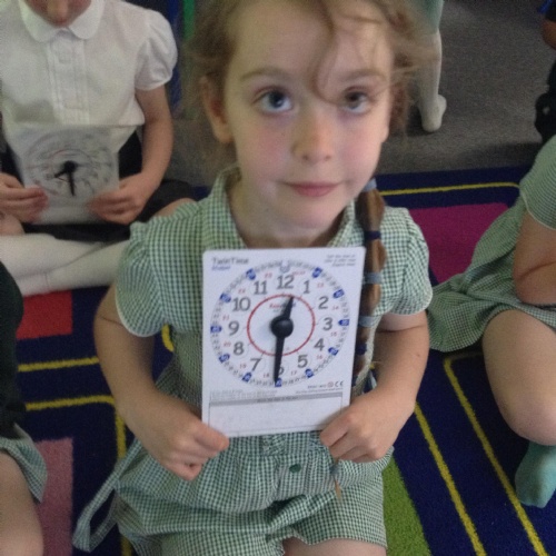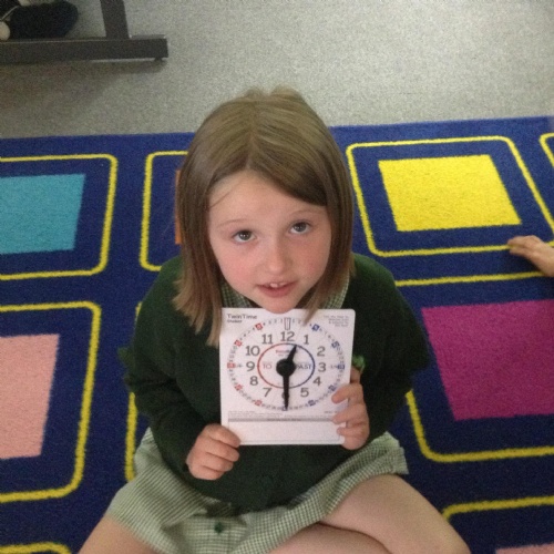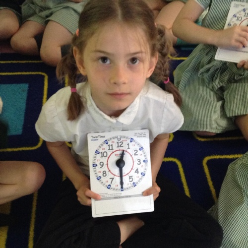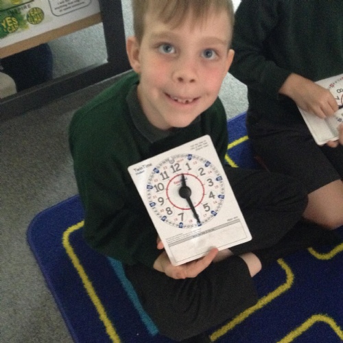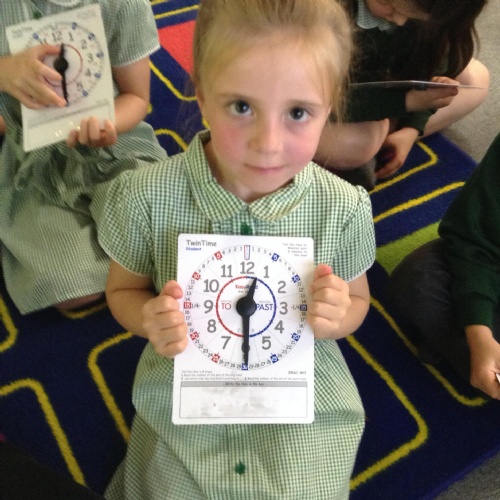 We are learning about time in Maths. Today we focussed on o'clock and half past.