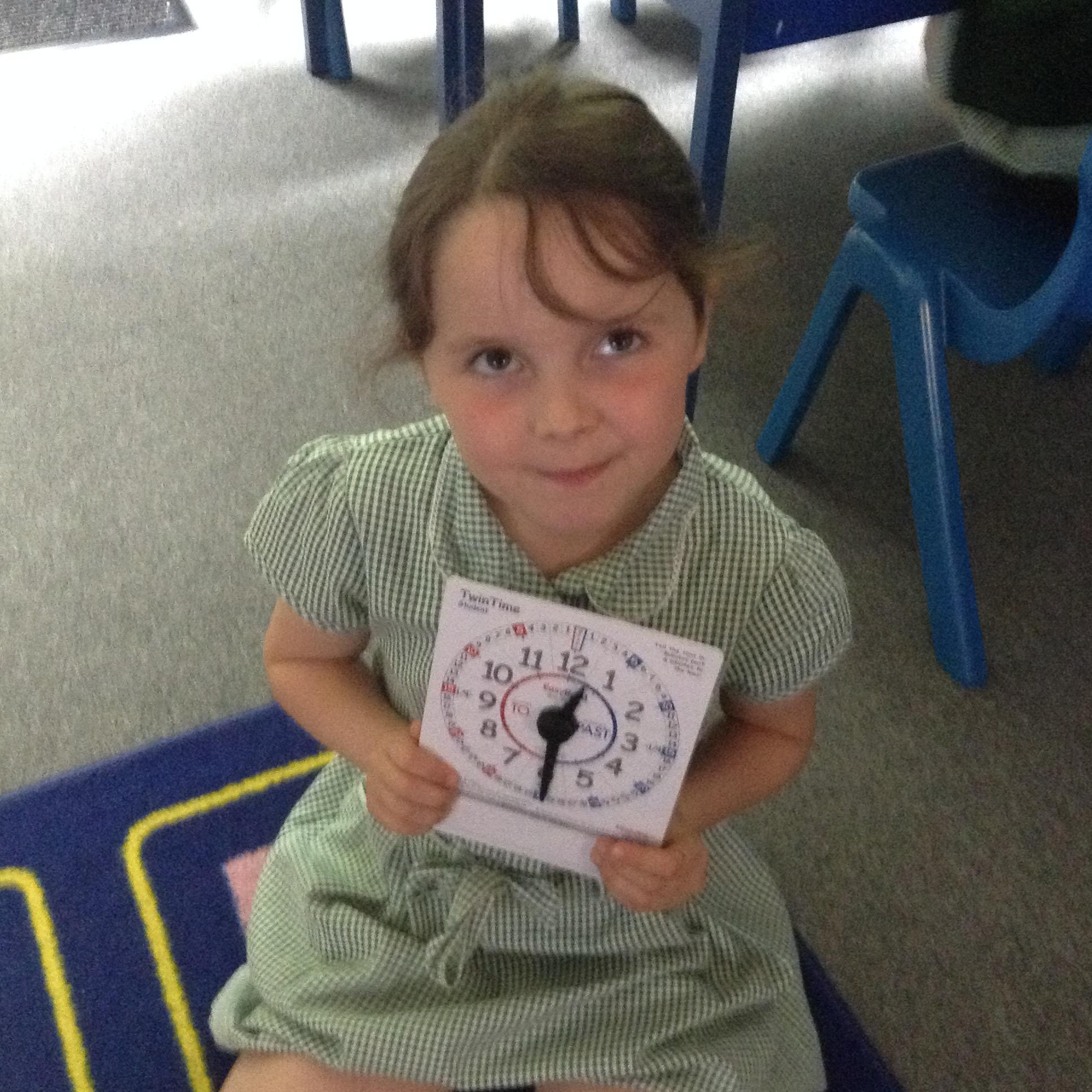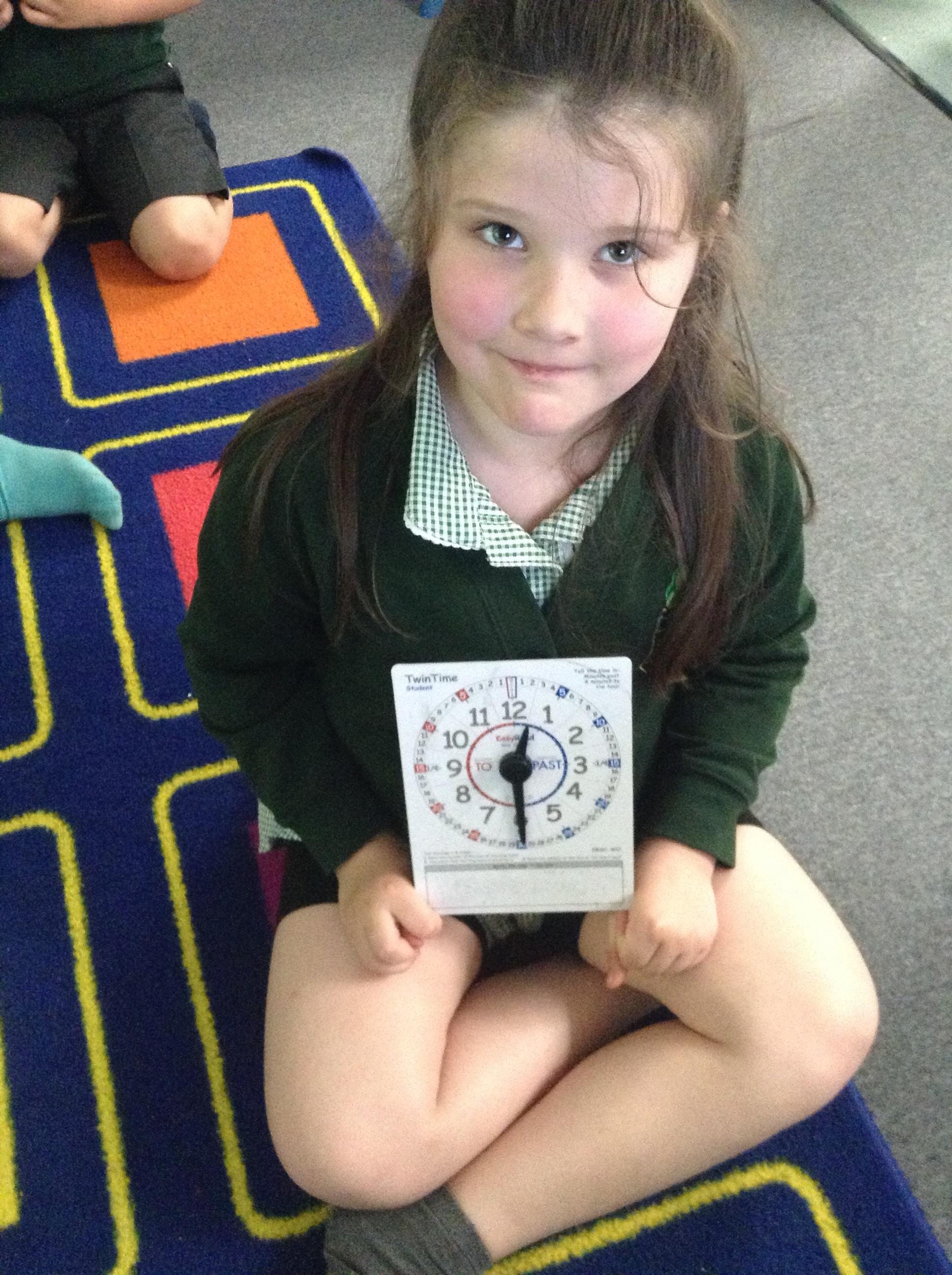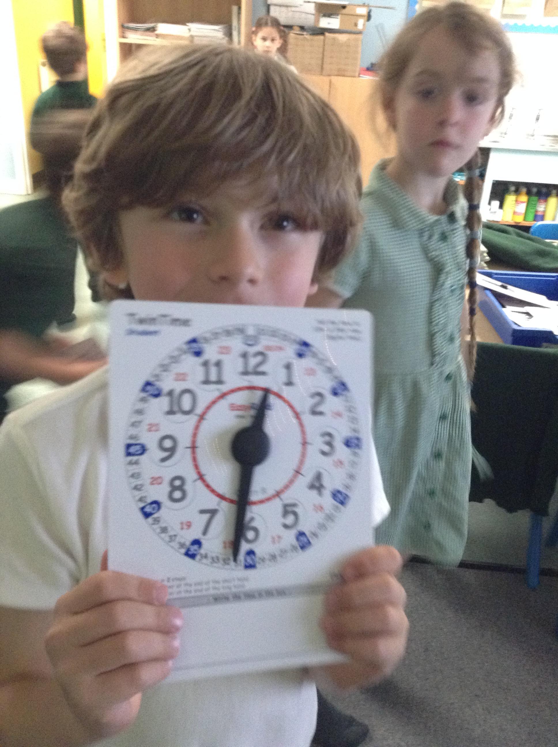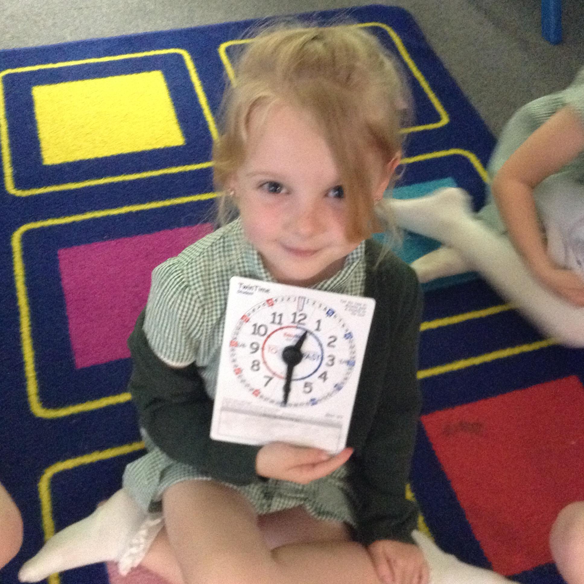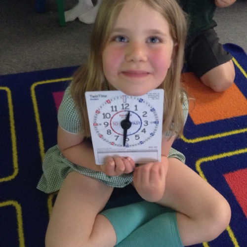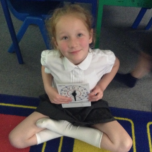 We are learning about time in Maths. Today we focussed on o'clock and half past.