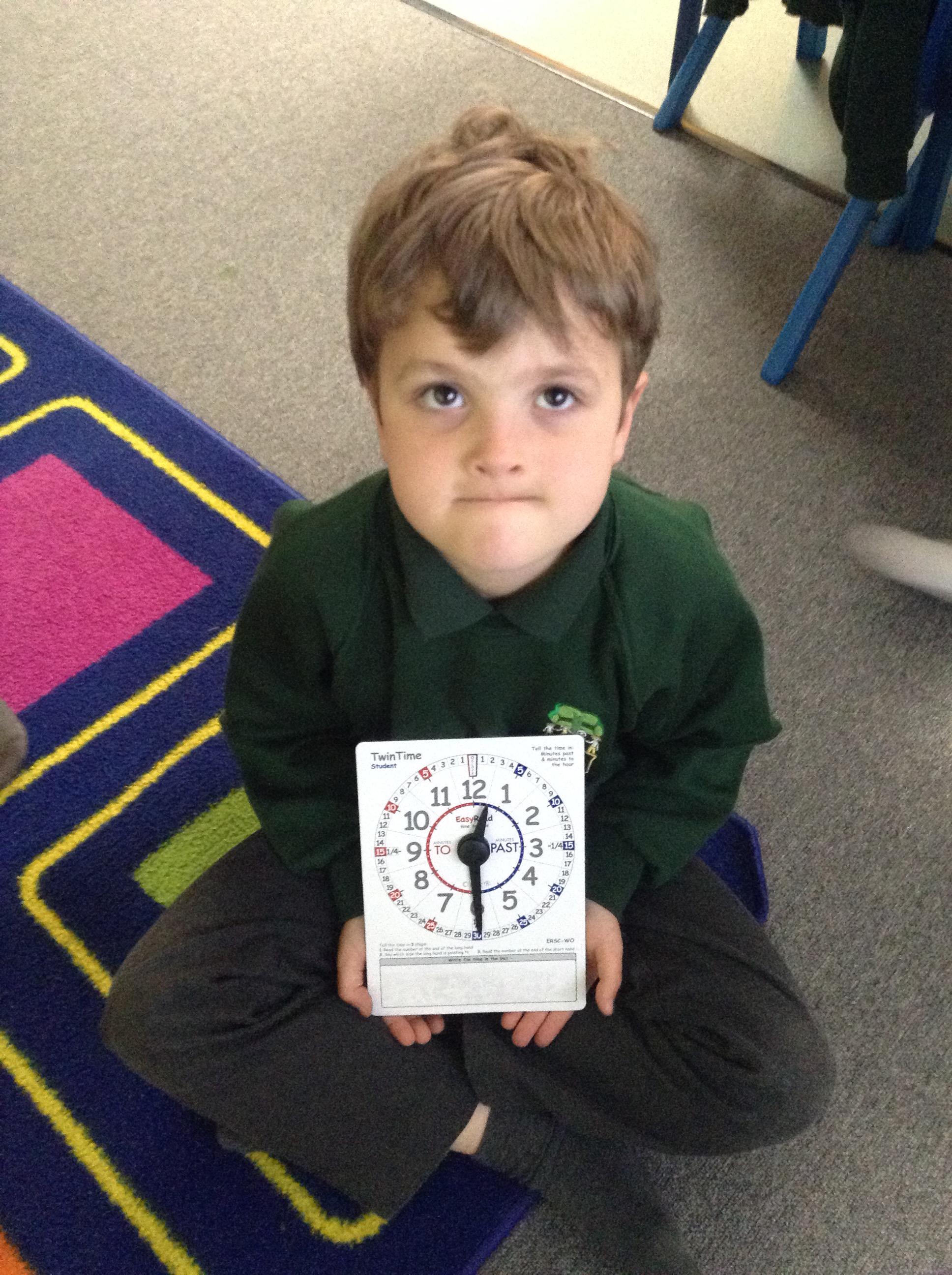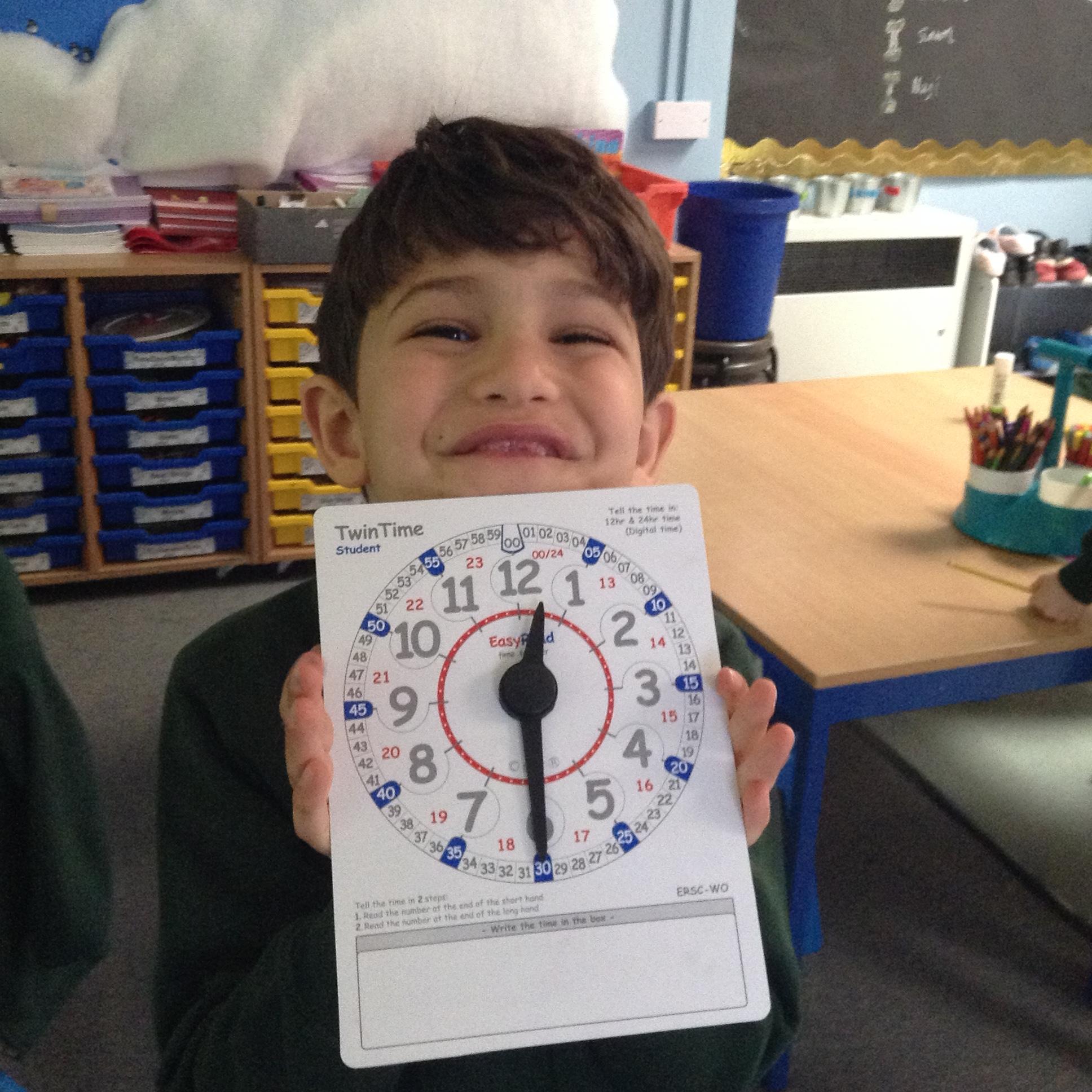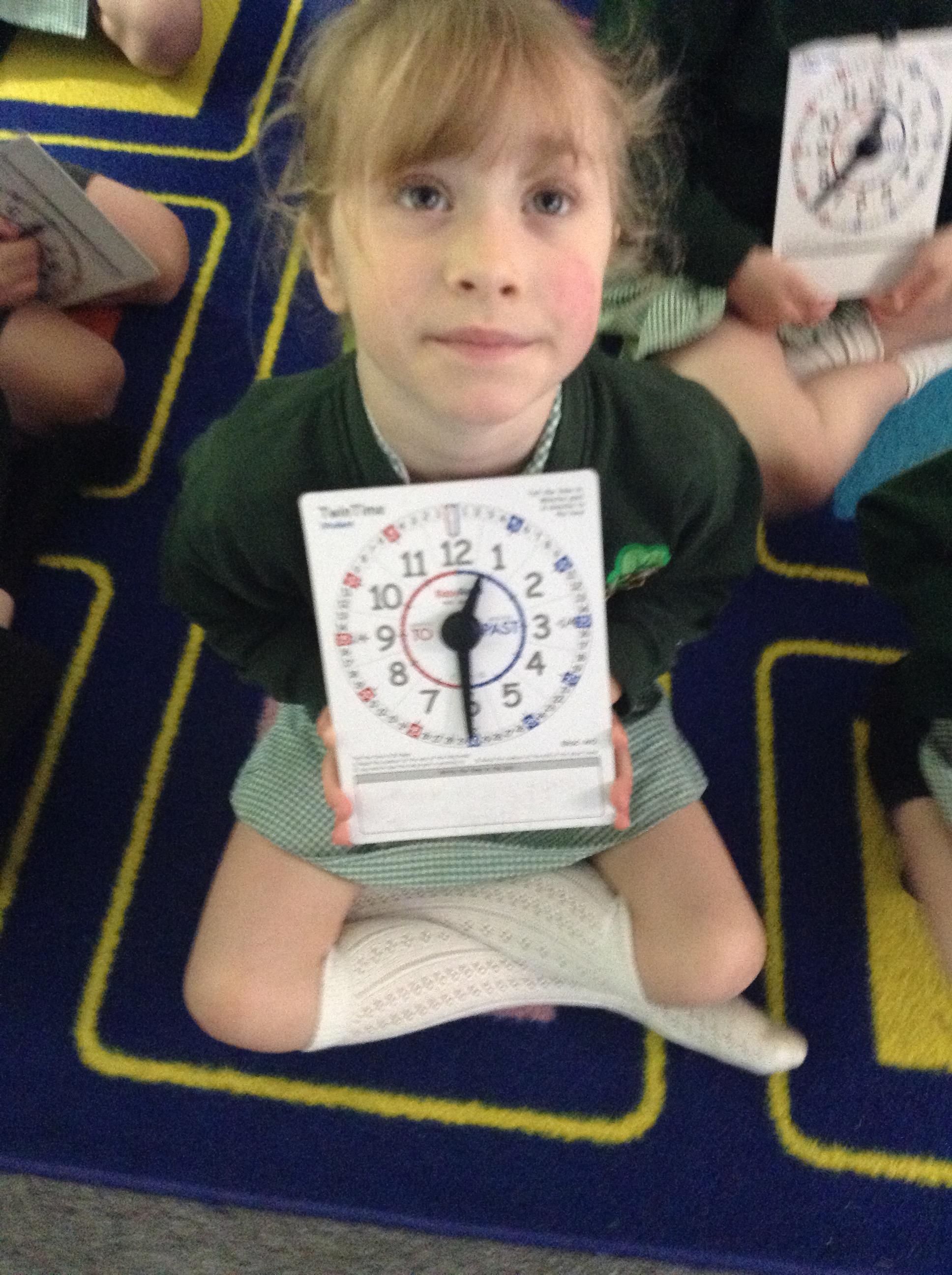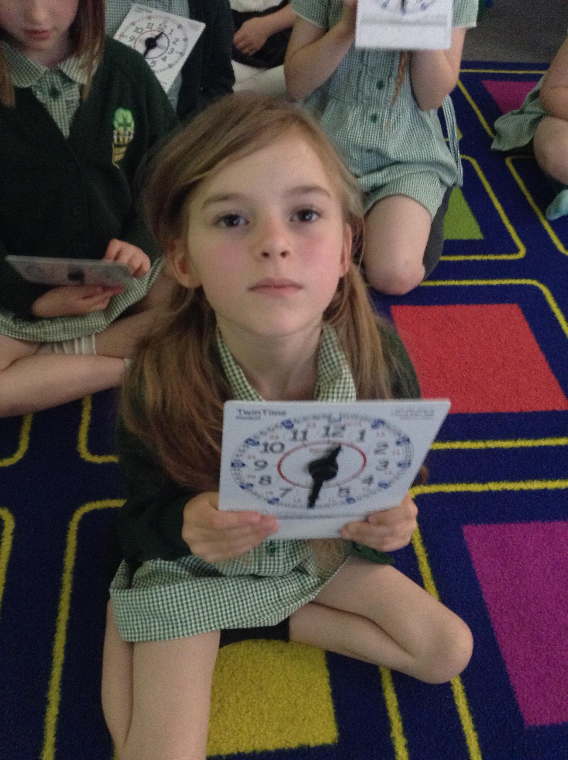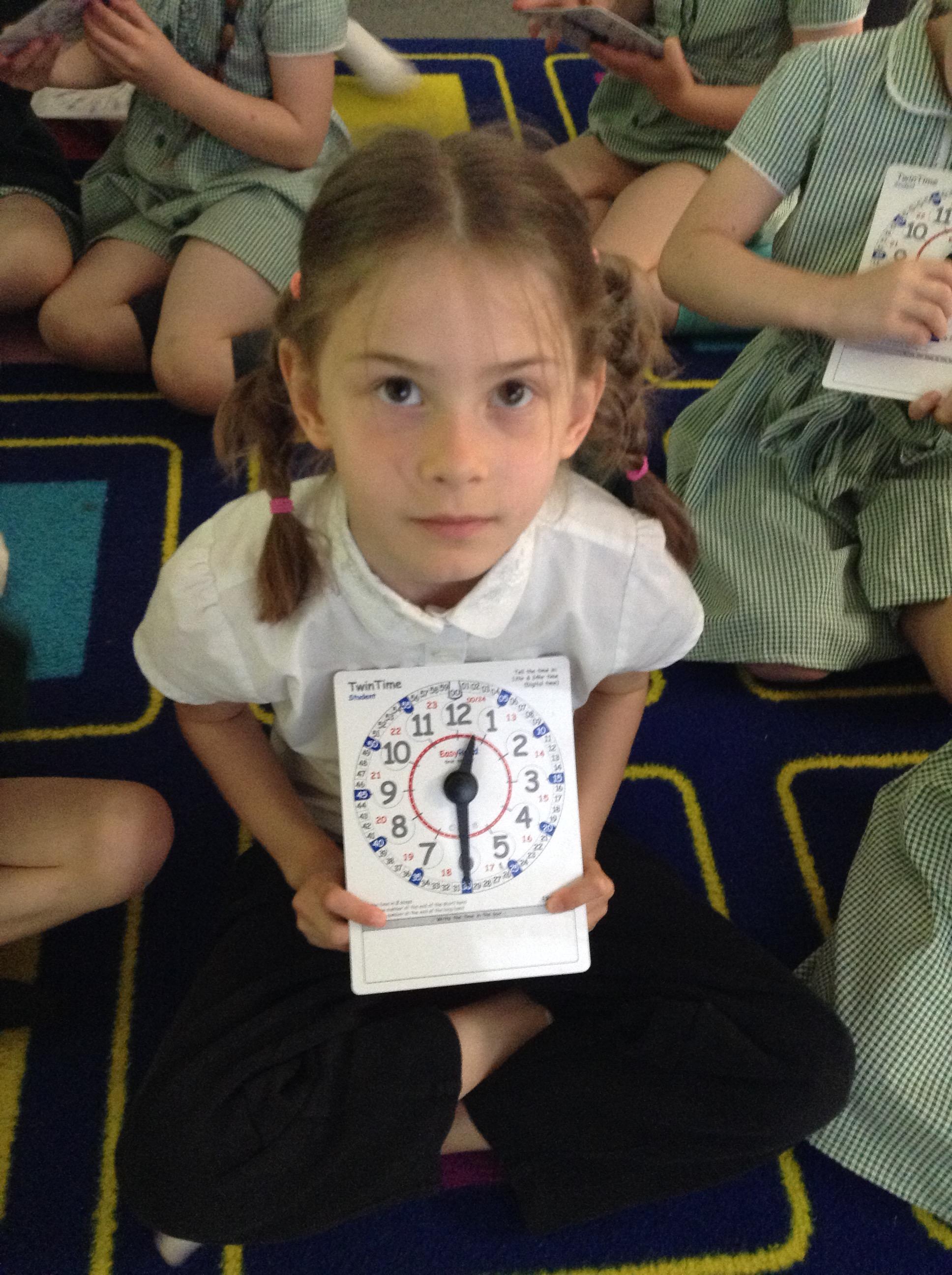 We are learning about time in Maths. Today we focussed on o'clock and half past.
