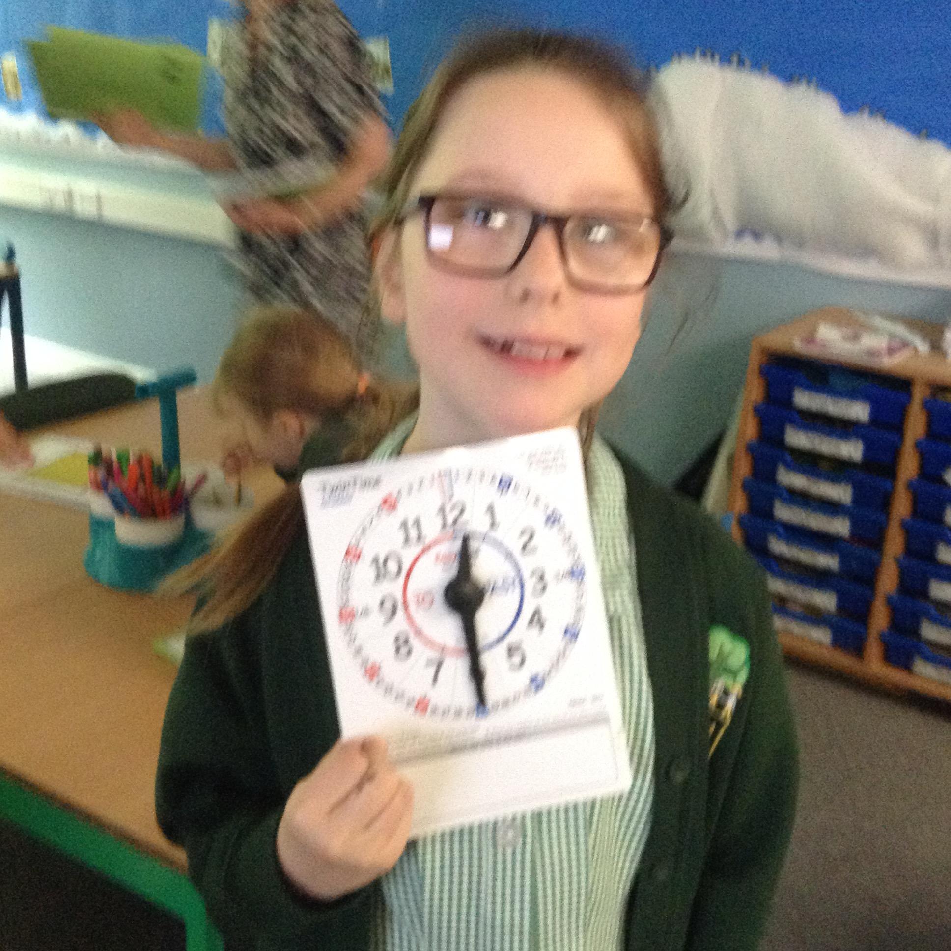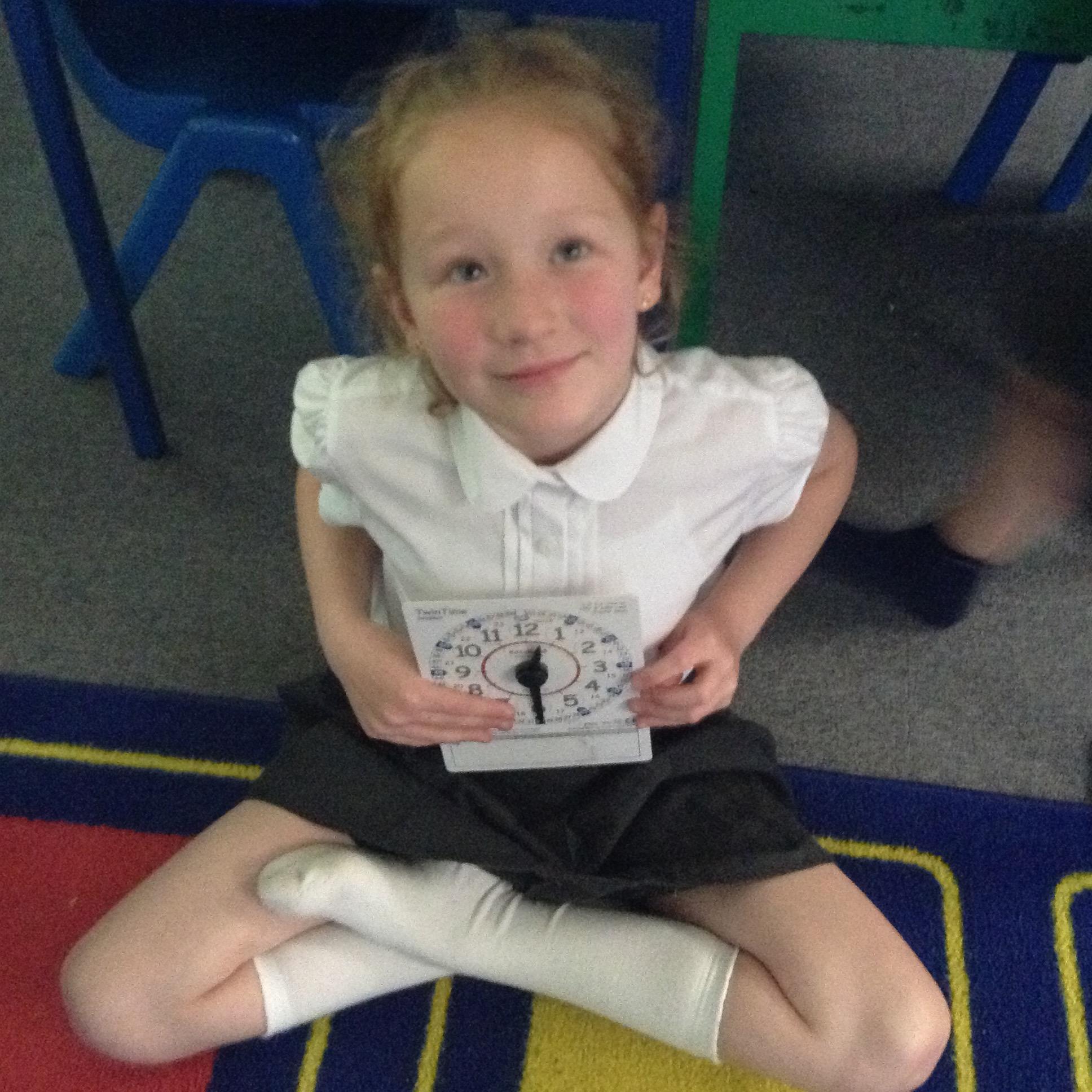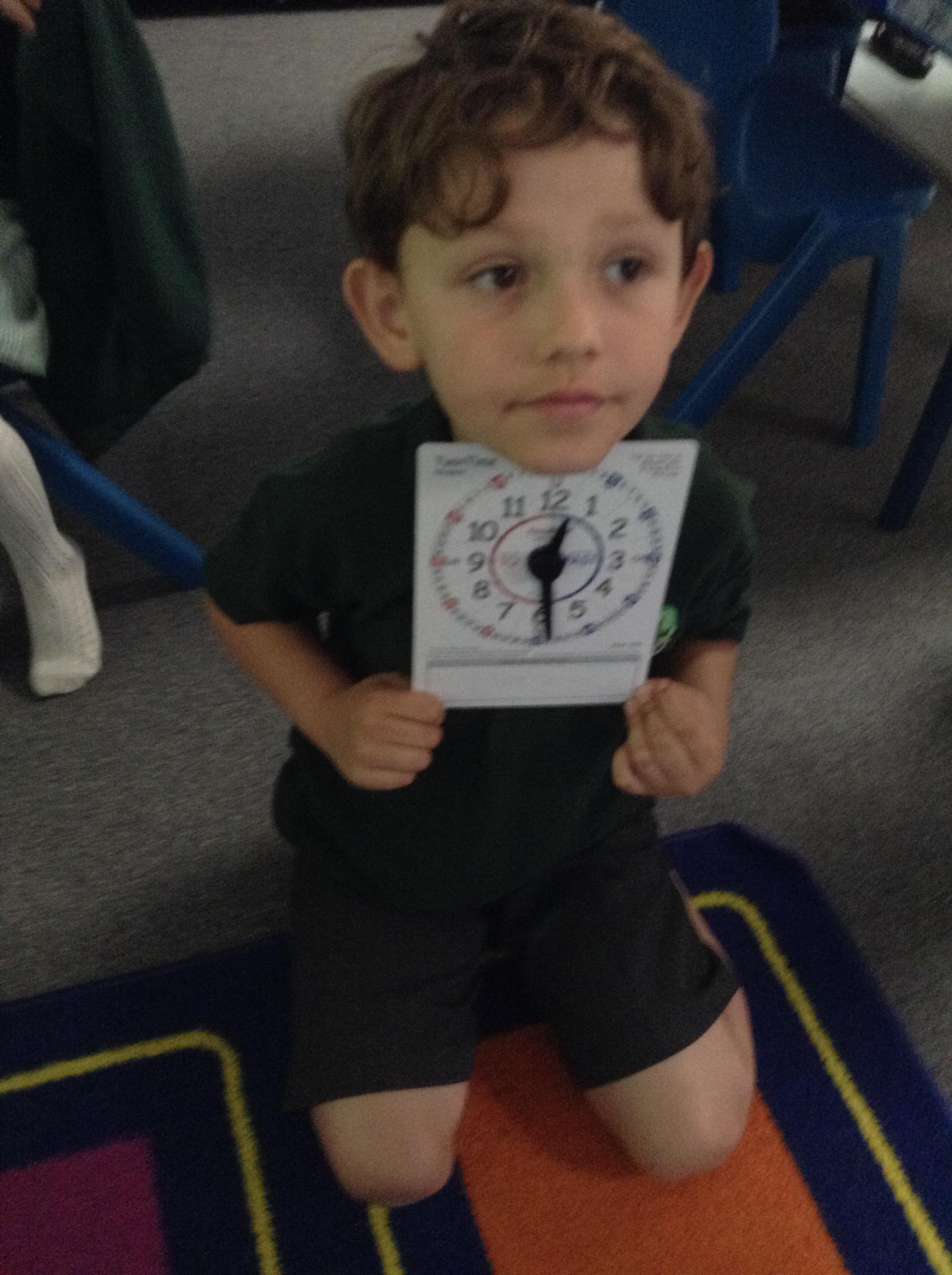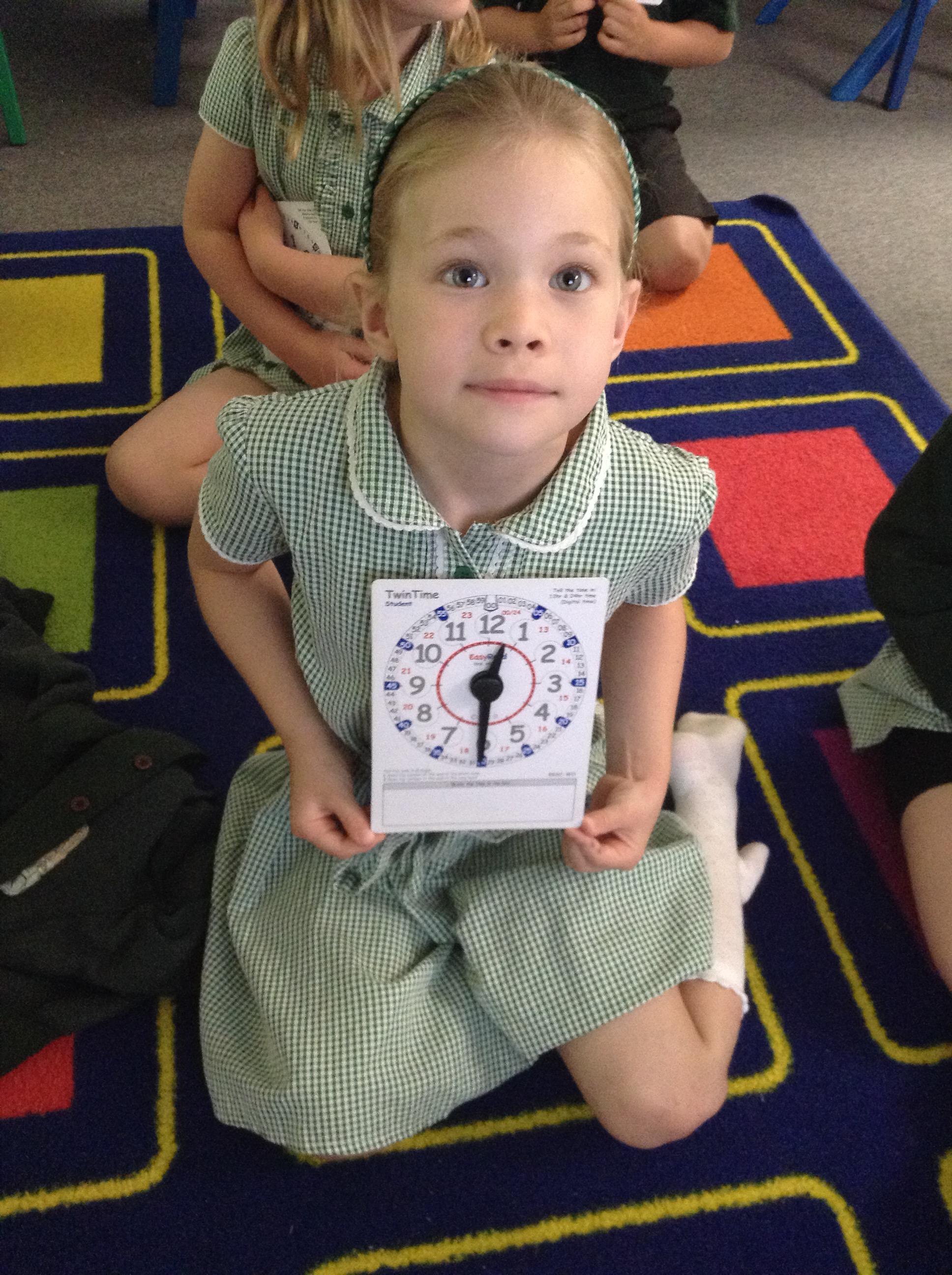 We are learning about time in Maths. Today we focussed on o'clock and half past.