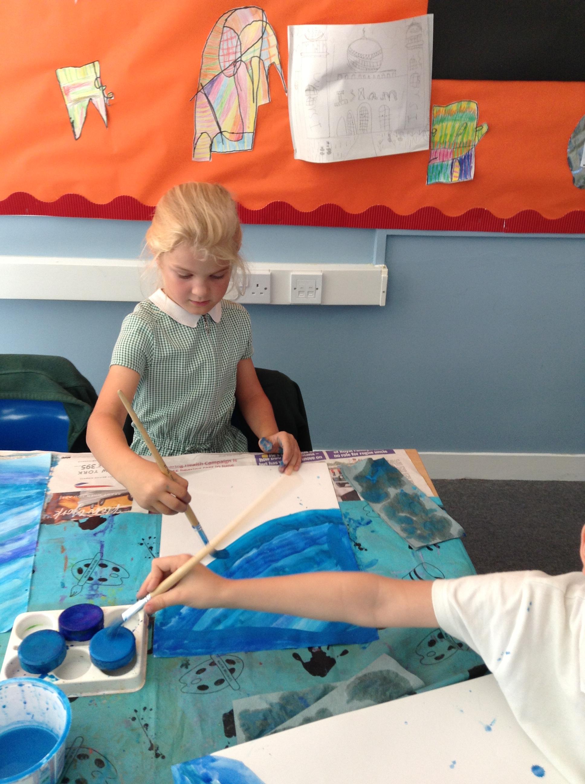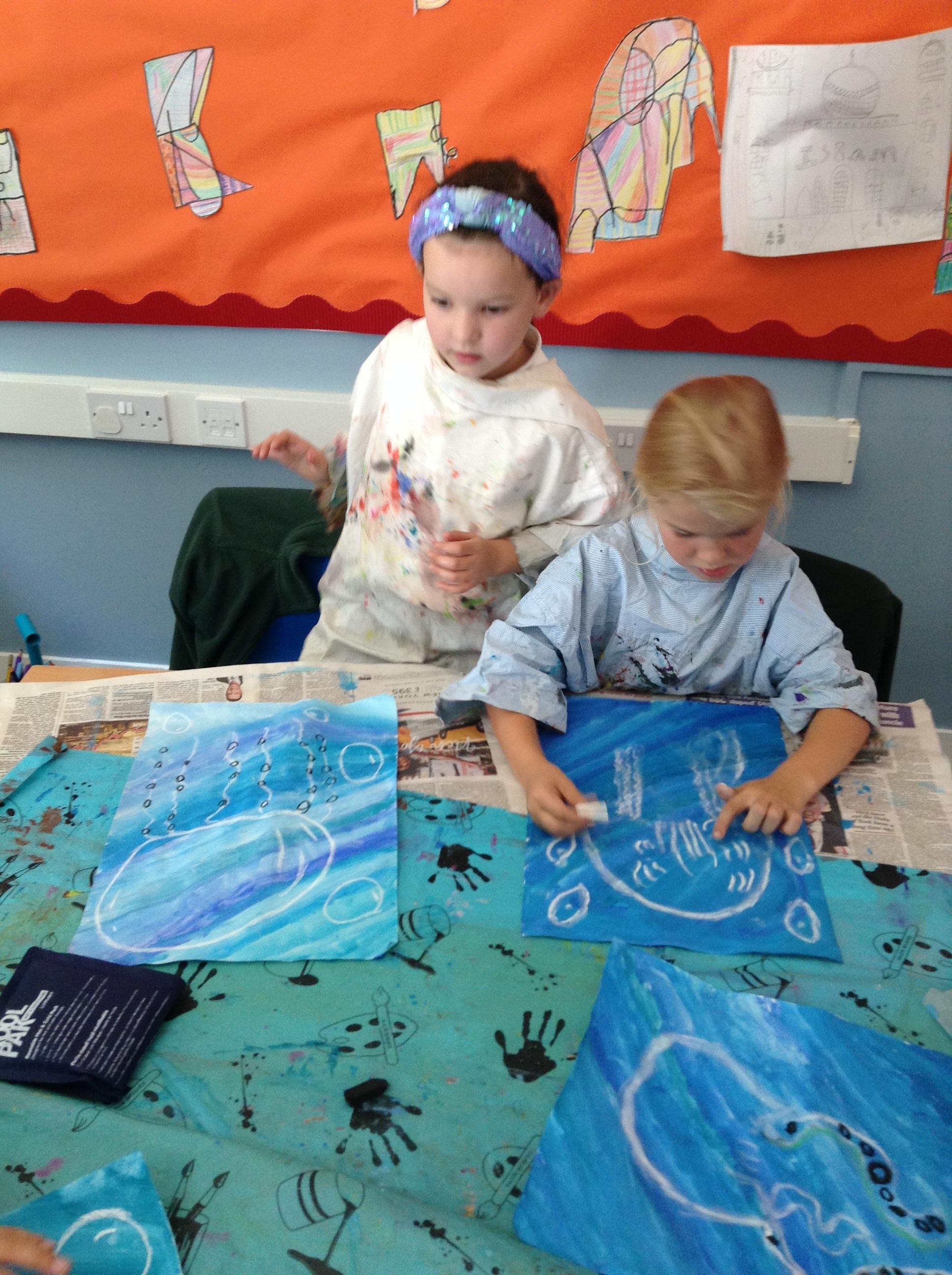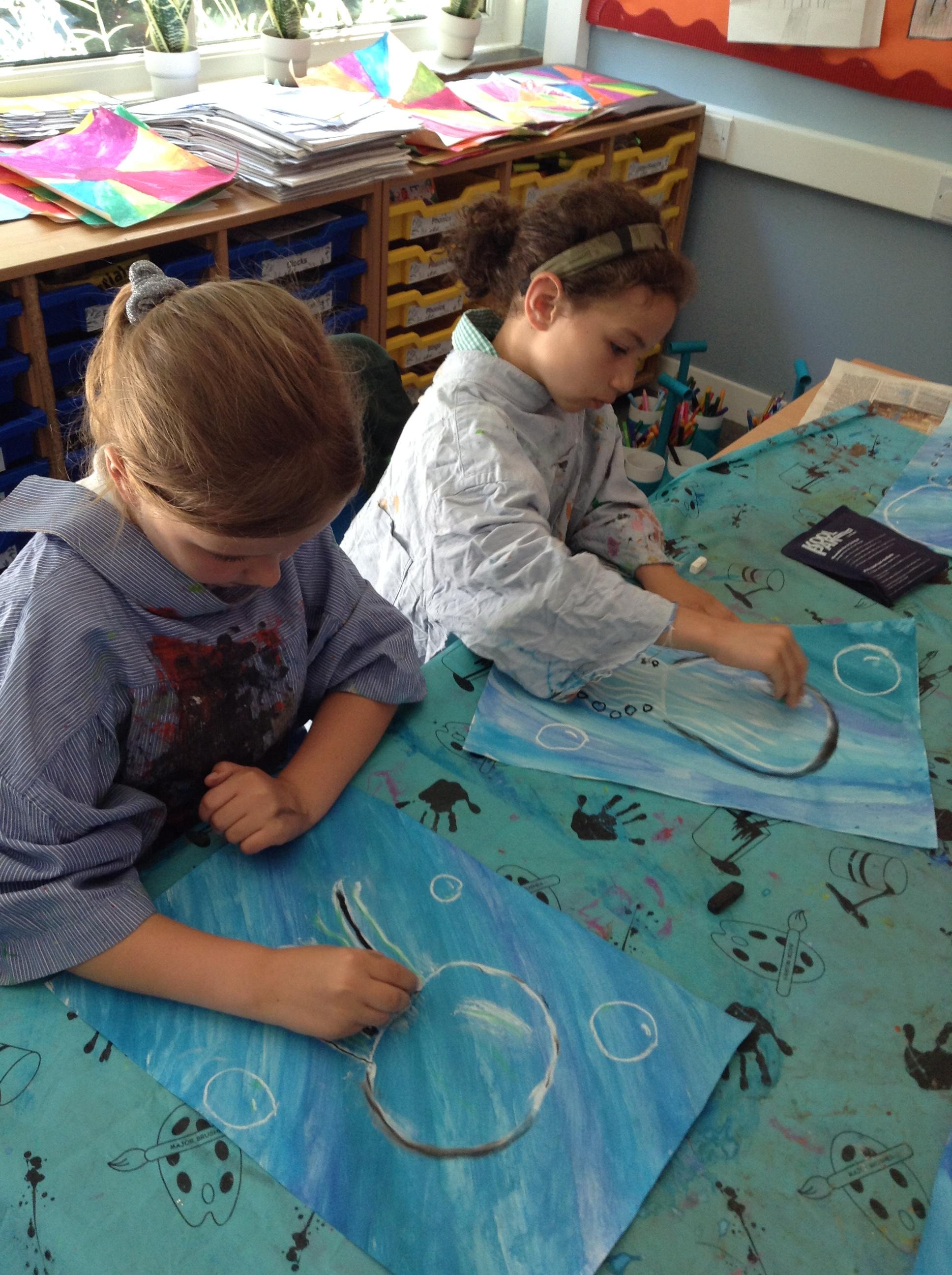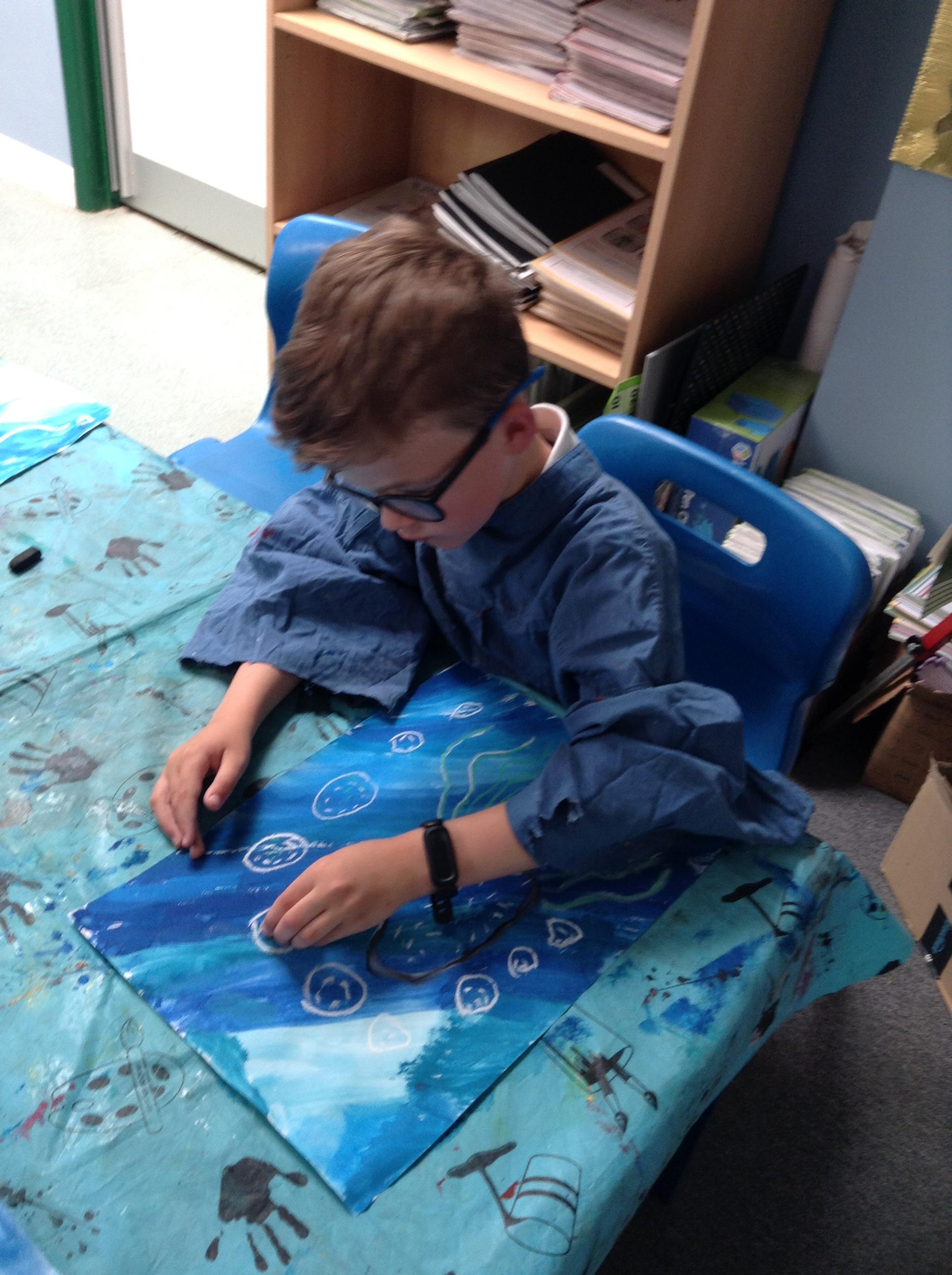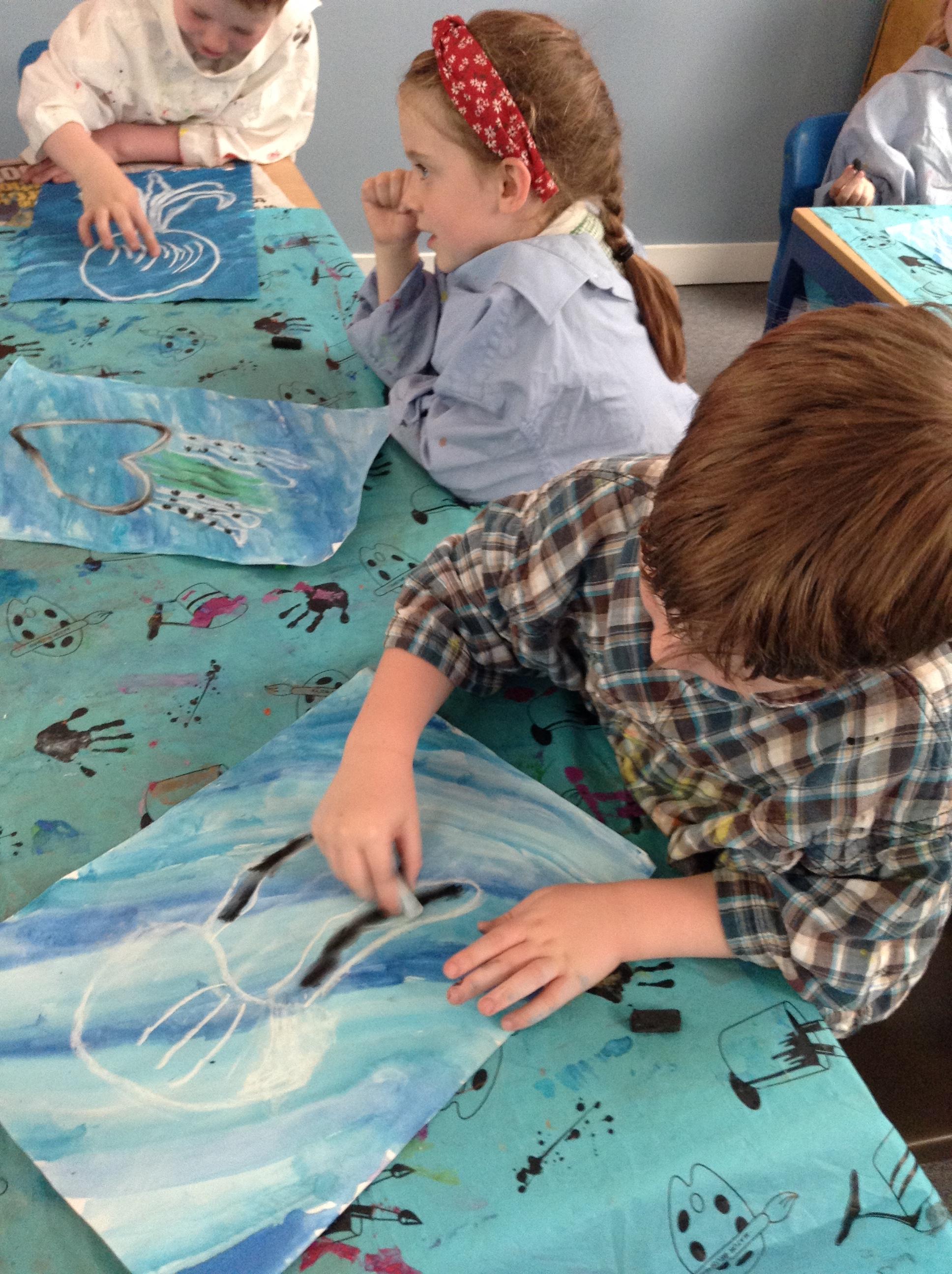 The children have used different painting and pastelling techniques to create an 'under the sea' picture for the annual Elham Gardening Society Competition.