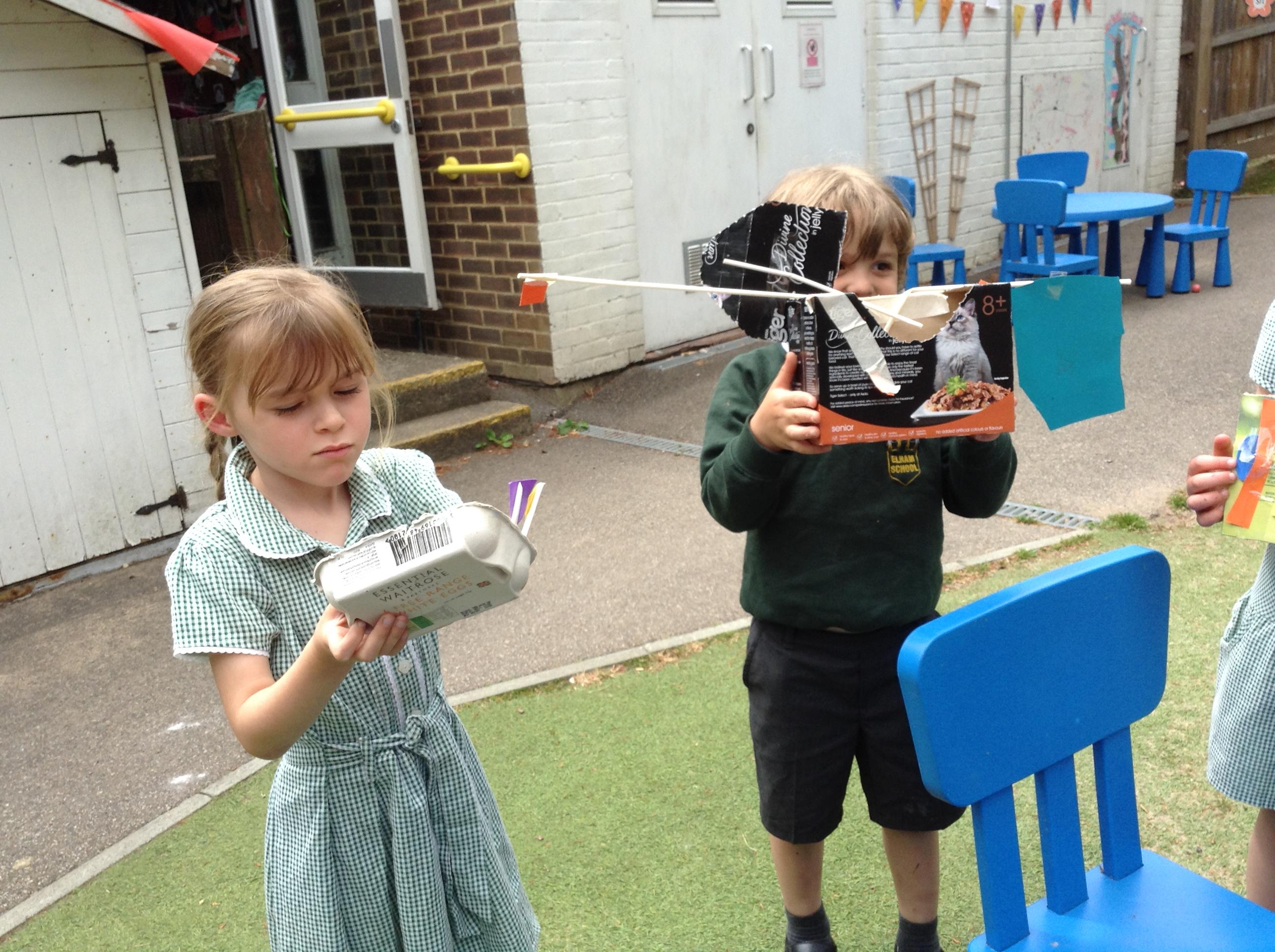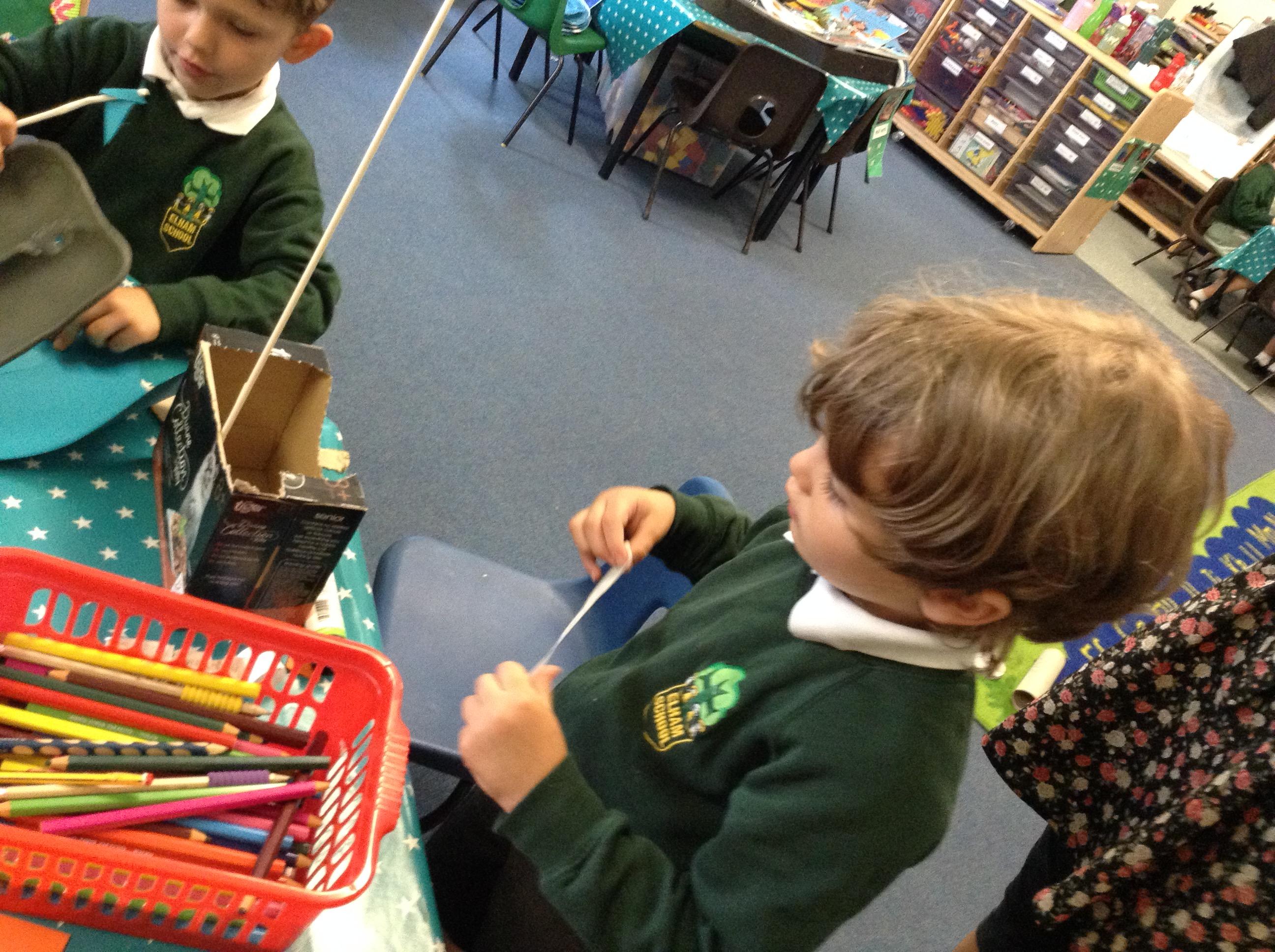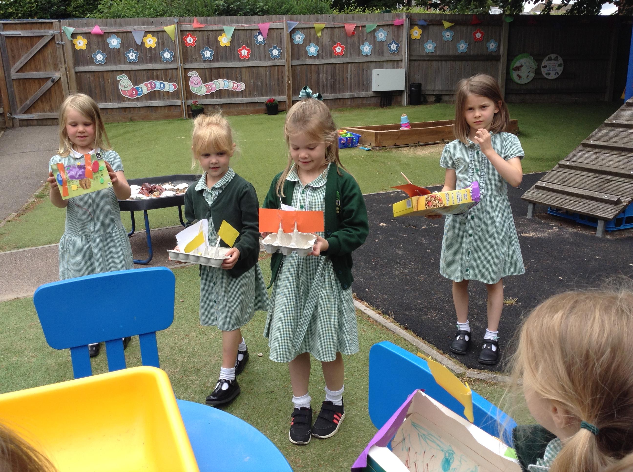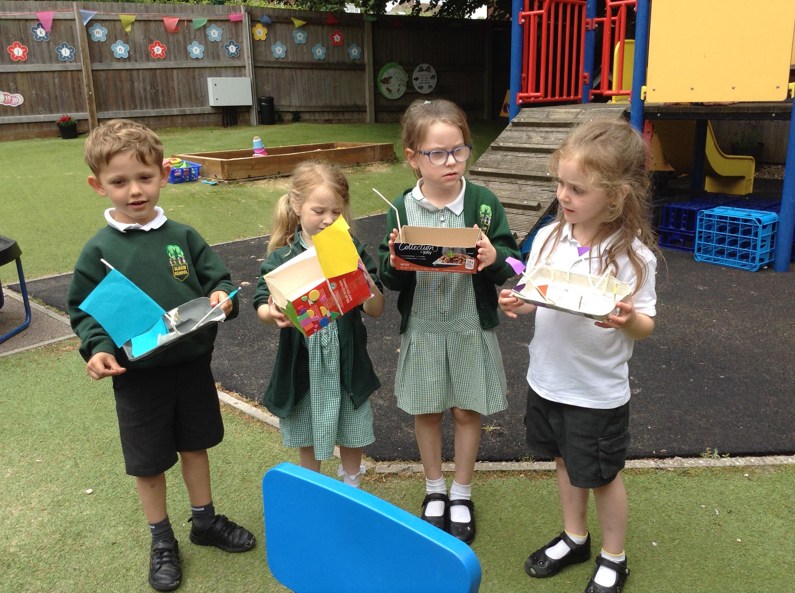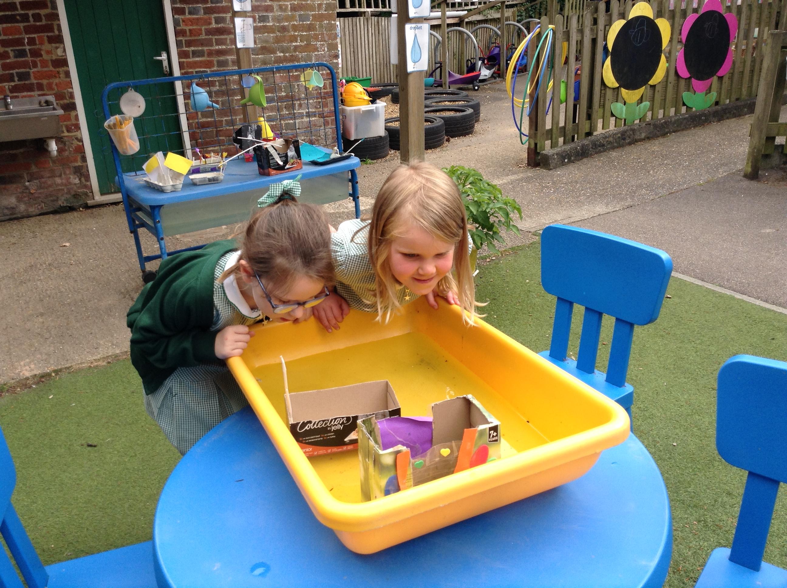 We made some super boats. We were very careful to make sure they had no holes in them to let the water in. We noticed that a bigger sail made the boat move faster.