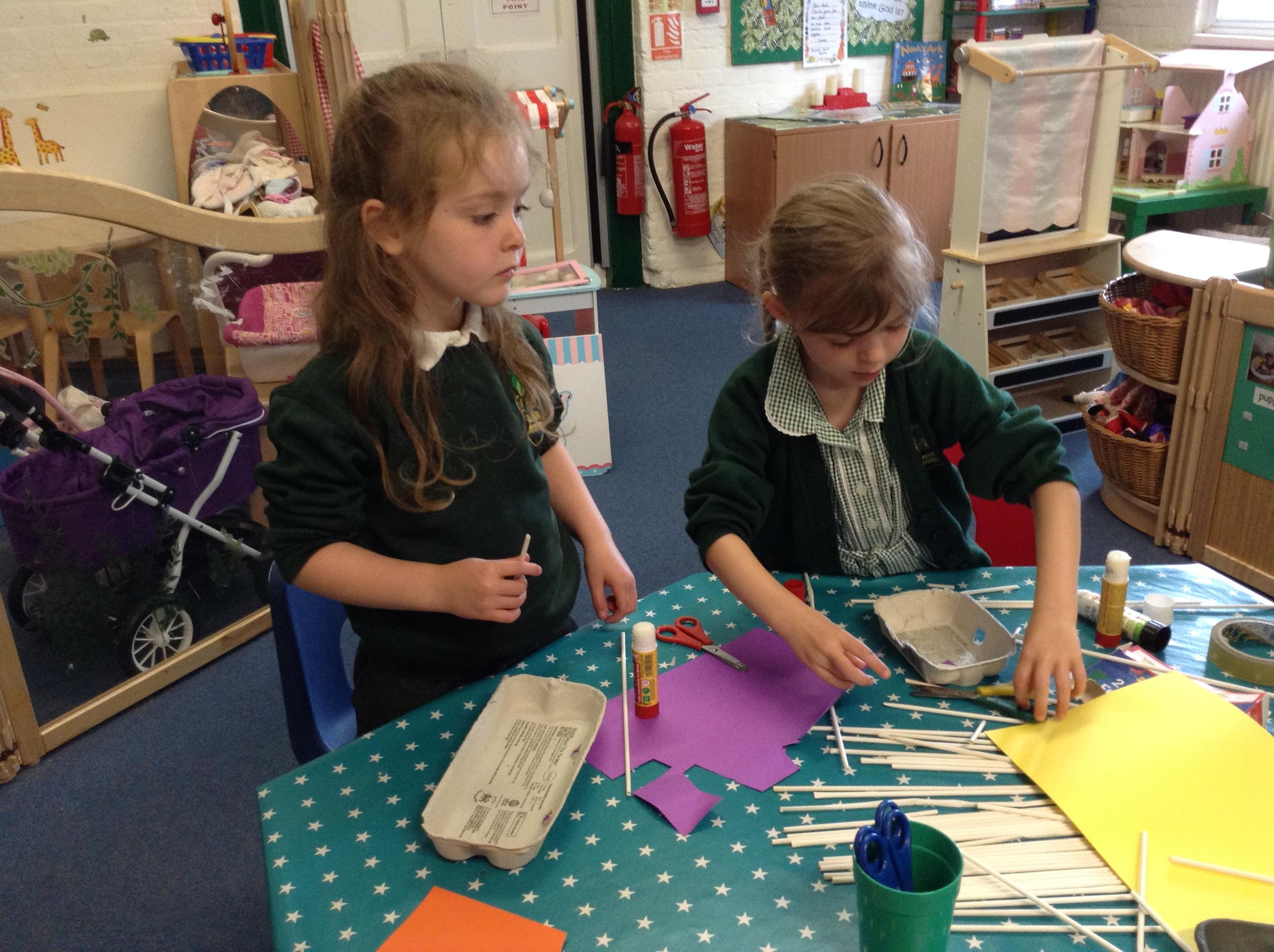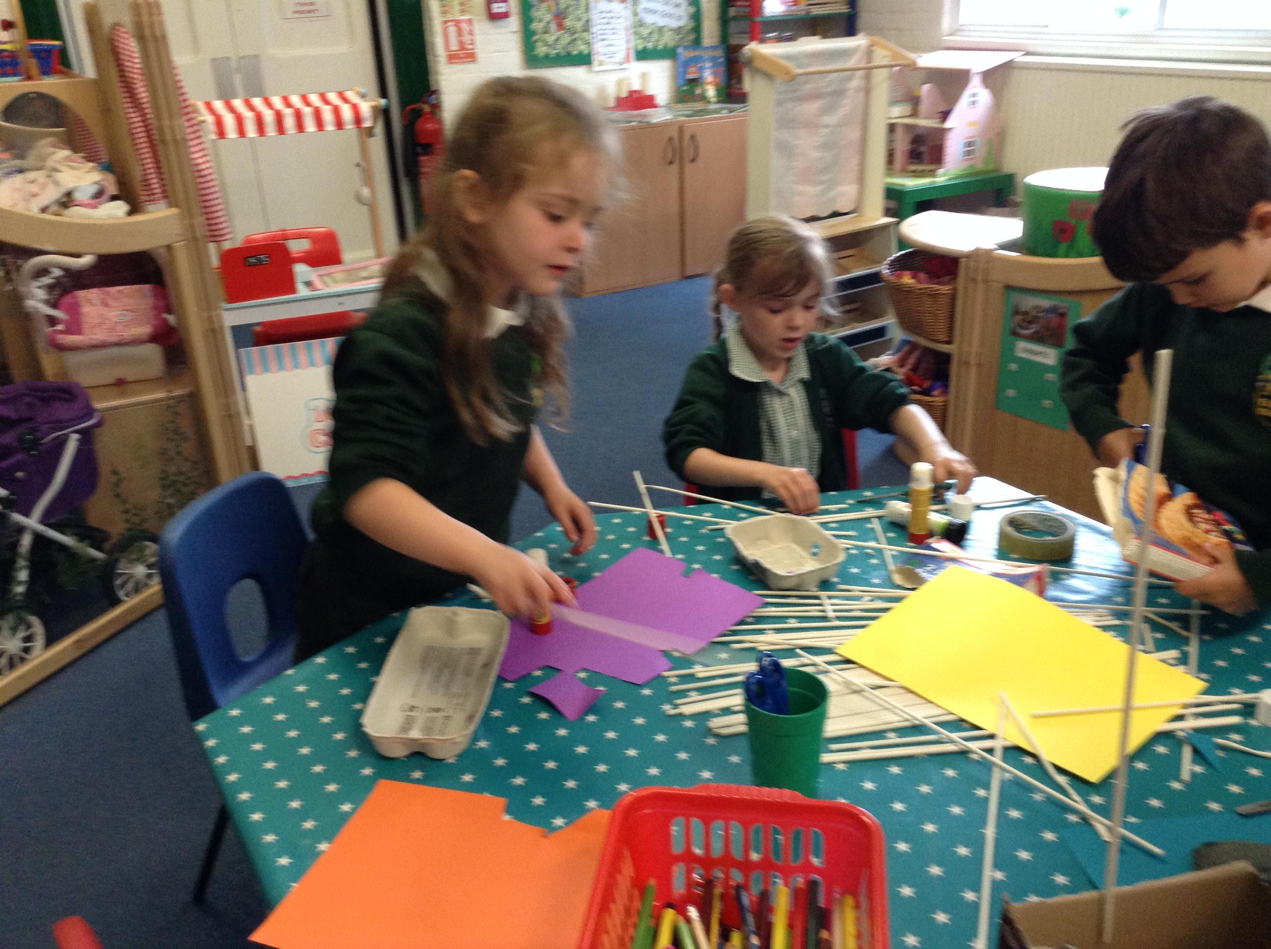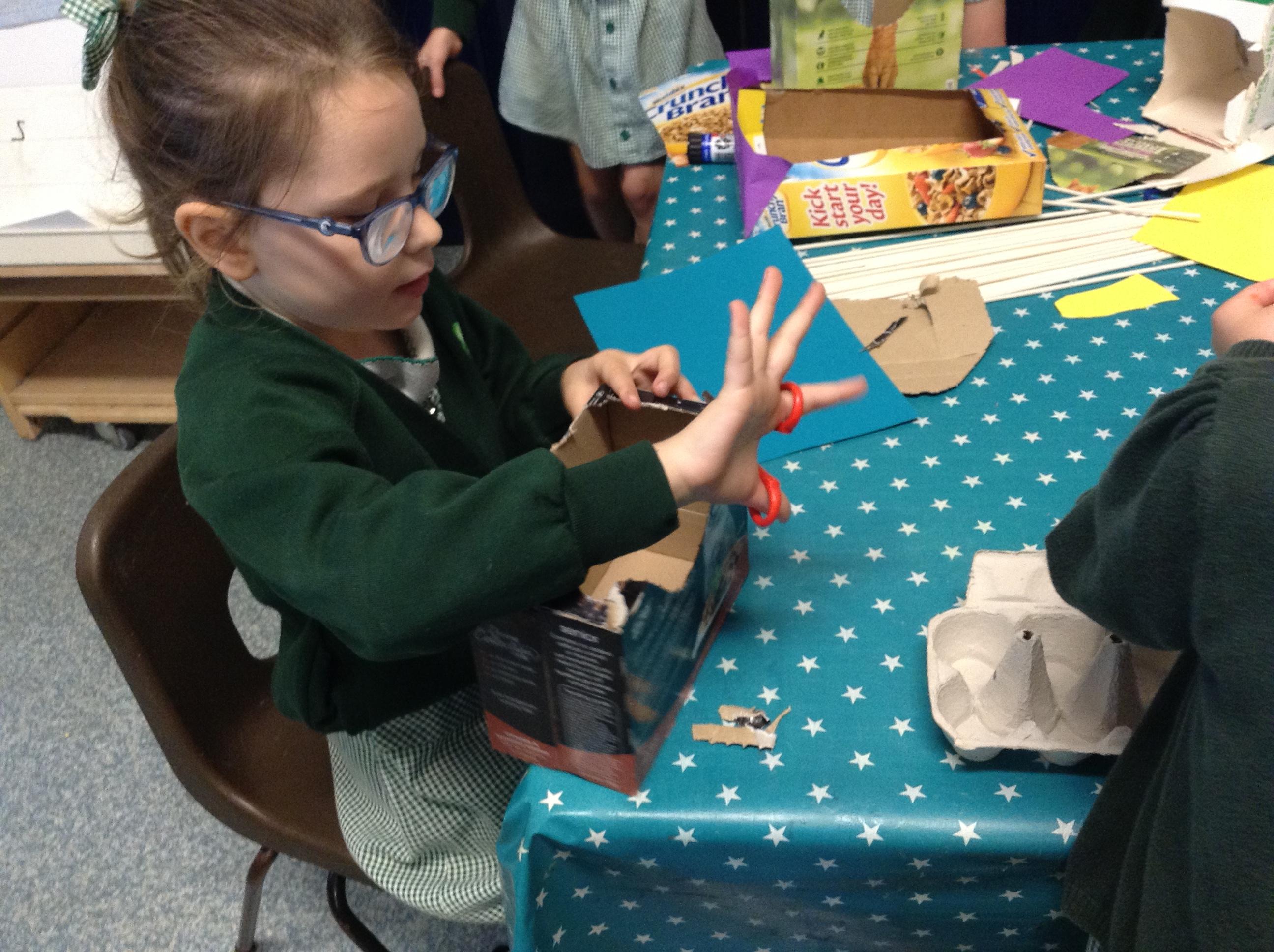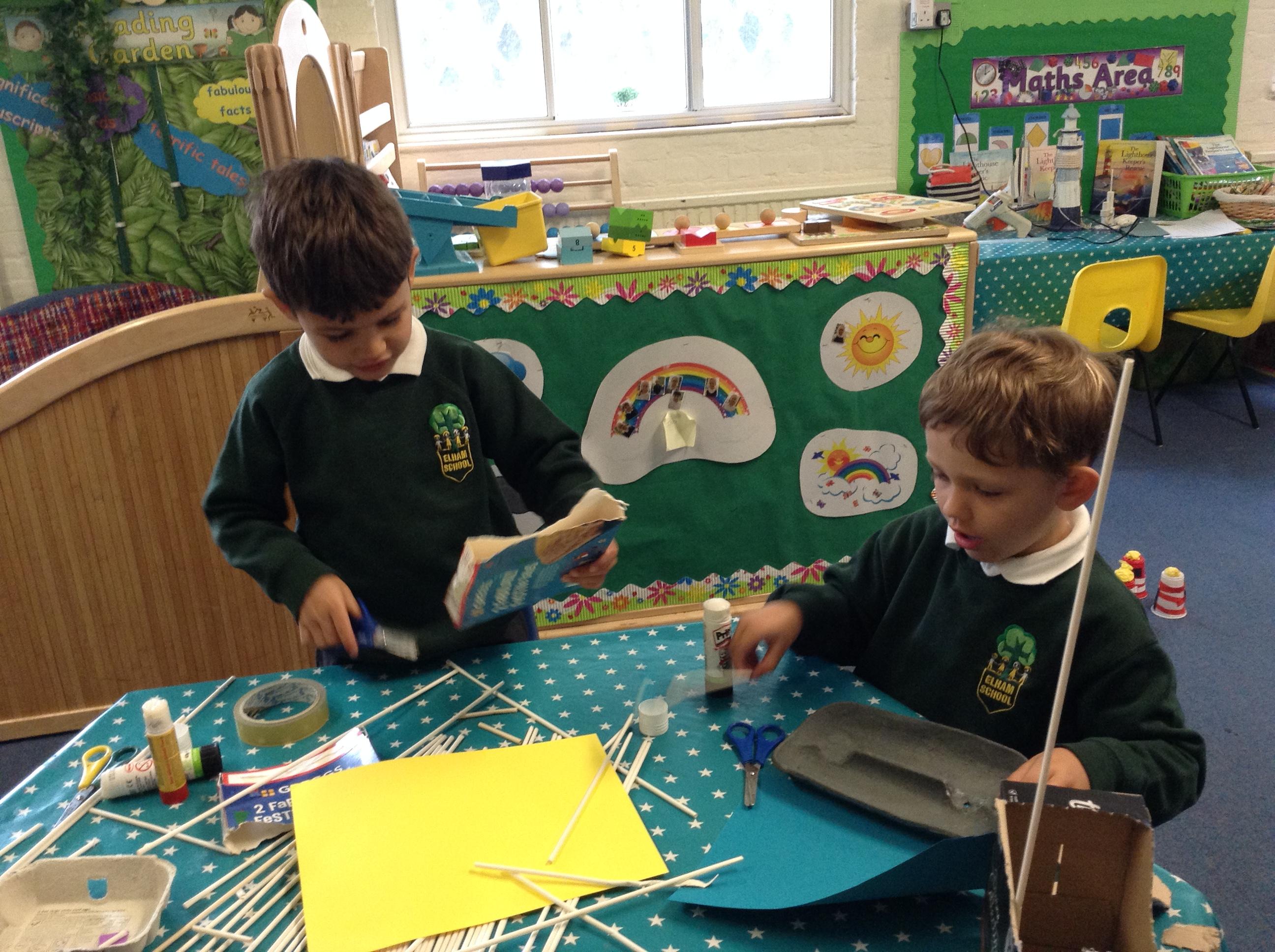We made some super boats. We were very careful to make sure they had no holes in them to let the water in. We noticed that a bigger sail made the boat move faster.