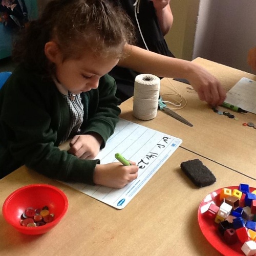 The children have been learning their new routines. First thing in the morning they come in, change into their slippers and find an alphabet or tricky word activity to work on. Straight after that we start Guided Reading. In Guided Reading the children work on a carousel of activities, including reading with the teacher, hand writing and enjoying books in the book corner.