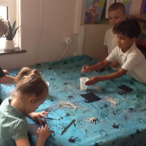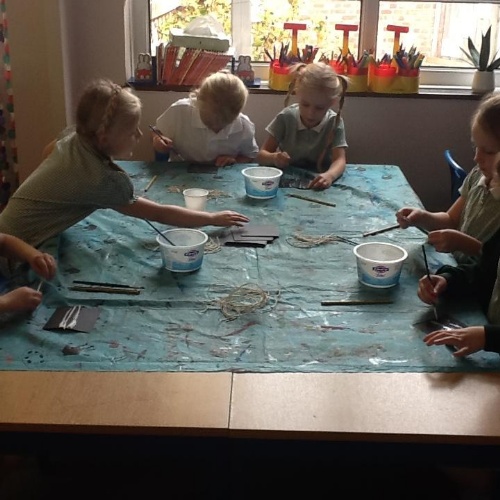 This term in Art we are mark making, though drawing. This week the children had a lot of words to understand and learn in order to make lines: diagonal, horizontal, wavy, vertical, broken and cross-hatch. Then they created the lines using string and chalk.