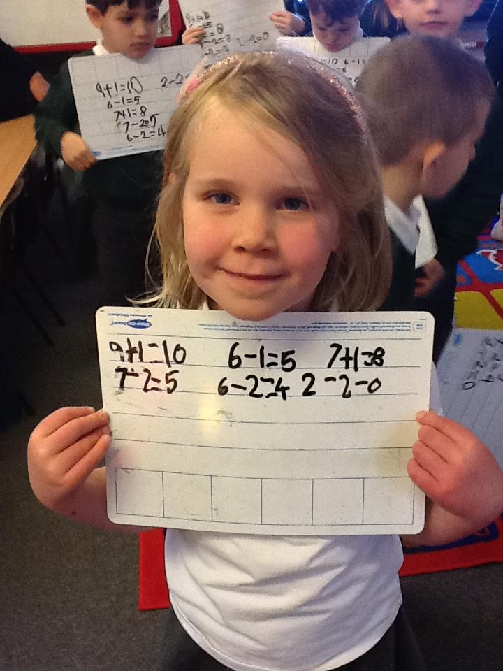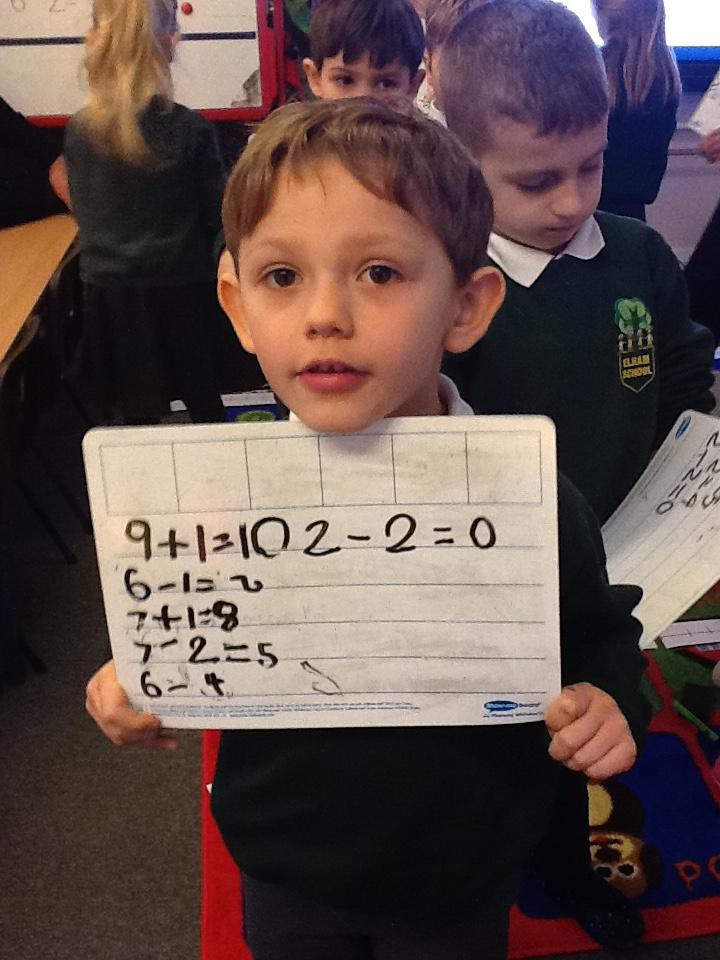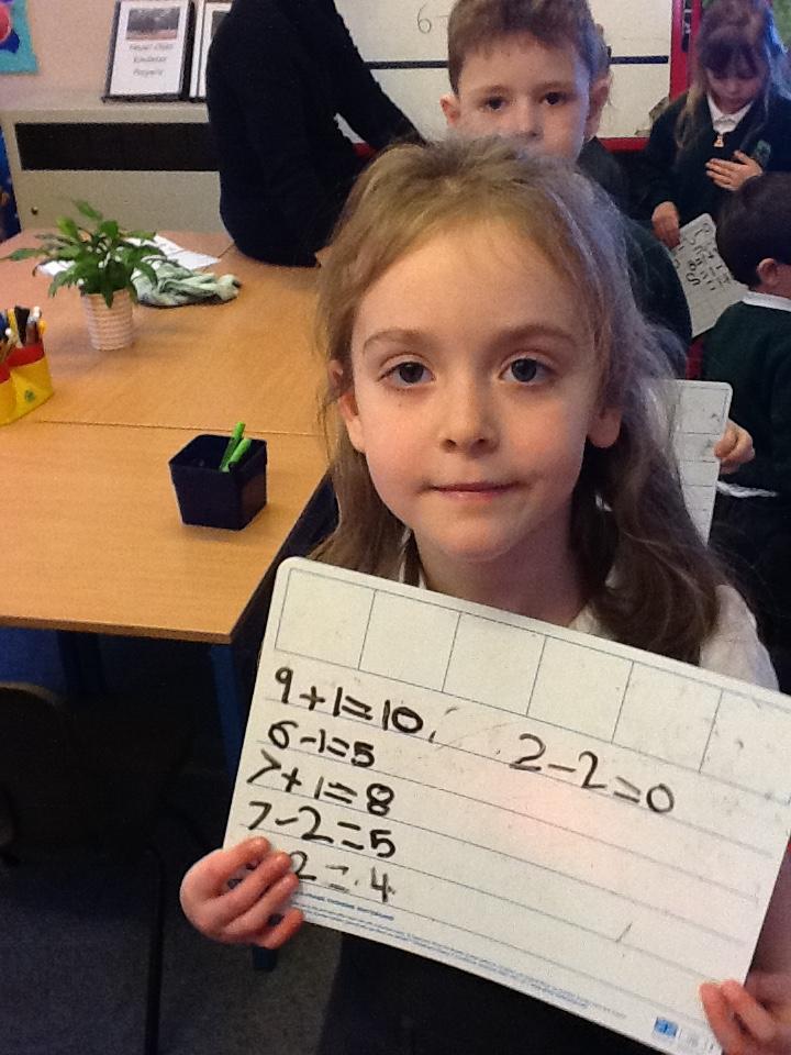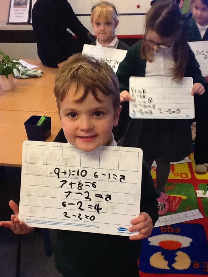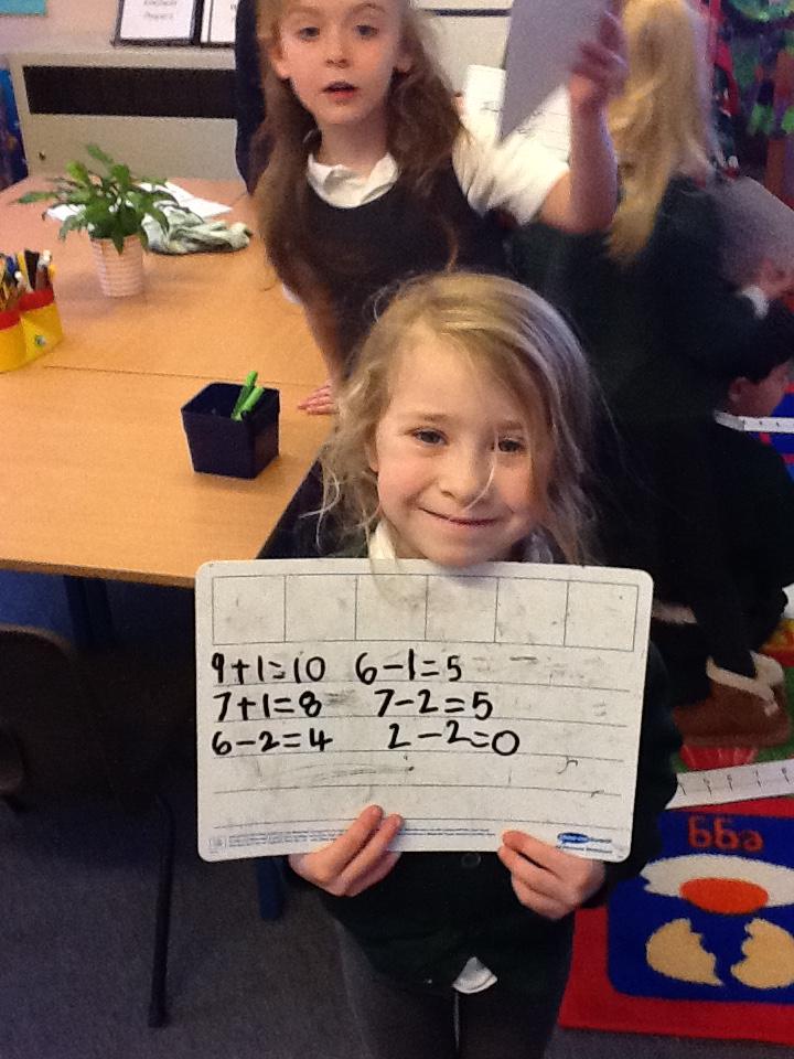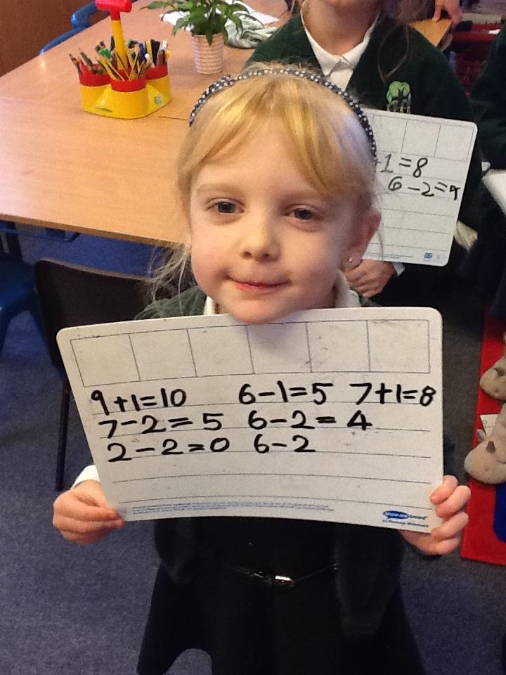 This week we have used the number lines we made last week to work out the answers to some number sentences. It's tricky remembering to go forward on the number line when we are adding, but backwards when we are taking away.