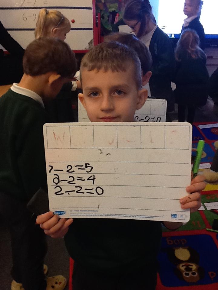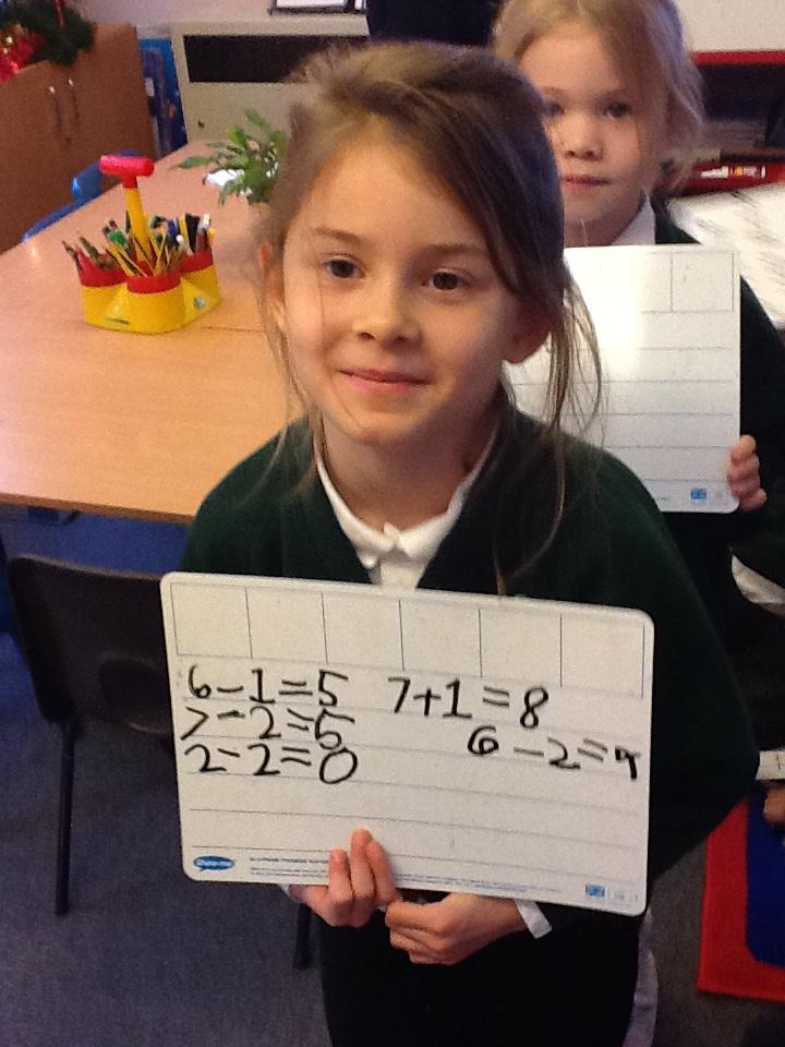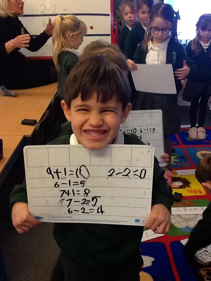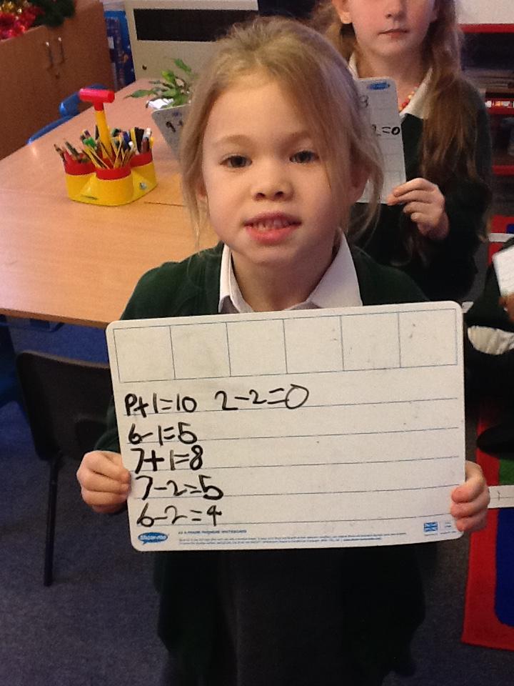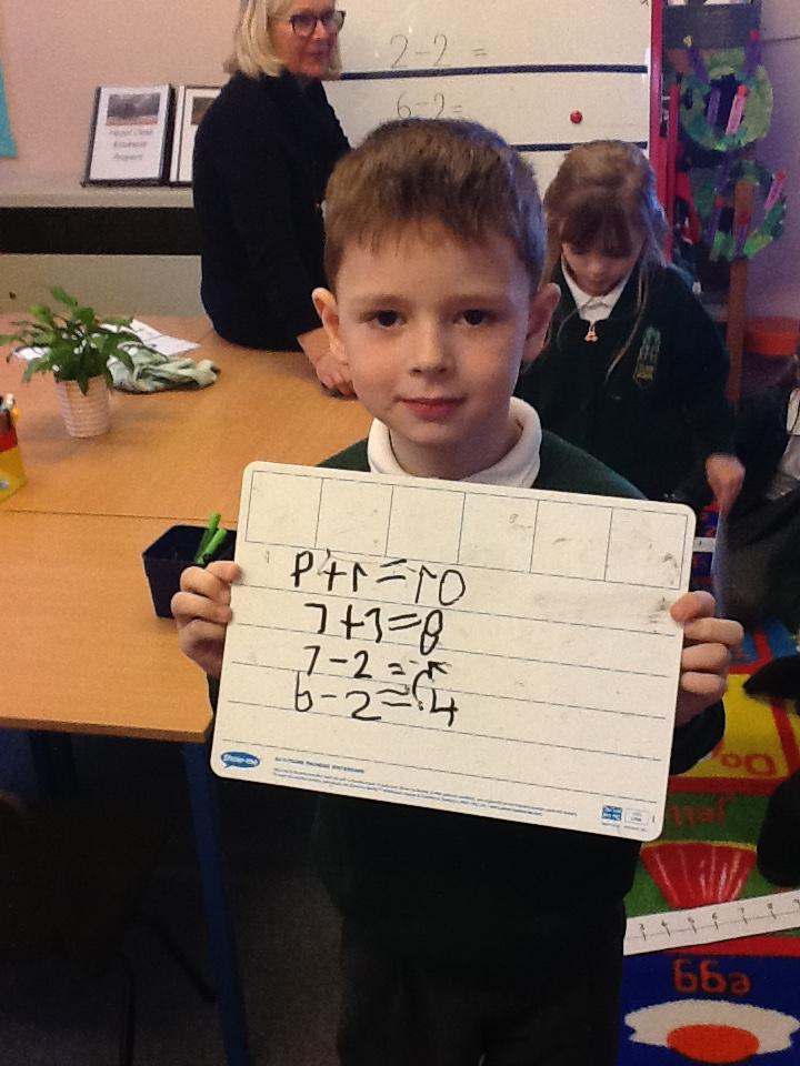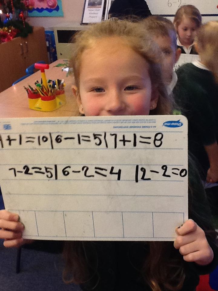 This week we have used the number lines we made last week to work out the answers to some number sentences. It's tricky remembering to go forward on the number line when we are adding, but backwards when we are taking away.